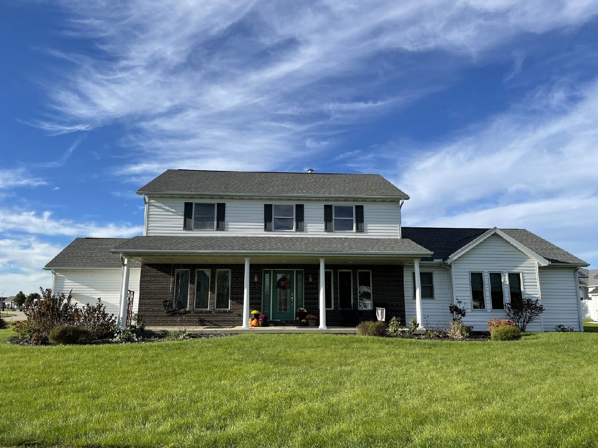 Impressive custom built home with more than 3800 square feet of living area in Fisher's Heritage Estates! Situated on a large corner lot, this home will check off all your boxes: great curb appeal, spacious living areas, finished basement, & more! Unwind on the large front porch that greets you as you enter the home. Once inside, you'll be amazed by the grand entryway, which impresses with its large windows and soaring ceilings. Throughout the home, you'll find many quality custom touches, including 8 ft. ceilings and wood accents. The kitchen, which features an abundance of cabinet and counter space for your cooking needs, is highlighted by a large butcher block island and all stainless steel appliances, including double ovens and an industrial sized fridge! You'll appreciate all of the dining space with a breakfast nook as well as a formal dining room. Off the kitchen is a large mudroom and storage room with a convenient half bath. An additional half bath is located off of the entry way as well! The cozy living room, with a gas fireplace, provides access to the 3 seasons room. The main floor master is complete with a spa-like bath, including double vanities with plenty of storage space, a jacuzzi tub, separate shower, and double walk-in closets. French doors in the master bedroom open up to a reading room or office space to complete your private retreat! Upstairs, you'll find 3 additional bedrooms, 1 with its own private full bathroom. The other 2 bedrooms share a Jack and Jill bathroom. The basement has been partially finished to include a family room and rec room with a built-in bar plus another half bath and lots of storage space with room to grow! The oversized 2 car garage allows for extra tools and toys. Additional features and updates include: central vac system, new 8x12 shed, new windows in 3 seasons room, and new roof in 2019. You'll love the neighborhood amenities and community feel. Make this beautiful home yours today!