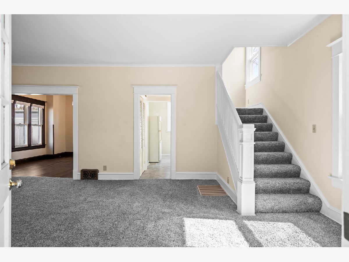 Sought-after Founder's Grove location and only a half block from Oakland Elementary School! Large, covered front porch is a great place for relaxing or for greeting guests as they arrive. Step through the front door into the large living room and admire the fresh paint, the new carpet and the open stairway. The dining room has the original wood floors. The kitchen has been updated and has great windows that allow for an abundance of natural light. The full bath has been beautifully remodeled and includes a double bowl vanity. You will find new flooring and fresh paint throughout most of the upper two floors. The half bath is in an unfinished area of the basement. The 142' deep lot is fenced (fence new in 2022) and has a patio for additional outdoor relaxation space. There is a new paver brick walk (2023) and landscaping updates. Furnace was replaced in 2024. This property provides a great location, lovely move-in condition at a very affordable price!