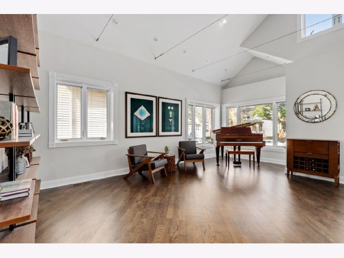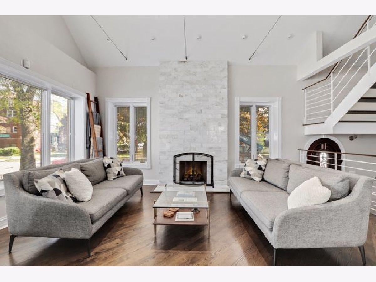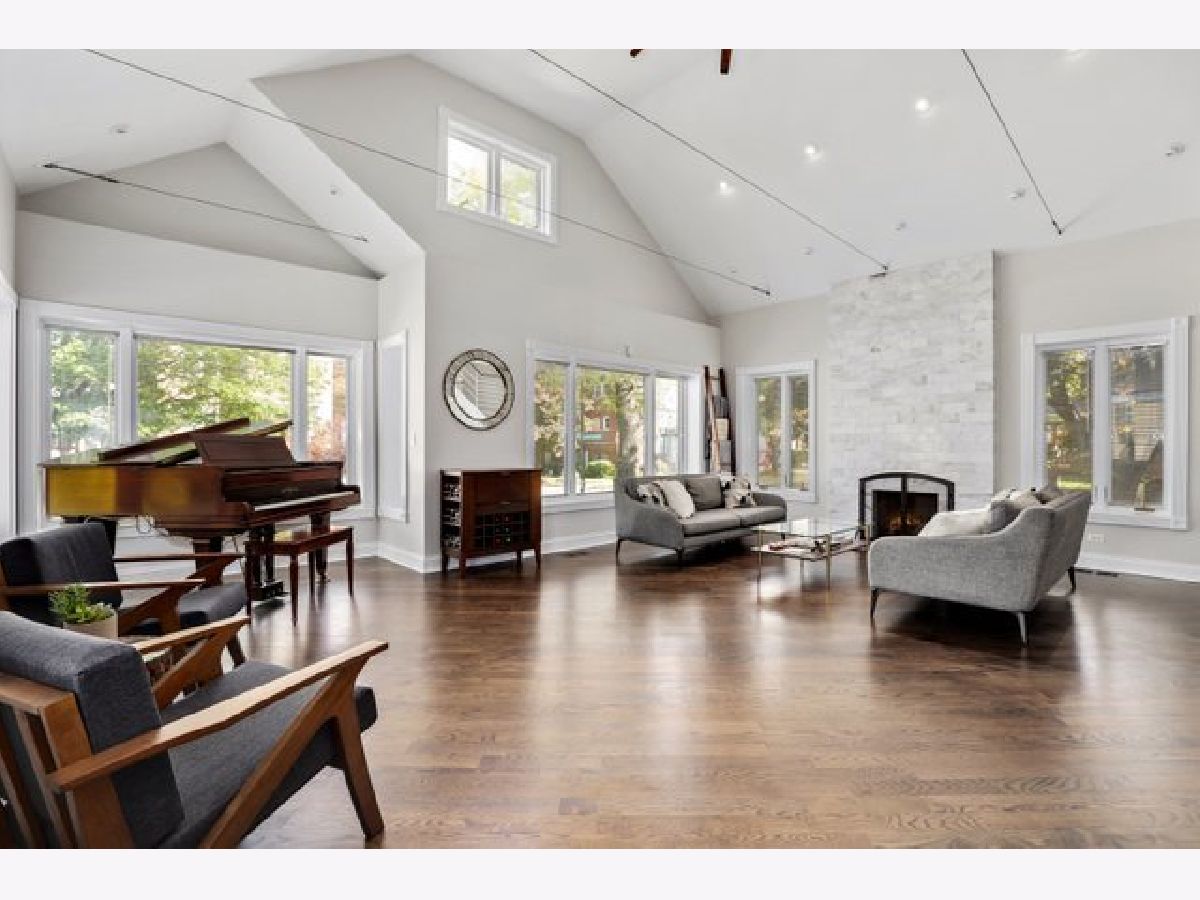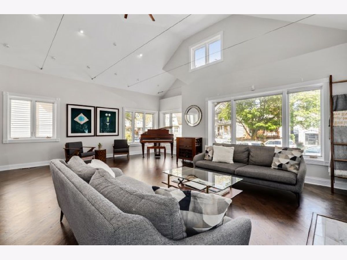 Classic Chicago bungalow meets mid-century modern on a wide corner lot. Must see to appreciate this entertainer's dream! This meticulously cared-for home features an open concept main level with a soaring vaulted ceiling, an abundance of natural light from the large windows, floor-to-ceiling Italian marble fireplace (gas), and beautifully refinished hardwood floors. A chef's kitchen with granite counters, stainless steel appliances, an island, and a breakfast bar opens up to a dining room large enough to accommodate a table for twelve. Two bedrooms on the main level with the primary connected to a shared luxury ensuite bath with rain/body shower and two-person whirlpool tub. A large second bedroom rounds out the main level. The upstairs loft offers an additional living room with a rare mid-century modern electric fireplace, office space (with custom eight-foot built-in walnut desktop), and another bedroom. The downstairs English basement provides even more living space including a family room with an additional floor-to-ceiling marble fireplace (gas starter/wood burning), recreation room with a twelve-foot custom built-in walnut beverage station, mini wine cellar, additional bedroom with a shared ensuite bath featuring a steam shower, and a laundry room. Working from home? The downstairs basement also includes a spacious second office with custom glass doors, ensuite bathroom, and large walk-in storage closet (which could alternatively be converted into a fifth bedroom if needed). Outdoor entertainment made easy with the back deck and patio, with three oversized planter boxes, and plenty of room for grilling/outdoor dining. Brick two-car garage with driveway off of Belle Plaine. Plenty of storage available in the garage attic and outdoor shed. Additional distinctive features include gorgeous long-lasting concrete French Tile roofing, overhead sewer system, and flood control drainage system (internal and external). Easy access to Independence Park, Metra, CTA Blue Line, I-90/94, new Chicago Public library branch, grocery stores, and several restaurants including JTs, Hearth & Crust, and Smoque. Want even more space? Explore the possibilities of building a coach house above the garage as part of the new ADU pilot.