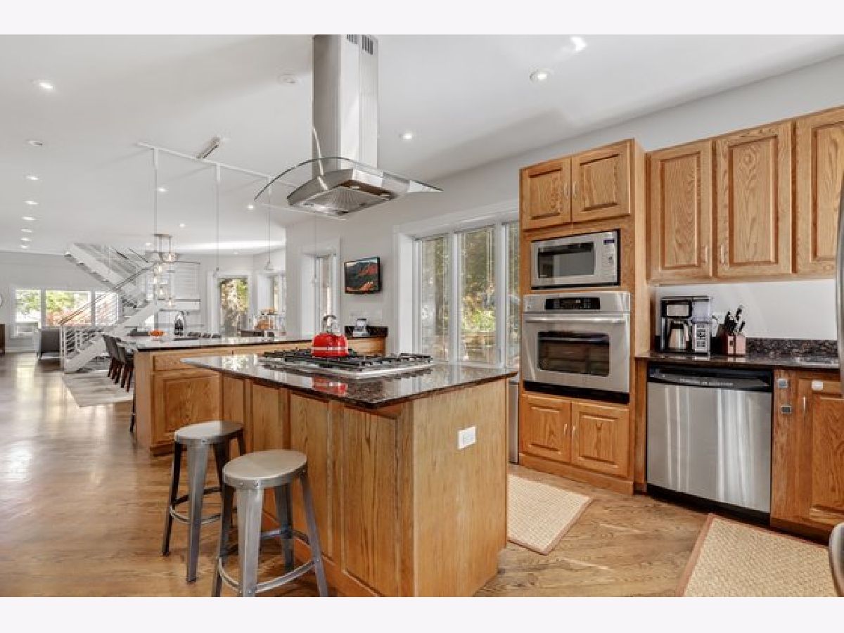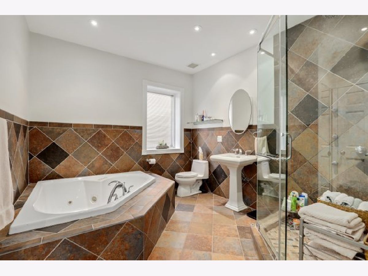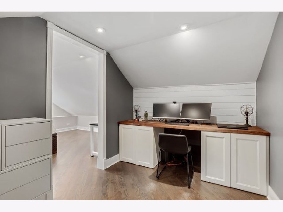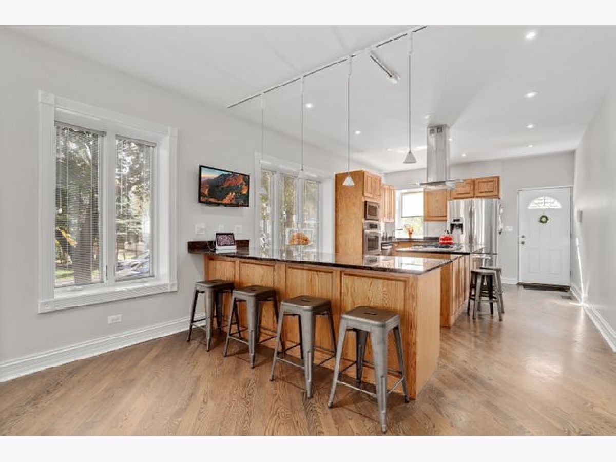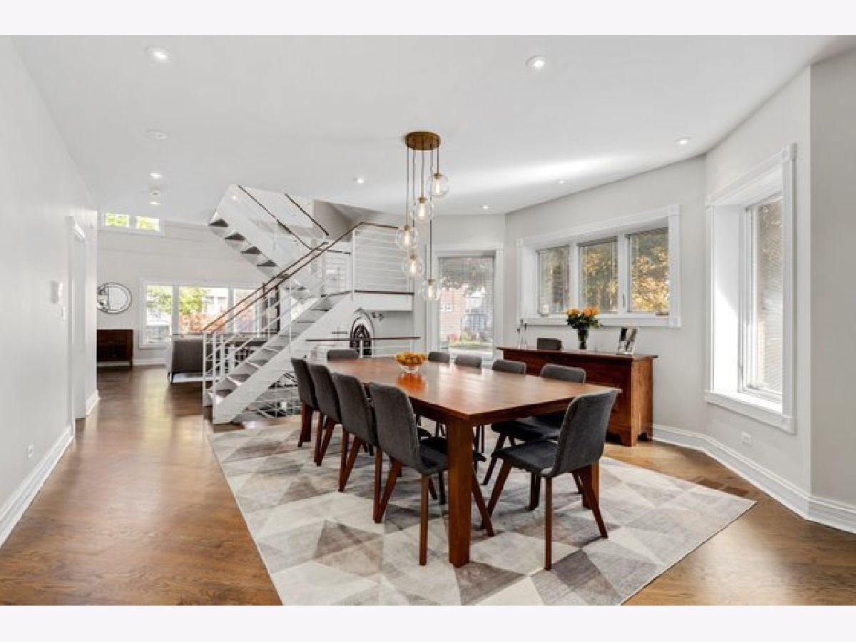 Classic Chicago bungalow meets mid-century modern on a wide corner lot. Must see to appreciate this entertainer's dream! This meticulously cared-for home features an open concept main level with a soaring vaulted ceiling, an abundance of natural light from the large windows, floor-to-ceiling Italian marble fireplace (gas), and beautifully refinished hardwood floors. A chef's kitchen with granite counters, stainless steel appliances, an island, and a breakfast bar opens up to a dining room large enough to accommodate a table for twelve. Two bedrooms on the main level with the primary connected to a shared luxury ensuite bath with rain/body shower and two-person whirlpool tub. A large second bedroom rounds out the main level. The upstairs loft offers an additional living room with a rare mid-century modern electric fireplace, office space (with custom eight-foot built-in walnut desktop), and another bedroom. The downstairs English basement provides even more living space including a family room with an additional floor-to-ceiling marble fireplace (gas starter/wood burning), recreation room with a twelve-foot custom built-in walnut beverage station, mini wine cellar, additional bedroom with a shared ensuite bath featuring a steam shower, and a laundry room. Working from home? The downstairs basement also includes a spacious second office with custom glass doors, ensuite bathroom, and large walk-in storage closet (which could alternatively be converted into a fifth bedroom if needed). Outdoor entertainment made easy with the back deck and patio, with three oversized planter boxes, and plenty of room for grilling/outdoor dining. Brick two-car garage with driveway off of Belle Plaine. Plenty of storage available in the garage attic and outdoor shed. Additional distinctive features include gorgeous long-lasting concrete French Tile roofing, overhead sewer system, and flood control drainage system (internal and external). Easy access to Independence Park, Metra, CTA Blue Line, I-90/94, new Chicago Public library branch, grocery stores, and several restaurants including JTs, Hearth & Crust, and Smoque. Want even more space? Explore the possibilities of building a coach house above the garage as part of the new ADU pilot.