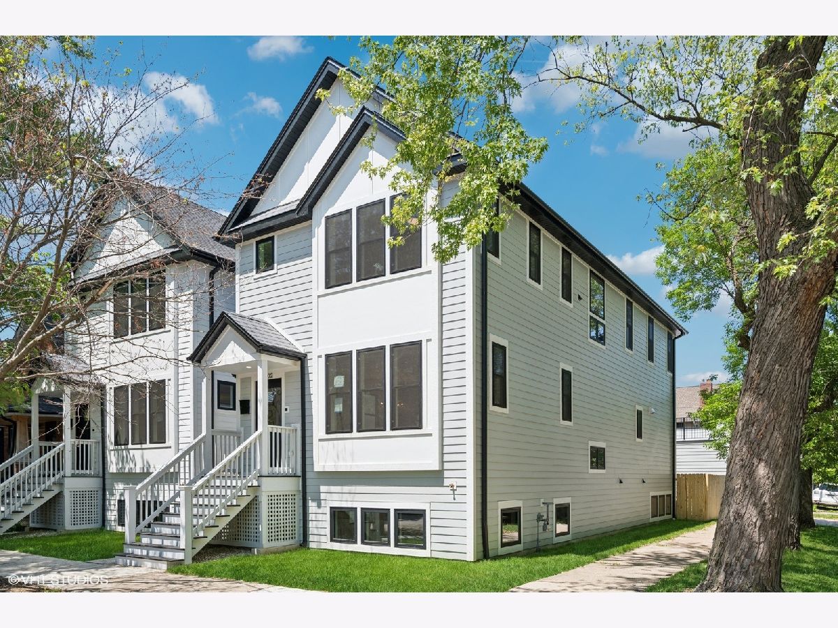 Wide floor plan on 28' corner lot. Brand new 2025 construction with five bedrooms, 3 full bathrooms plus powder room home soaked in natural sunlight, all in a terrific Chicago neighborhood. Over-the-top outdoor space featuring patio paver and grass rear yard with party door from oversized garage and full garage roof deck. A+ millwork package features wide-plank premium solid oak flooring (1st & 2nd floors), solid oak center staircase, dramatic fireplace wall, and an abundance of large windows. Airy eat-in kitchen boasts classy quartz countertops, custom tile backsplash, stainless steel appliance package, exterior-vented stainless steel range hood, and superior-quality custom cabinetry. Large island and eat-in table space. Second floor master suite w/custom-organized walk-in closet, and a spa bathroom w/dual-sink quartz vanity top, spacious walk-in shower, and classy soaking tub. Two more spacious bedrooms (with large closets), a common bathroom, plus a full laundry room w/sink & custom cabinetry complete the bright 2nd floor. Four out of five bedrooms have walk-in closet. Carpeted lower level with 9' ceilings and multiple large windows bring in terrific natural sunlight. Sprawling recreation room features wet bar with custom cabinetry, quartz countertop, and beverage refrigerator. 4th and 5th bedrooms with huge closets, an additional laundry room, and mechanical room complete the lower level. 2.5-car garage with upgraded insulated overhead door. Amazing urban conveniences abound - commuter's dream (public transportation, driving, or bicycling), grocery stores, restaurants, taverns, and retail. Builder is IL-licensed real estate agent but is not listing agent. Very well thought-out home featuring abundant natural light, living and entertaining efficiency, ample storage, terrific outdoor spaces, and supreme construction quality. Seller welcomes buyer brokers.