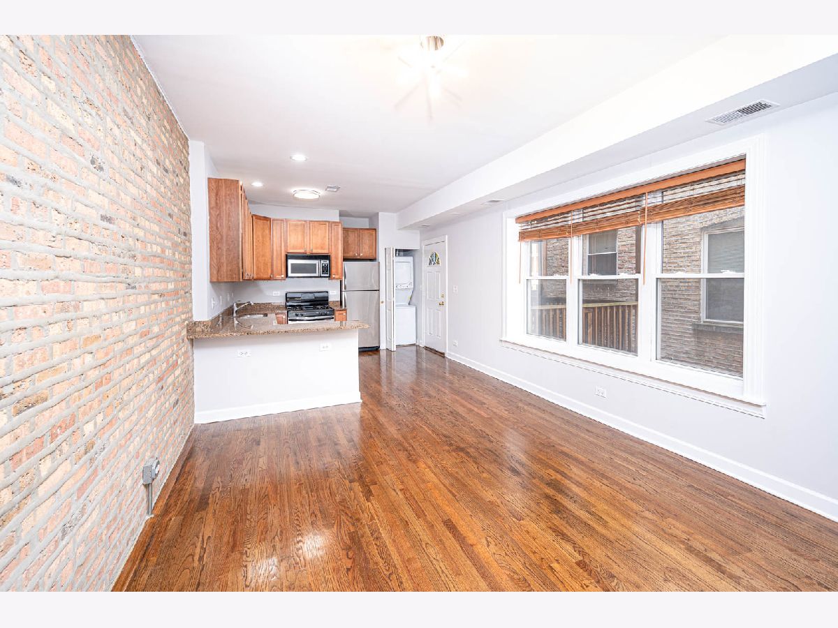 Charming 2 bed/1 bath condo located in desirable Irving Park. This move in ready unit boasts an open concept layout with kitchen flowing into living/dining area. Freshly painted walls complement the hardwood floors and exposed brick accent walls throughout. Enjoy the convenience of an in unit washer and dryer. Step outside onto the large deck, perfect for entertaining or relaxing outdoor. An additional storage closet is available in the lower level of the building. Situated near the Irving Park Metra/Blue Line, this condo offers easy access to transportation. Explore nearby shopping options within walking distance. Don't miss out on this opportunity to call Irving Park home! Please note cameras on/in building.