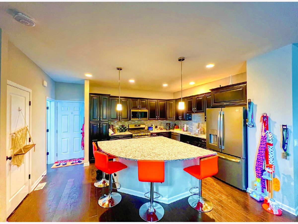 Gorgeous end-unit townhome overlooking a wide-open pond area in a peaceful neighborhood located right in the heart of the Aurora/Naperville area and school district 204. Walking distance to Route 59 Metra station, minutes away from shopping, dining, downtown Naperville, Fox Valley Mall, i88. This open-concept gem was built in 2018 and features 3 bedrooms, 2 full baths and 2 half baths, upstairs laundry room, spacious 2 car garage, large porch and owner's bedroom balcony and is fully upgraded with hardwood floors, fireplace, quartz countertops, soft-close cabinets, luxury owner's bathroom, walk-in closet organizer and a finished basement. This home is also equipped with many smart-home features such as Ring video doorbells, Nest thermostat, alexa-enabled Leviton wifi smart light switches, Chamberlain smart garage door opener, upstairs wireless access point for better wifi coverage, wired CAT5e ethernet throughout the home, and available gigabit fiber internet from AT&T. All kitchen appliances stay. Washer/Dryer and 86" 4K TV are negotiable. Multiple offers received. Offer deadline Sunday 5 PM