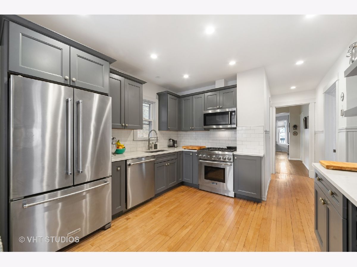 Charming recently updated Irving Park 4BR/2.1 bath home with family room and 2 home offices on lovely quiet block! Fully fenced and situated on a wider 30' lot with both front & back yards. Roomy home with a great flowing layout and excellent natural light thru tons of newer bay windows. Alluring real oak hardwood floors thru-out. Gorgeous well-equipped kitchen boasts new Thermador/KitchenAid SS apps, thick quartz counters, soft-close 42" cabinets & subway tile backsplash. Main level also has separate living/dining rooms, a full bath plus 2 bedrooms. Upstairs you find 2 BRs, a spacious family room, an office/den that could easily be converted to another bedroom & brand new bathroom. Partially finished walk-out basement has large laundry room, half bath & tons of storage. Relax outside on your covered front porch or enjoy entertaining/playing in the back yard. 3 New Daikin AC/Heat forced air units & new water tank. New electrical panel. Newer 2-car garage. Easy highway access & 12 min walk to Addison or Irving Park L trains. This is the one!