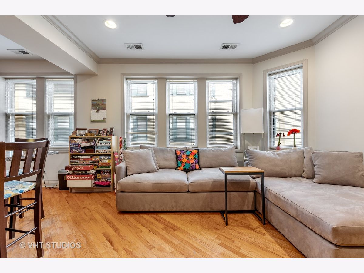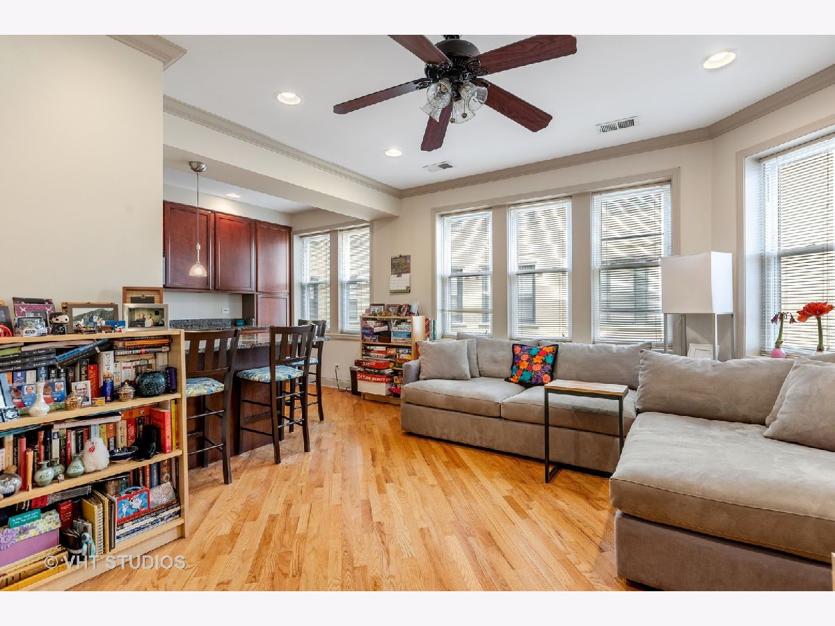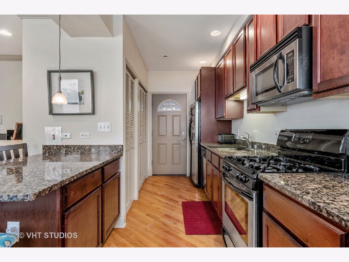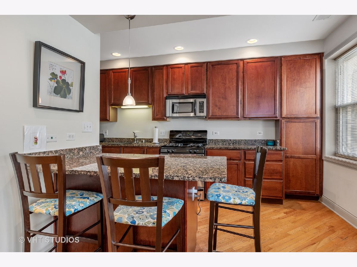 Updated 1 bedroom/1 bath on tree lined Keystone! Open living room with fireplace with gorgeous mantle.Diagonal hardwood flooring adds to the charm. Kitchen with breakfast bar, SS appliances and cherry cabinets. Updated spacious bathroom Large bedroom with closet and plenty of storage. In unit washer/dryer. Fantastic walking to the blue line . Metra and close to expressway. Tucked in a quiet street close to amenities. Financially solid courtyard building.