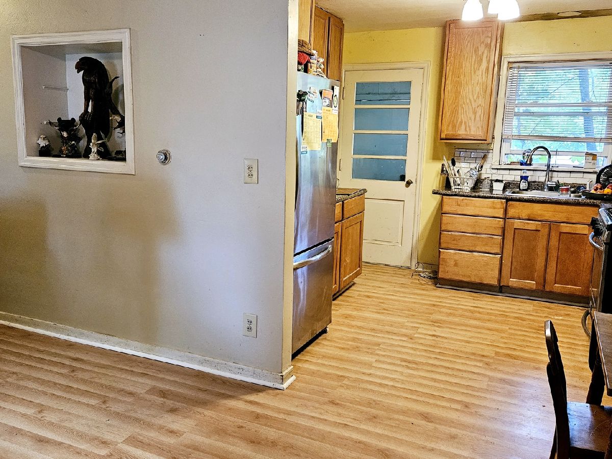 Ranch style home with 3 Bedrooms, 1 Bath and 2 Car Garage sitting on a White Picket Fence Corner Lot with Mature Trees. Vinyl Siding and Gutters (2018), New Roof (2018 ) and Chimney (2018). Open Floor Plan. New 42" Kitchen Cabinets, Countertops and Stainless-Steel Appliances added. Living Room has lots of natural lighting and opens to Kitchen/Eating area. Large Owners Suite with Dual Closets. New Carpet in Bedrooms. Professionally Cleaned. Interior spaces need to be completed. Basement is blank canvas for family/game room along with laundry and utility room - New Washing Machine and Dryer. 2 Car Garage attached. The home needs TLC. Sold AS-IS. Close to Schools, Shopping, Alpine Hills Golf Club and Alpine Park.