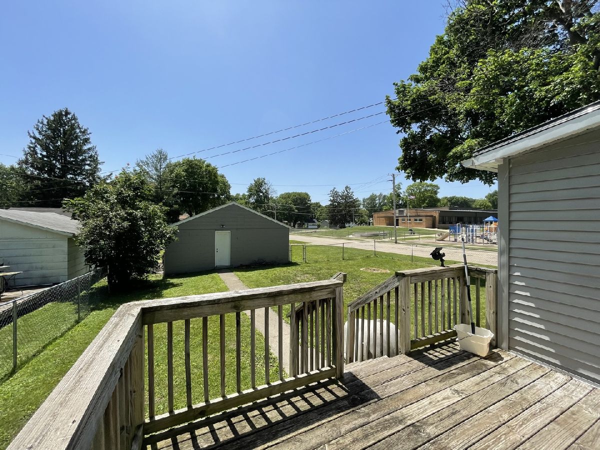 Adorable 2-3 bedroom, 1-1/2 story home on a corner lot in Sterling. Low maintenance. Open front porch perfect for a swing. Newer laminate in living room and separate dining room or office. Spacious kitchen with breakfast nook, plenty of cabinets and appliances included. Roomy main floor bedroom. Laundry and full bath with tub/shower are also on the main level. Huge 2nd bedroom on the upper level. Plus bonus room that could be 3rd bedroom (walk-thru). Deck off the back door. Chain link fenced backyard. Roof, gutters. vinyl siding and vinyl replacement windows (2012). Central air (2020) Rubberized roof on both porches. Motion detection light on front porch. Spacious 2 car garage on the alley with openers. Oh so handy location, close to park, schools, restaurants, shopping and more!