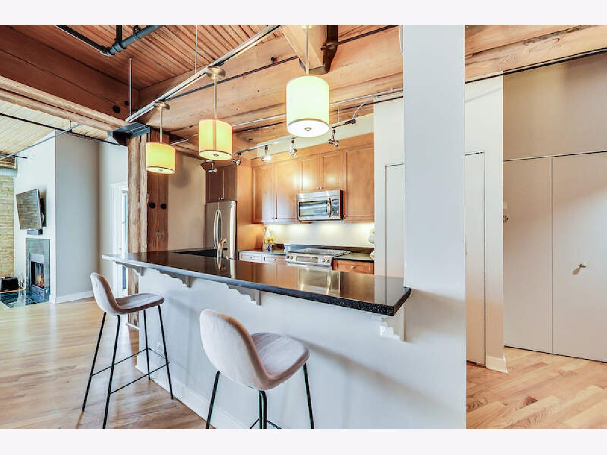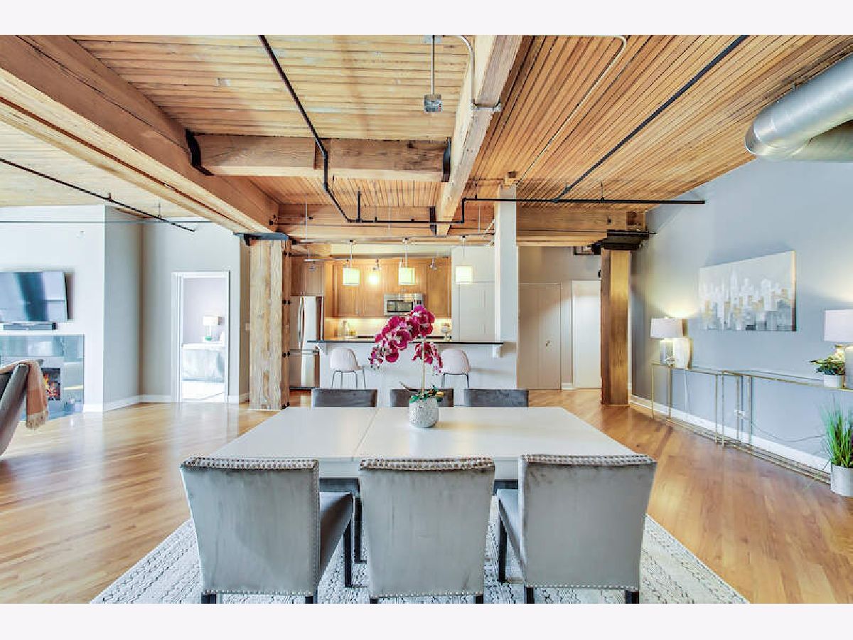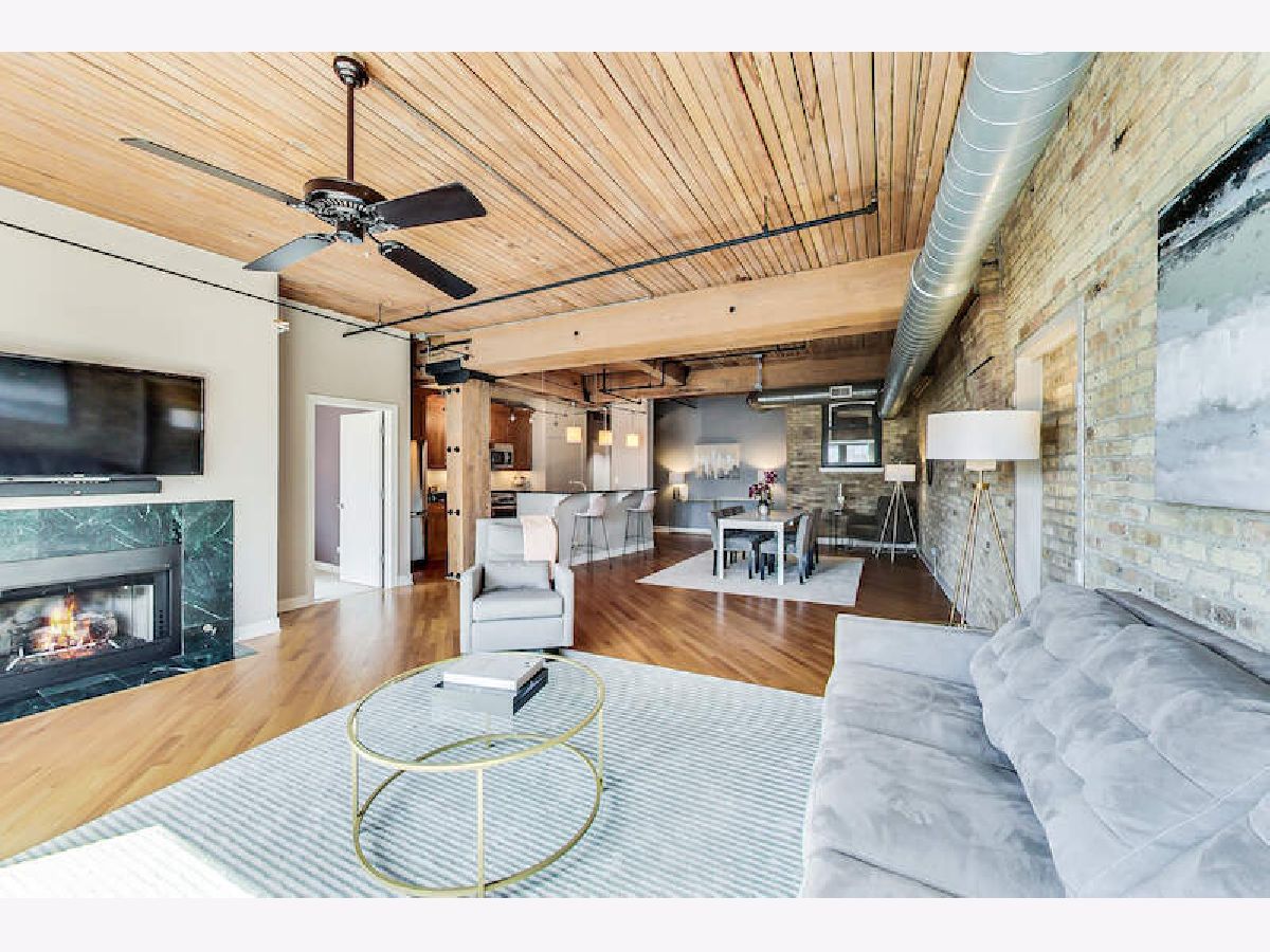 Welcome to this incredible and spacious 2/2 plus den/office brick & timber loft. The large living room is anchored with a wood burning fireplace & wonderful south light Floorplan flows seamlessly into the generous (and real!) dining room. The roomy balcony (perfect for grilling) has amazing skyline views and is accessed from the LR. The granite & SS kitchen is roomy and includes a breakfast bar plus extra deep pantry. The big primary bedroom has 16 linear feet of organized closets which leads to the private bath. The second bedroom is the unicorn for a brick and timber loft- completely closed off AND has a window with actual light! Organized closets in this bedroom as well & the perfect WFH setup - a den or office which also has a window. Of course, it has in unit laundry and 1 indoor heated spot (#116) in a rock star location included in the price. There is a second outdoor spot available for $15K. Well-run, pet-friendly building w/ full-time door staff, stunning rooftop deck, a real workout room + yoga room & over 1.2 in reserves. Building has never had a special assessment. Moments to everything!
