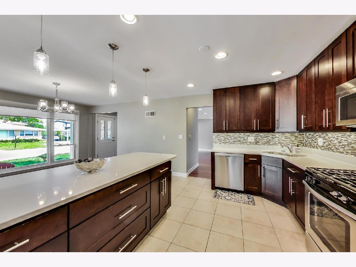 Picture perfect ranch house on an extra wide lot in the desirable Devonshire neighborhood in Skokie. This 4 bedroom, 3 bath home is MOVE IN READY and full of updates. Beautiful custom cook's kitchen featuring an oversized quartz island, SS appliances and custom cabinetry, opens to dining space and adjacent to huge family room with recessed lighting. Fully finished, walkout basement with 4th bedroom and full bathroom, rec/play space, laundry and storage. Lovely and spacious backyard with newer play set, brick paver side patio and attached mud room. Hardwood floors freshly sanded and stained and brand new carpeting in all bedrooms. Wonderfully priced with low taxes-this beauty will go fast! Space for attached or detached garage. EASY TO SHOW