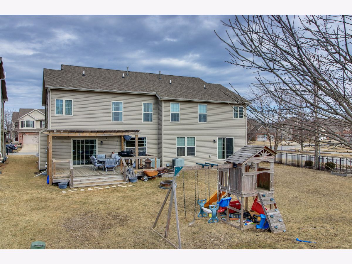 Beautiful open floor plan with 2-story foyer and no back yard neighbors. 4 Bedroom, 3 1/2 baths - TONS of updates! Main floor offers spacious open living room with vaulted cailings, tons of natural light throughout. Beautiful kitchen with new quartz countertops (2022) and tile backsplash (2021). Large breakfast peninsula and plenty of space for dining table. Lots of cabinets and pantry for plenty of storage. Living room has gorgeous hard wood floors (2017). Upstairs features large master with full bath. Master bath has whirlpool tub, separate shower and double vanity. Two additional large bedrooms, a full bath and conveniently locate laundry room complete the second level. Fully finished basement (2016) offers huge family room, a fourth bedroom, another full bath and a large storage room. Lots of pretty details including barn doors in the lower level just add to the charm and beauty of this home. Attached 2 car garage and beautiful back deck with pergola and play set.