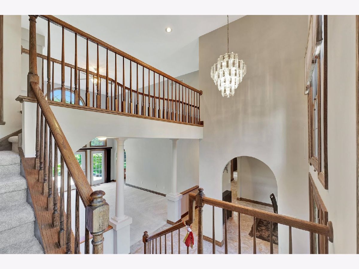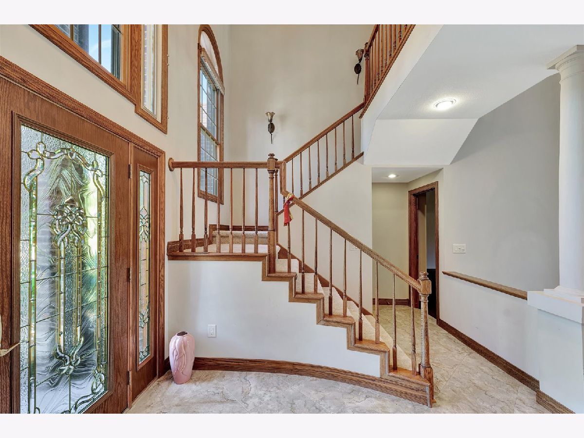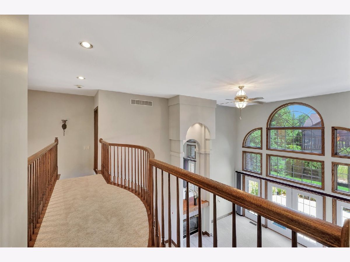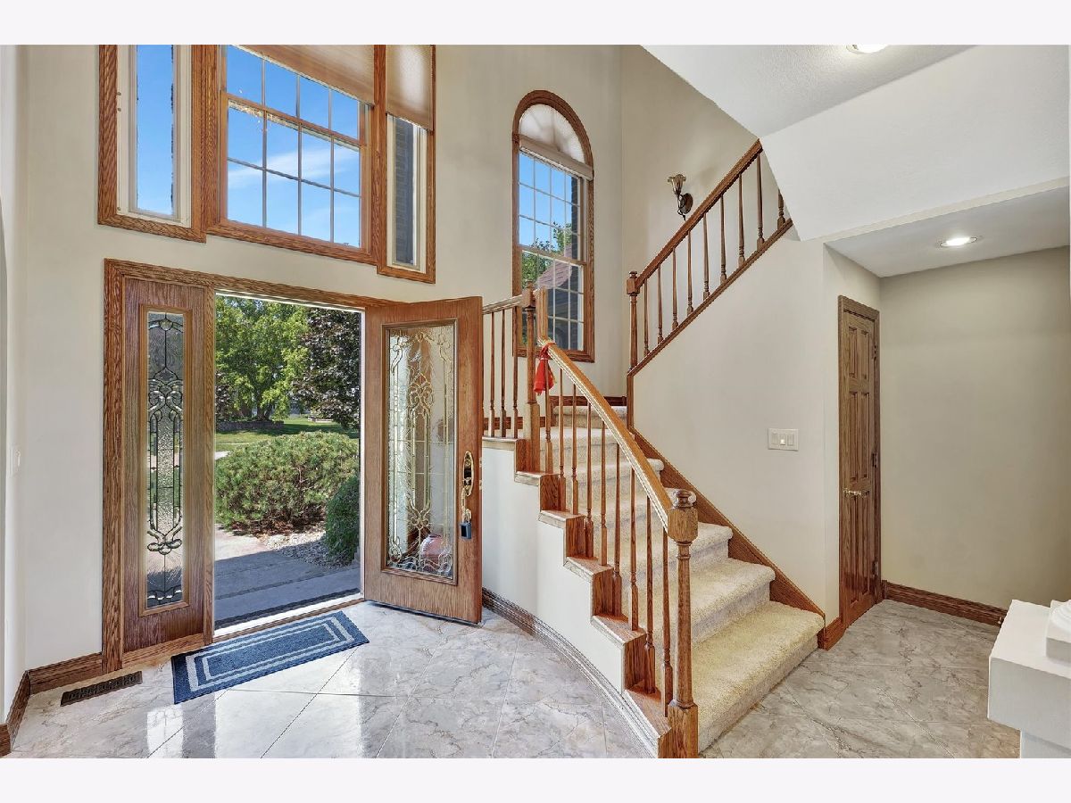 PRICE ADJUSTMENT at 412 N Abbey Rd.! A captivating residence nestled in the welcoming Beringer Commons community. Step inside, and you'll be greeted by grandeur: soaring ceilings grace both the foyer and living room, adorned with an impressive wall of windows that flood the space with natural light. A captivating two-way fireplace and architectural accents make this home truly unique. With four bedrooms, including a large master suite on the first floor (boasting an expansive master bath and huge walk-in closet with custom built-ins!), and three bedrooms upstairs. Notably, one of the bedrooms has a private covered balcony with views of the back yard and lake. Spacious gourmet kitchen, featuring abundant cabinets, a center island, granite countertops, wall oven and microwave, a walk-in pantry, lovely eating nook and a multitude professionally cleaned windows. Other highlights include dual staircases, a dedicated computer area, an upstairs family room, solid oak doors and trim, trey ceiling in dining room and master bedroom, a generously sized laundry room loaded with cabinets for storage, a central vacuum system, and the added comfort of a NEW ROOF and FURNACE installed in 2021. The 3.5 car garage boasting heating and cooling with a separate furnace and A/C along with an abundance of storage space. The professionally landscaped yard showcases a variety of trees and shrubs and private, fenced-in back yard. Located minutes to U of I Campus, hospitals, shopping and a Stone Creek golf course. A home you will not want to miss!