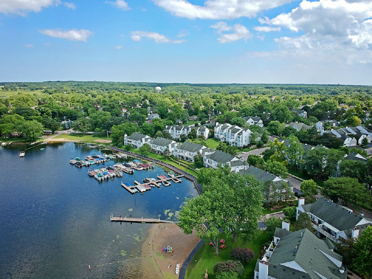 Lake Life Living Close to the City doesn't get much better than this!!! RARELY available large Harbor model with Office/Den on Main Level and a Finished Basement!!! Move right in to this fabulous home on a quiet cul-de-sac just a block from Bangs Lake with pool, private beach, park, gazebo, kayak storage and marina all on the lakefront walkway. Wonderful resort community! Close to downtown restaurants and entertainment. What's not to love? Two-story Living Room filled with natural light, skylights, hardwood floors and a cozy gas fireplace too. Beautiful bay window in main floor spacious office/den/3rd bedroom a real plus! Very large Master Bedroom suite with walk in closet, double sink vanity and whirlpool tub. Kitchen has maple cabinets, eating area plus a butler pantry! Finished Basement with Rec Room, Exercise Area, Cedar Closet, Dry Bar and Pool Table included! Nice sliding doors to outdoor patio, garden and landscaped area. 2 car garage with kayak/bike storage pulley system. Newly painted and newer carpet. ***Choice Home Warranty Included***