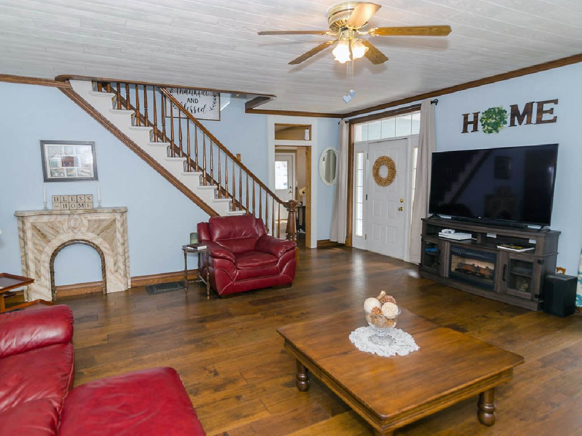 A charming Tolono property on a rare 1.16 acre site! This 4 bedroom, 2 full bath home is loaded with character and updates. Maintenance free vinyl siding, replacement windows, and newer furnace and air. Large kitchen with stainless appliances, granite countertops, and tile backsplash is adjacent to a huge dining area with access to the back deck. First floor master bedroom with full bath, first floor laundry room, large living room, and an additional first floor bedroom/office space. There is also a second full bath along with a drop zone/entry area. Updated wood flooring throughout the main level. Two additional good sized upstairs bedrooms. Antique fireplace mantels throughout the house will stay. Home has radon mitigation system. The 20x40 detached garage could hold 4 cars and is set up as an indoor basketball court with plenty of size, height, and a concrete floor. There are two additional storage buildings behind the garage. The exterior of the home is set off with two decked entry areas and a large back deck that overlooks your panoramic park-like back yard with tons of space and mature trees. Great central Tolono location with convenient access to all Unit 7 schools.