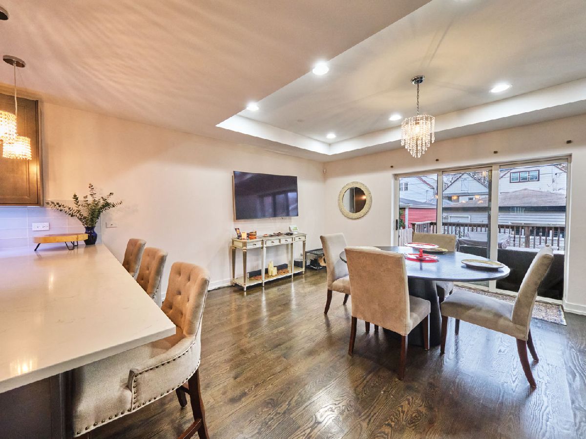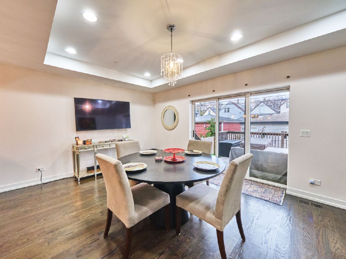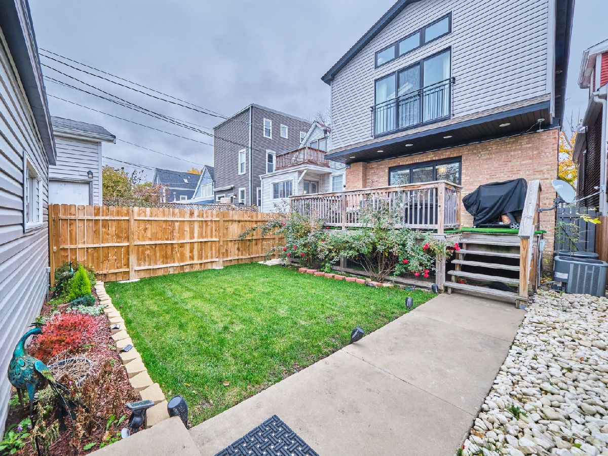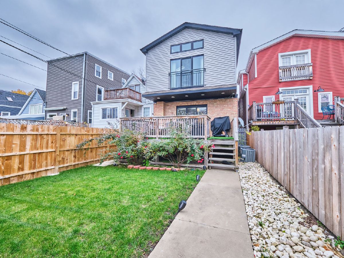 Irving Park Single Family home with modern finishes. Large open concept first floor, with large open kitchen with custom wood cabinets, quartz counter tops with a a gas range and floating hood and a separate wall with double oven, fridge and microwave all neatly tucked away and built in with great cabinet space. Large dining area that opens to back deck and yard with new backyard fence and front fence added. Upstairs features 3 large bedrooms, 2 full baths. Primary bedroom with skylights and bathroom with separate shower/tub and double vanity. Finished basement with nice family room, 4th bedroom and den and plus full bath. Washer & dryer conveniently located on 2nd floor with a laundry hook up in the lower level. Dual zoned HVAC. Two car garage. This home has a nice back deck plus great yard space. Come check it out!