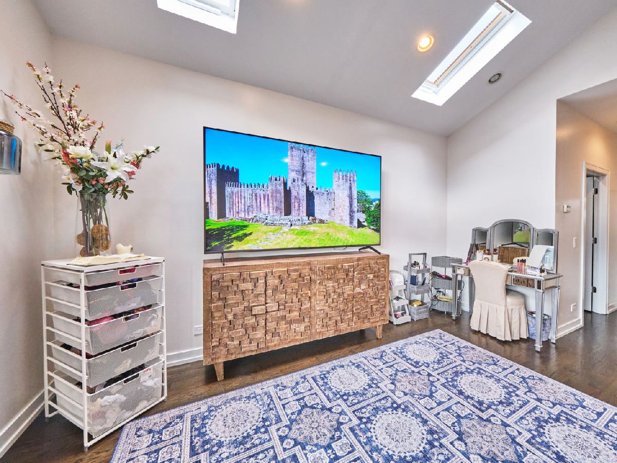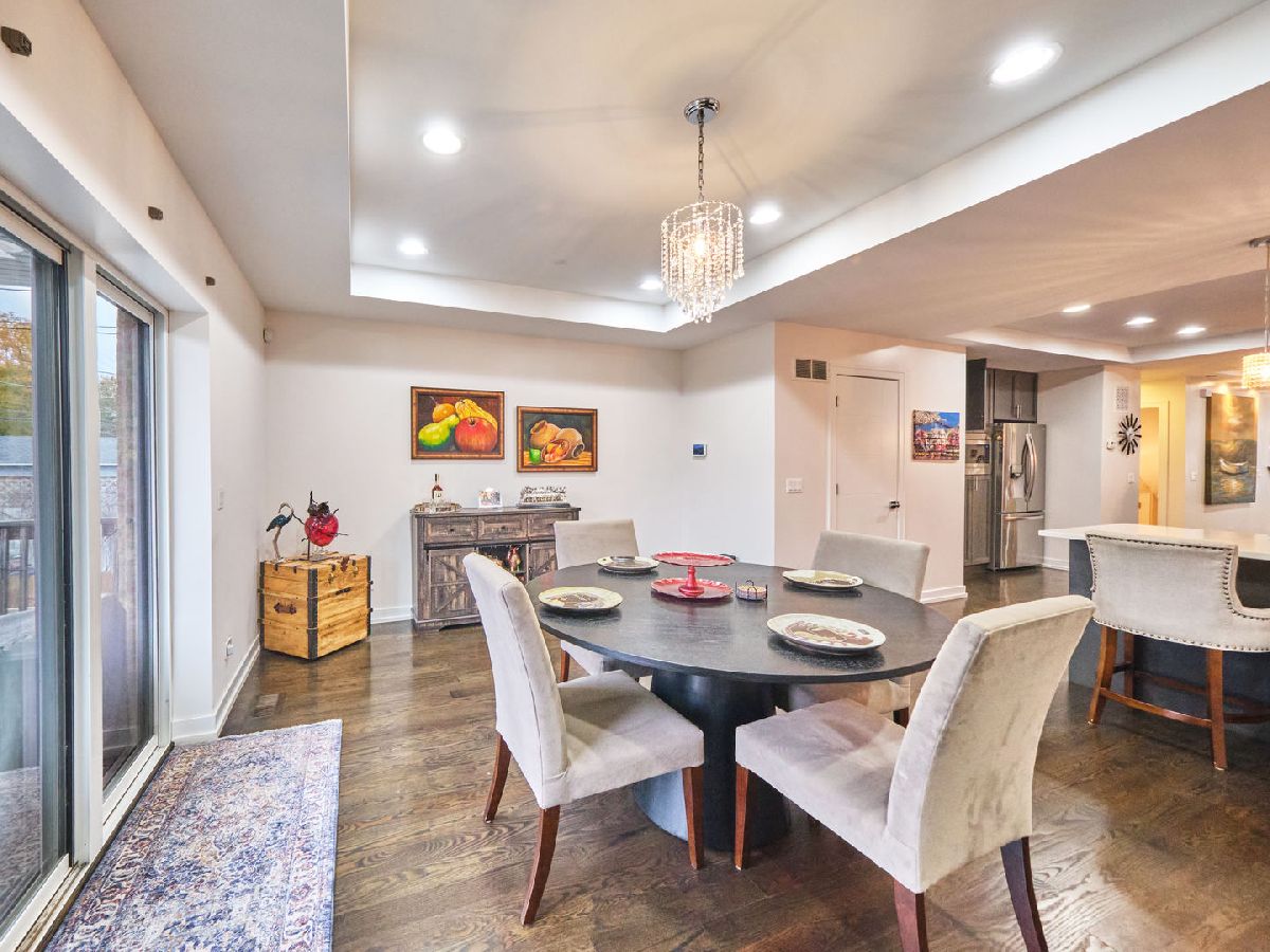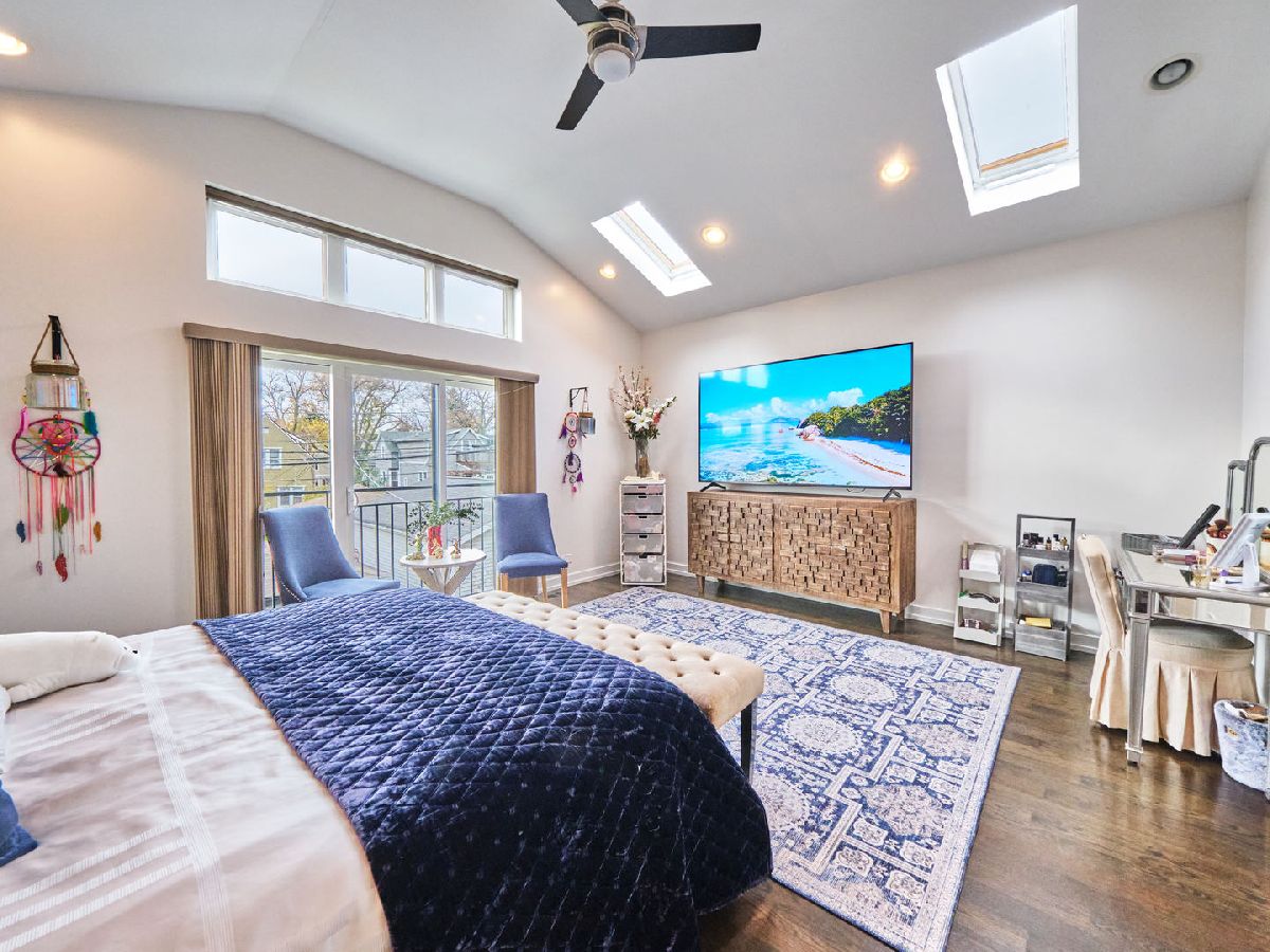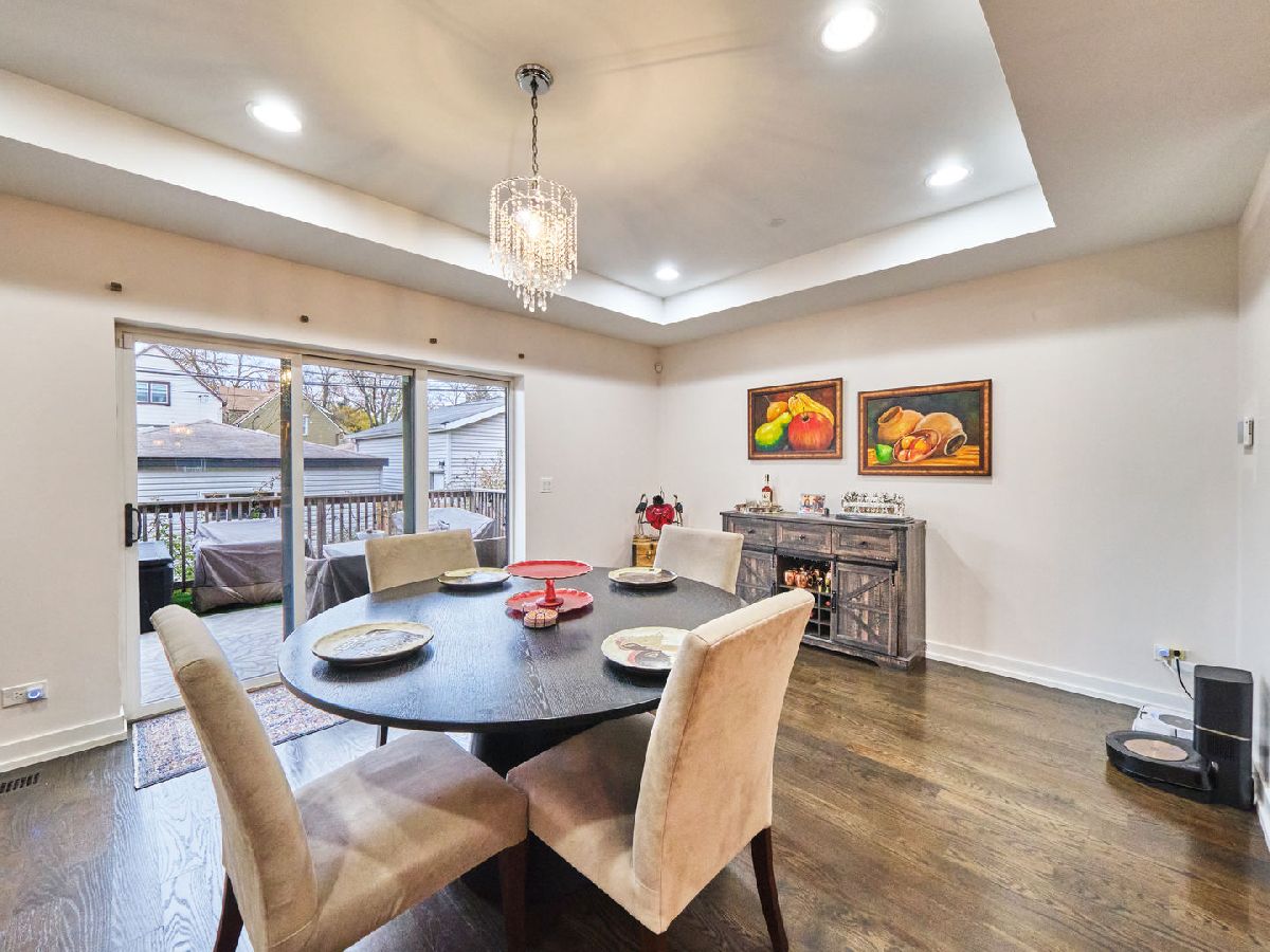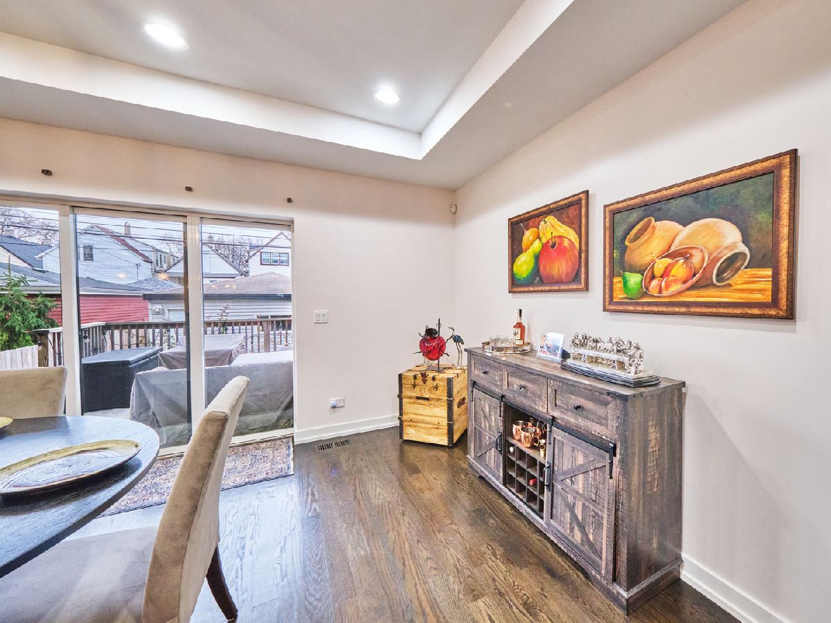 Irving Park Single Family home with modern finishes. Large open concept first floor, with large open kitchen with custom wood cabinets, quartz counter tops with a a gas range and floating hood and a separate wall with double oven, fridge and microwave all neatly tucked away and built in with great cabinet space. Large dining area that opens to back deck and yard with new backyard fence and front fence added. Upstairs features 3 large bedrooms, 2 full baths. Primary bedroom with skylights and bathroom with separate shower/tub and double vanity. Finished basement with nice family room, 4th bedroom and den and plus full bath. Washer & dryer conveniently located on 2nd floor with a laundry hook up in the lower level. Dual zoned HVAC. Two car garage. This home has a nice back deck plus great yard space. Come check it out!