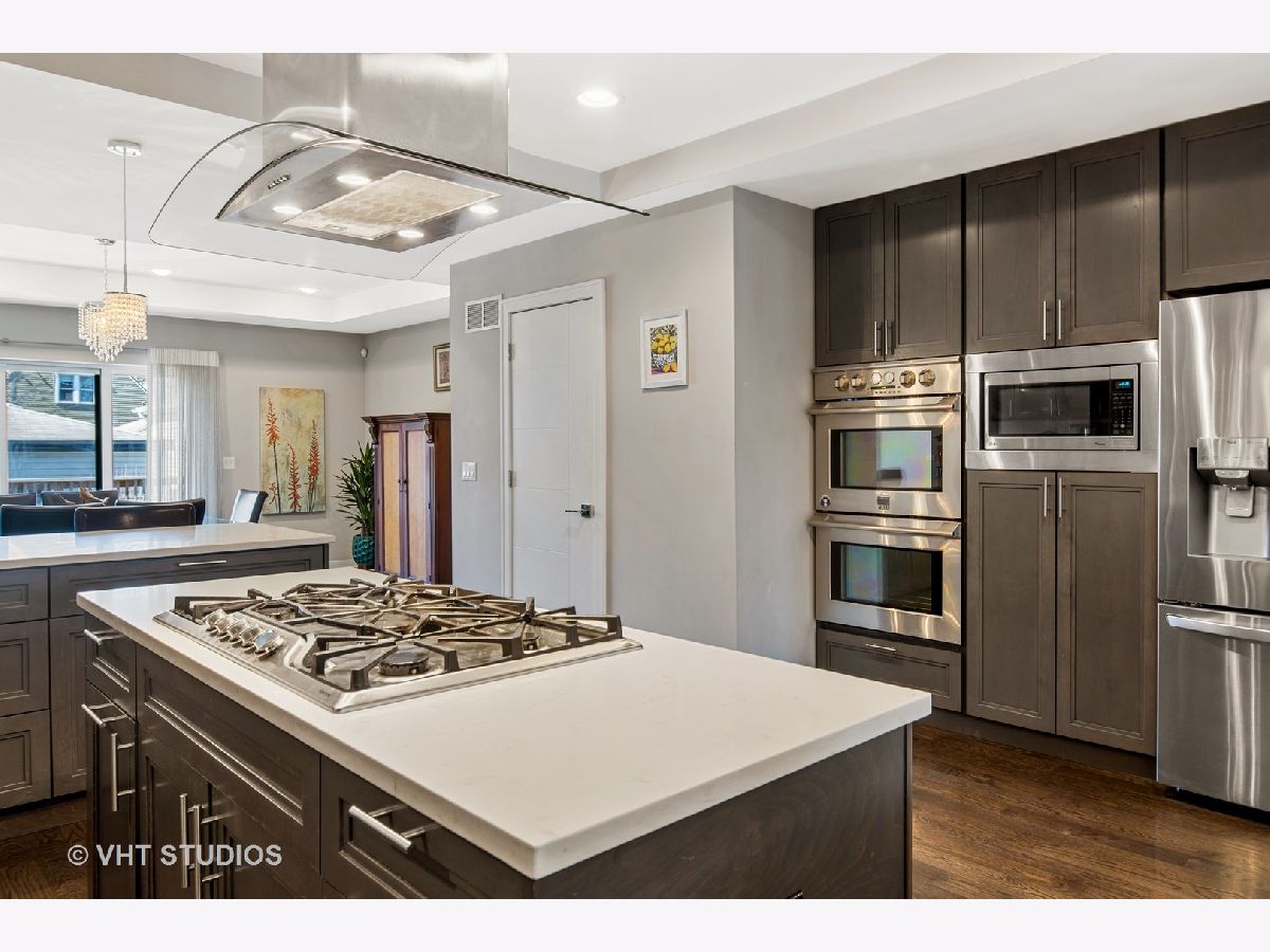 Irving Park Single Family home with all modern finishes. Large open concept first floor, with large open kitchen with custom wood cabinets, quartz counter tops with a a gas range and floating hood and a separate wall with double oven, fridge and microwave all neatly tucked away and built in with great cabinet space. Large dining area that opens to back deck and yard. Amazing lighting throughout! Upstairs features 3 large bedrooms, 2 full baths, custom closets & blinds throughout. Primary bedroom with skylights and bathroom with separate shower/tub and double vanity. Finished basement with nice family room, 4th bedroom and den and plus full bath. Washer & dryer conveniently located on 2nd floor with a laundry hook up in the lower level. Dual zoned HVAC. Two car garage. This home has a nice back deck plus great yard space!