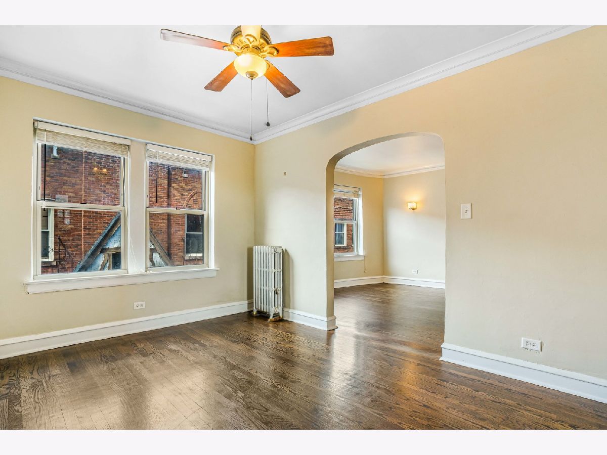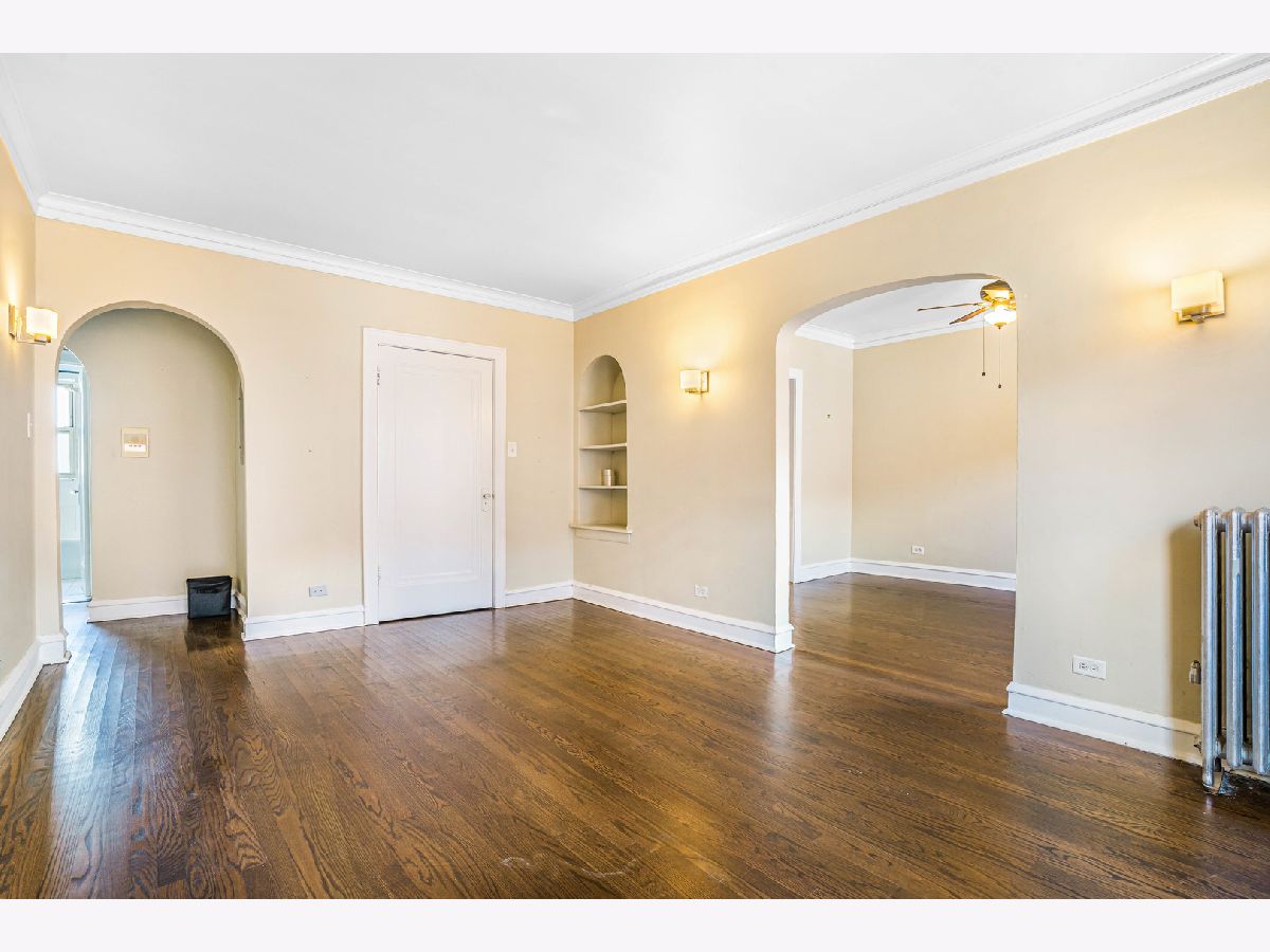 Introducing this beautifully updated one-bedroom condo, tucked inside a secure, gated vintage courtyard building full of timeless character. Freshly painted and move-in ready, this spacious home features gleaming refinished hardwood floors, elegant crown molding, and charming arched doorways throughout. The generous living room and separate dining area offer the perfect blend of comfort and function. The updated kitchen boasts granite countertops, ceramic tile flooring, and plenty of cabinet space for all your storage needs. Additional features include private storage, a dedicated bike room, and convenient on-site laundry. A new boiler was installed in 2021, and your low monthly assessment covers heat, gas, water, exterior maintenance, and trash collection-adding incredible value. Located just minutes from parks, schools, churches, and a wide selection of local restaurants with outdoor seating. With easy access to I-90/94, the Metra, and the Irving Park Blue Line, this is a commuter's dream-perfectly positioned between downtown and O'Hare. Don't miss this unbeatable combination of charm, convenience, and value-schedule your showing today!