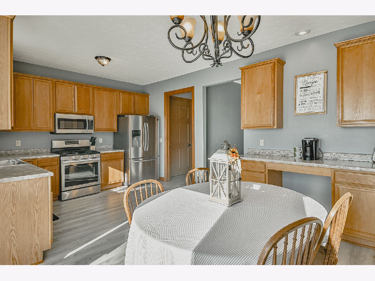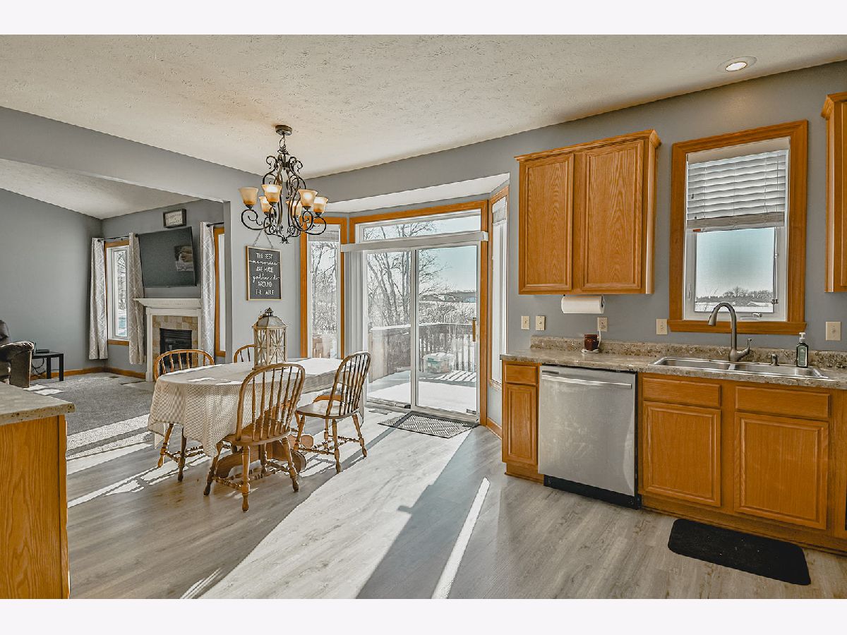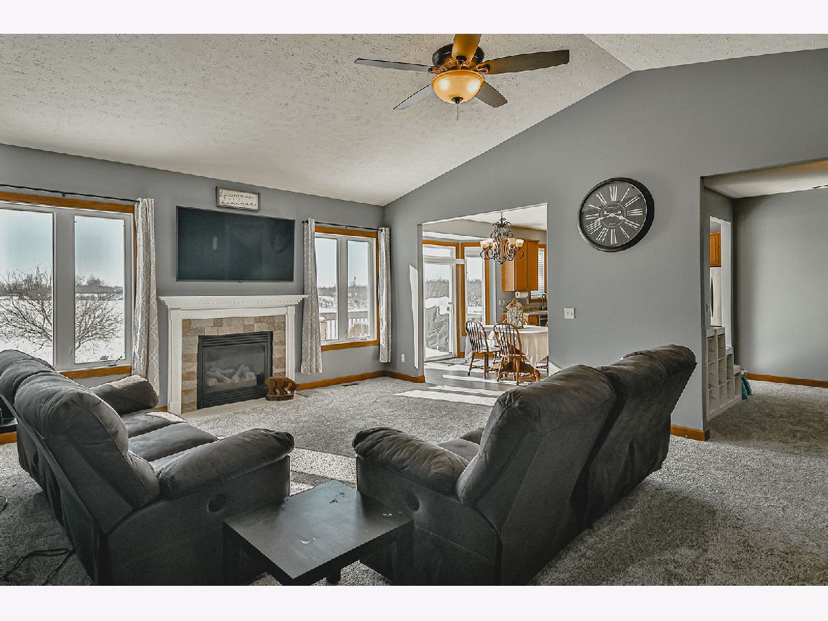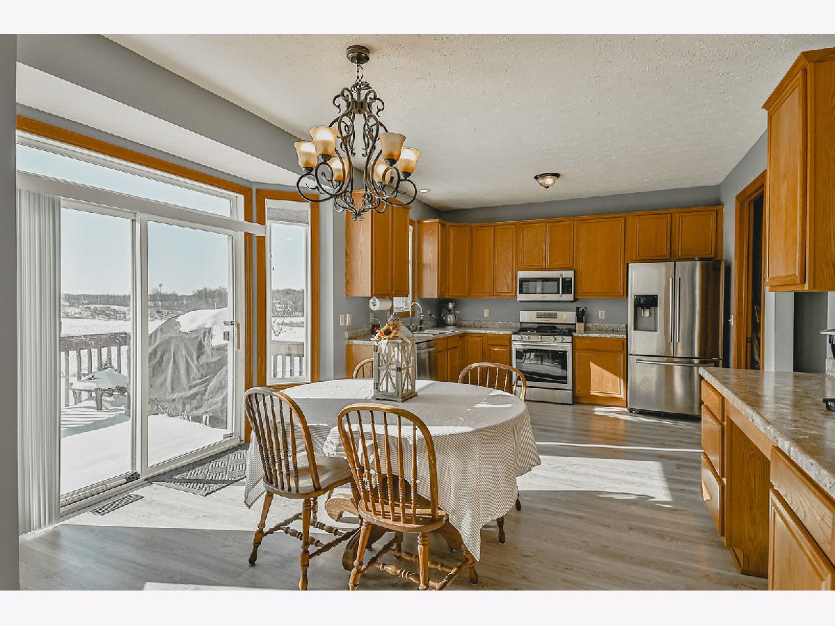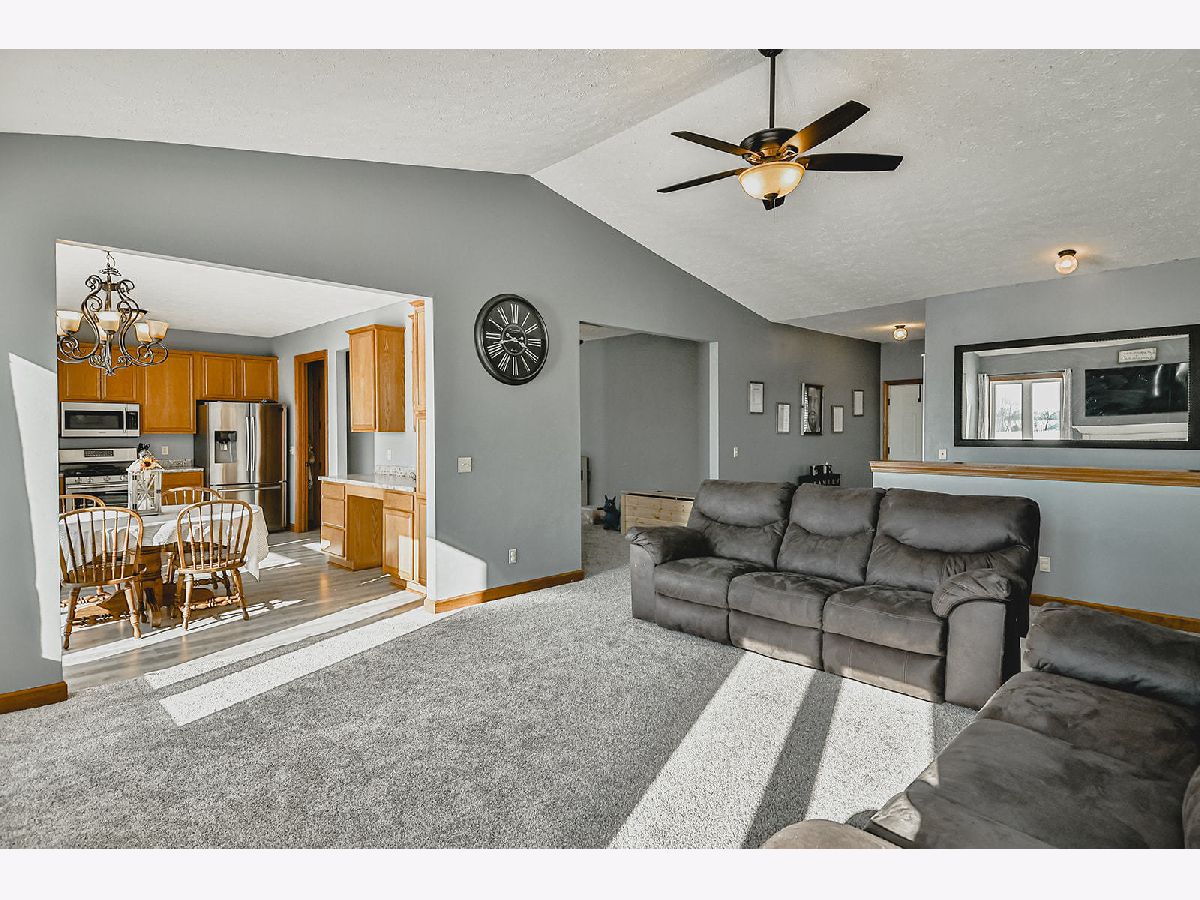 This home is move in ready in the quaint village of Poplar Grove! Beautiful, well maintained 3 bedroom Ranch in the North Boone School District. Walk in and be welcomed by the great room with a vaulted ceiling, cozy fireplace, and views of the backyard. Kitchen has newer flooring, stainless steel appliances, and eating area with sliders to the deck with views of the tillable farmland and backyard with swing set. Formal dining room off the kitchen. Master bedroom with private bath, jetted tub, and walk-in closet. 2 additional bedrooms and full bath. New carpet, updated light fixtures, and 6 panel doors throughout the home. New flooring in the mudroom and main floor laundry. Wide open, partially exposed basement with egress windows waiting to be turned into more finished living space. Oversized, attached 3 car garage. Close to trails, parks and tennis courts.
