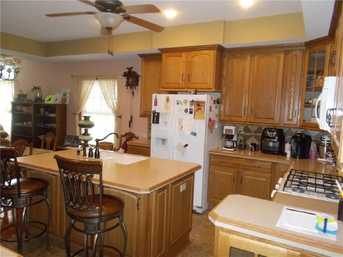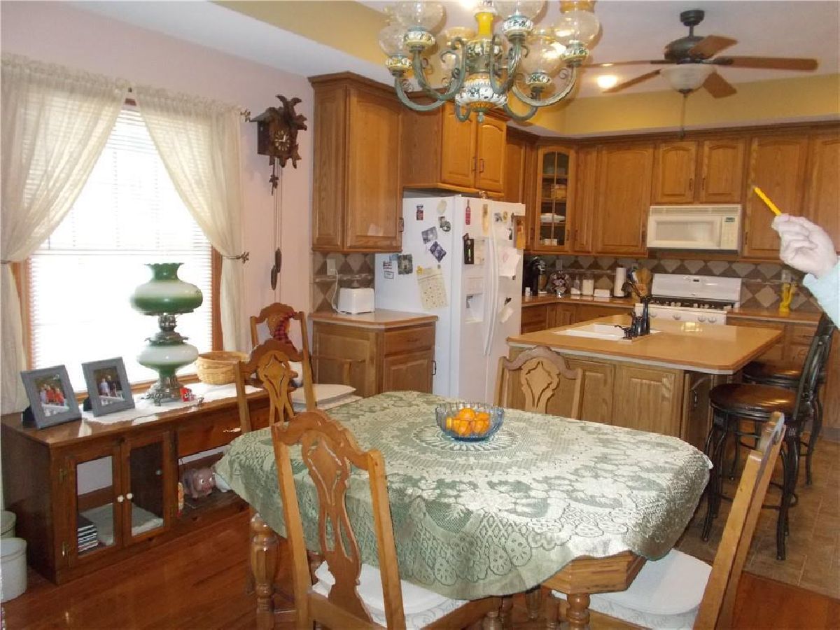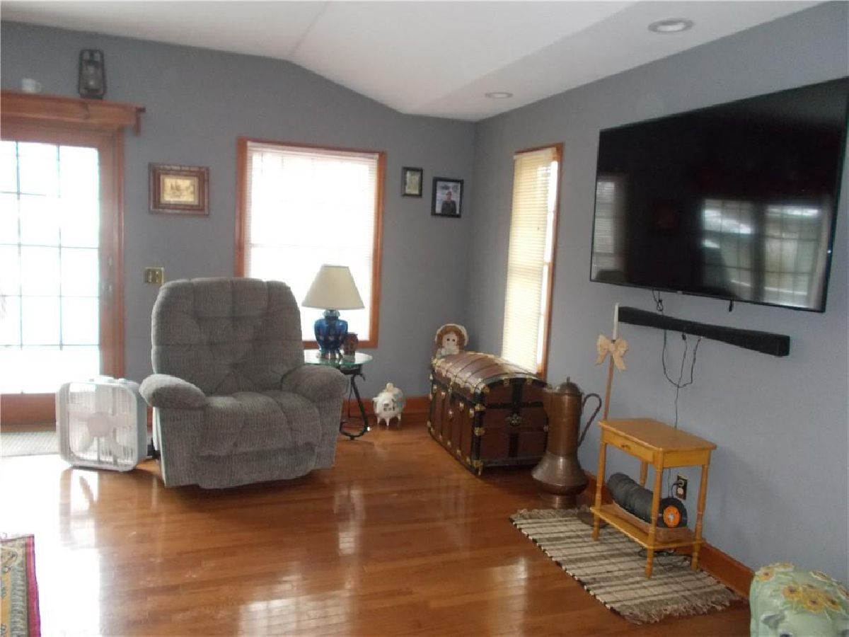 OH MY!!! Where do I start with this home having so many amenities!! This 1.5 story home has a HUGE Family room with wood floors, updated kitchen with built in hutches, office, bedroom, dining area, and bath all on the main floor. The upper level has two bedrooms and storage. This home on a corner lot has a large, heated garage with full bath,overhead doors, an area for entertaining or just sitting, watching TV. Adjoining the garage is a full bath, laundry and an adjoining exercise room. The exercise room could be used as a private office or a four seasons room. The property has a detached garage with heat & air, which could be used as a private business area. Other amenities include, unfinished basement, a deck, a patio and a shed being used as a workshop area. (The above ground pool is a negotiable item, and is not included in this listing). The light above the dining room table does not stay with the home, and the decorative stove in the living room does not stay with the home.