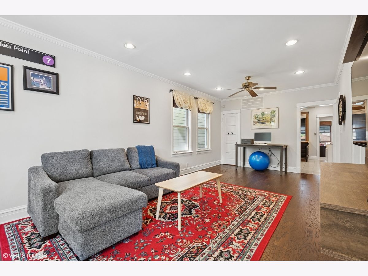 Charming 4-Bedroom + Den /3.5 Bath w/ Family Room Single Family Home in highly sought after North Center neighborhood in Coonley School District! This beautiful home features hardwood floors, an updated white kitchen with stainless steel appliances, updated bathrooms and 2 laundry rooms (2nd floor primary closet & basement). First floor features 2 small bedrooms, a full bath, living room, dining room, kitchen & rear family room +1/2 bath. The Second floor features 3 full bedrooms, 2 full baths (1 just updated with a large soaking tub & separate shower) and large primary bedroom with a huge walk-in closet w/ laundry in the primary closet. The basement features a large rec. room and a 2nd laundry room. Private back yard, large deck and a 2-car garage. Fantastic location on a quiet, tree-lined street close to public transportation, shopping, restaurants, parks, schools & More!