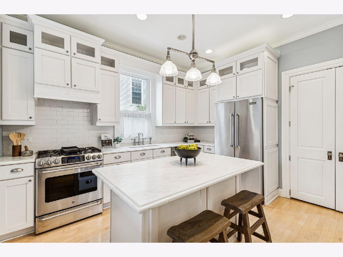 The Ropp-Grabil House is a true piece of Chicago history. Built circa 1871, it was part of the first wave of development in the Irving Park neighborhood. Designed in the Italianate style, the home features oriel windows, bracketed eaves, and a distinctive cupola. Meticulously restored, it preserves its original grandeur while seamlessly integrating modern amenities. Nestled on a lushly landscaped 50' x 155' lot, this residence offers a private retreat surrounded by mature trees and serene gardens. Featured on the Old Irving Park House & Garden Walks, it stands as a testament to architectural preservation. Inside, soaring 10-foot ceilings, 8-foot arched windows, intricate moldings, and pocket doors define the formal living and dining rooms, where a fireplace enhances the historic charm. A first-floor bedroom and full bath provide versatility, while the gourmet marble/stainless kitchen (2016) delivers modern luxury. The second floor boasts four spacious bedrooms, a rarity for a home of this era. The third-floor attic, complete with a cupola and breathtaking 360-degree views. The fully finished lower level (2018) includes a rec room with wet bar and full bath, perfect for entertaining. Recent upgrades include new electrical (200 amp), plumbing, GFA/Central Air and an irrigation system. The heated 2.5-car garage, recently upgraded and wired for EV charger plus two additional parking pads, complete this exceptional offering. Located in the heart of Old Irving Park, enjoy convenient access to top-rated Disney II and Belding schools, Independence Park, Smoque BBQ, Eris Brewery, Old Irving Brewery, the Blue Line, Metra, and expressways.