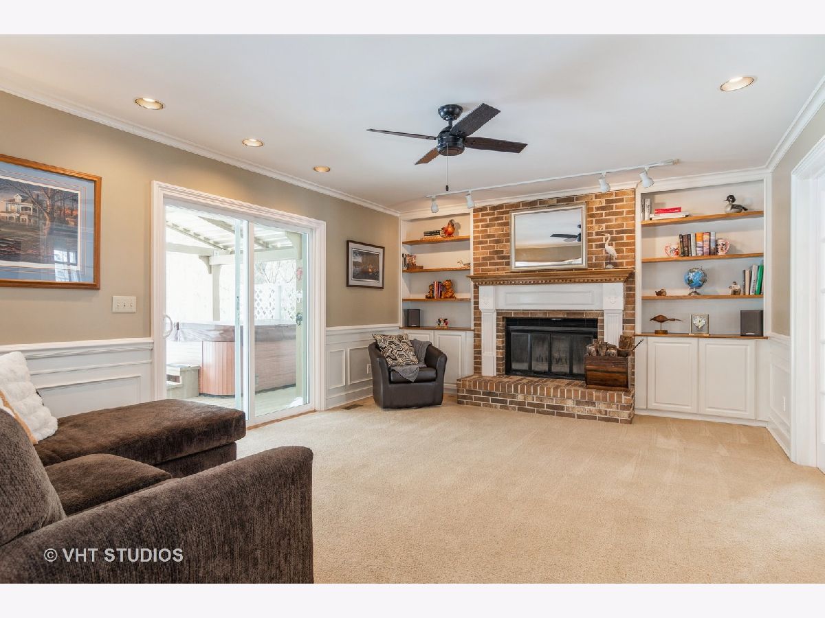 Spectacular, park-like yard with beautiful evergreens & other mature trees. One of the largest, most private lots in the subdivision at .46, smaller portion of yard fenced, already a section for gardening, wooden deck, brick paver patio, flower beds, shed, gorgeous landscaping. This home has great curb appeal with many upgrades inside and out. Large front porch to sit and relax. Front foyer with coat closet. Formal dining room, hardwood floor, new ceiling light, crown molding. Formal living room, glass french doors to family room, crown molding. Family room, open to the kitchen, highlighted by the brick front, wood burning fireplace, built in bookcases, glass doors, white mantel, accent lighting, wainscoting, with direct access to spacious deck. Kitchen, bay window gives extra space for eat in area with views of the back yard, island has accent basket nooks and wine rack, pantry cupboard, stainless steel appliances, gas stove, built in microwave, corian counters with integrated sink, window over sink looking out into back yard, access to garage. Master bedroom is spacious, walk in closet, great views of the back yard. Updated master bath, '18, walk in shower with cultured marble surround, that has a seat and niche, glass doors, IKEA cabinet, ceramic tile, extra cabinet space with medicine cabinet. 2nd floor bathroom, tub/shower combo, dual sinks, medicine cabinet, ceramic tile. 3 other good size bedrooms. Finished basement, plenty of room for ping pong/pool table, bar or exercise space, egress window, half bath, wine cellar closet, under stair storage and ample built in storage in unfinished portion, wet sink and cabinets. Updates include: '08 roof (25yr shingles), '15 deck, '16 vinyl siding, '17 furnace, a/c, H2O heater, humidifier, 2nd floor bath '18 master bath '19 kit frig, d/washer, resurfaced driveway, '20 oven, microwave, sump pump. This home is exactly one mile to downtown St. Charles. The Timbers has one entrance/exit. Fun social activities for all ages! Walk to Pottawatomie & Timber Trails Parks. Fox River boat launch & 4th of July fireworks are just blocks away at Boy Scout Island.