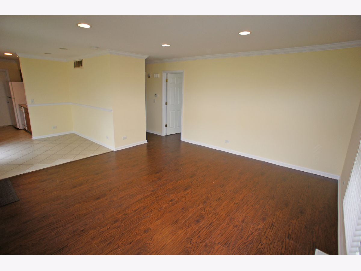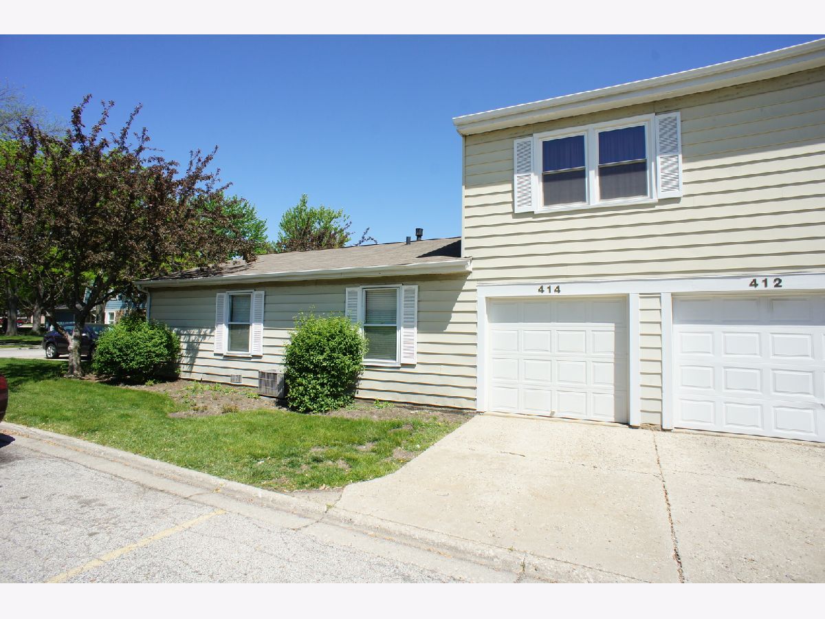 Updated two-bedroom, first floor ranch townhome-no stairs. Wood laminate floors in the living room with recessed lights and crown molding. Dining room with ceramic tile floor and recessed lights. Updated kitchen with ceramic tile floor. All new doors, energy efficient windows, and painted in contemporary colors throughout. Spacious bedrooms with ceiling fans and wood laminate floors. Good size closets too. Updated bathroom with ceramic tile floor and tub/shower surround. Laundry in-unit. 1-car attached garage plus extra parking space #414. Community pool and park. Close to Metra, restaurants and shopping. Great schools!