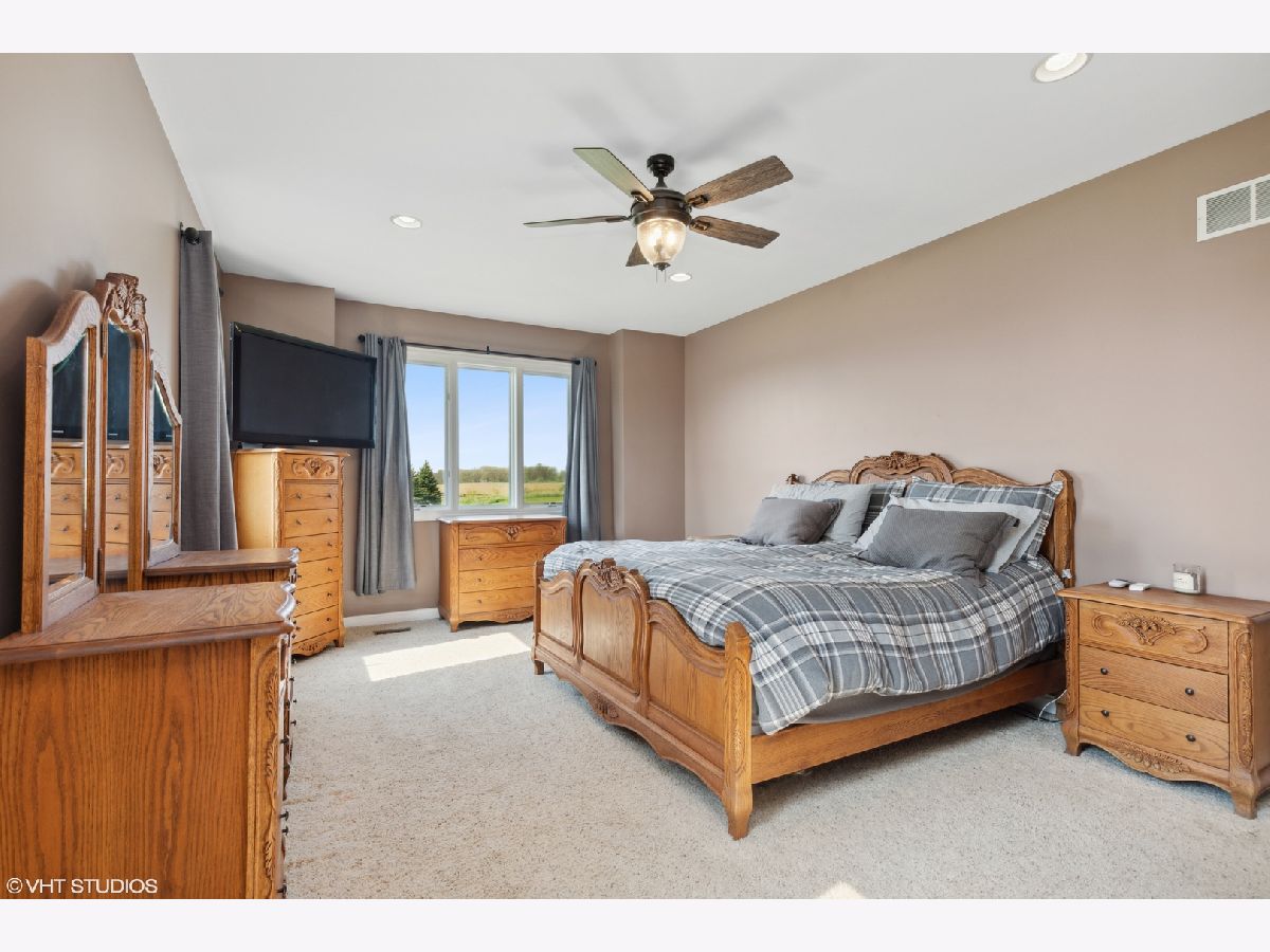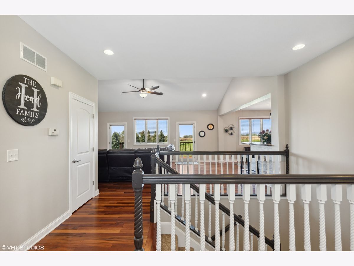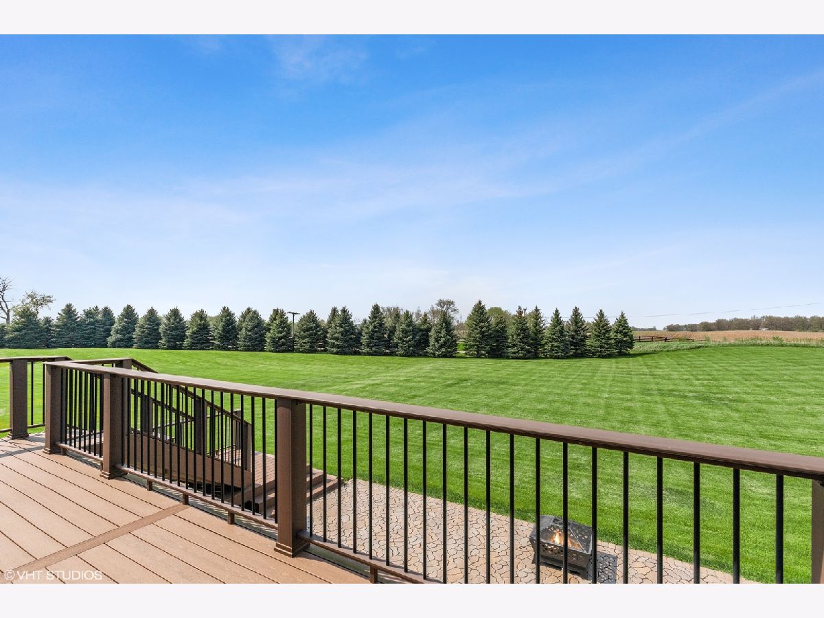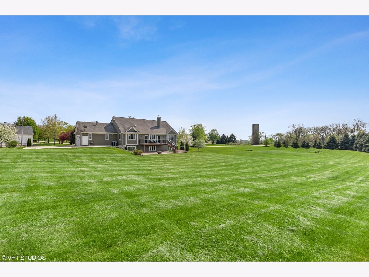 It's the best of both worlds......country living yet so close to everything you could ever want or need! Gorgeous, wooded lot is surrounded by a living wall of Spruce trees and fruit trees. Beautiful finishes with so many upgrades! FP Mantel 100 yr old barn beam. 650' brick patio. Timber Tech composite deck and railing. Ring doorbell. Views from a 2-acre lot has all the amenities. Public water (NO private well), and street lights! Easy access can be found to I-90, Rte 47, Rte 20 and Rte 72. There are numerous parks and forest preserves all within a few miles. This Craftsman mountain style ranch is for the savvy buyer. The covered porch and mission style front door welcome you. Foyer enters great room with hardwood and cultured stone fireplace. Open kitchen with birch cabinetry, hard surface countertops and porcelain tile. Newly expanded 1st floor laundry room with storage shelves and pantry. 1st floor master with his and her walk in closets and new spa like bathroom. 4 stunning full bathrooms updated (2021) Pottery Barn style . Full English basement has 9' ceiling family room with rough in for bar. 2 large bedrooms each with private bath. Plenty of storage space or for further expansion. Oversized garage is extra deep. Driveway has been expanded. Timber tech composite deck and brick paver patio.