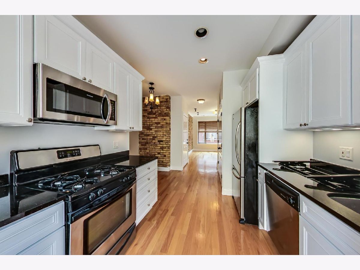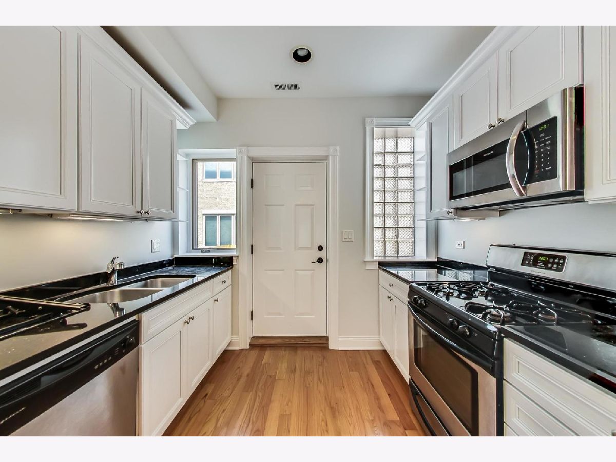 SOLD BEFORE PRINT - Beautiful updated white kitchen with stainless steel appliances and granite countertops in this Buena Park sunny penthouse 2 bedroom, 1 bath condo in great courtyard building. Unit is freshly painted with hardwood floors throughout, in-unit laundry, exposed brick and huge deck. Gated secured parking and storage included. Just a few blocks from the Sheridan Red Line stop and Wrigley Field.