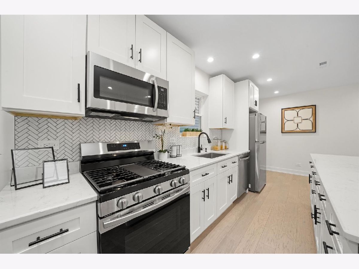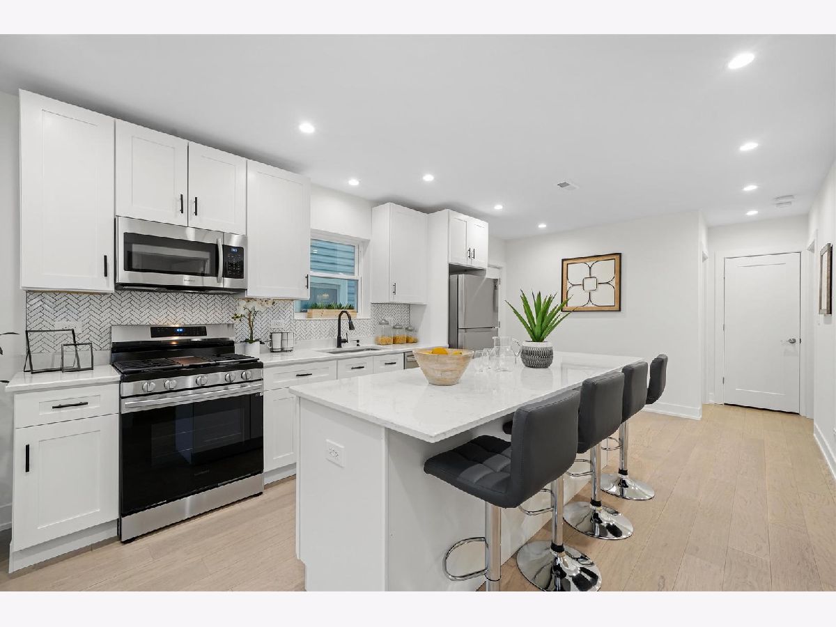 Located on a lush, tree-lined block in Chicago's northwest Irving Park neighborhood, you will find 4146 N Drake Avenue, a stunning black & white Hardie board two-unit building newly rebuilt in 2022 with custom black ClimateGuard windows. This property offers the comfort of a family home and the income of a short or long term rental unit, as well as the possibility of related living. Explore the 3-bedroom unit as you walk on the marvelous white brushed engineered hardwood floors into the spacious and bright living room. A few steps ahead you will encounter the white kitchen with custom cabinetry, Calacatta lumos quartz countertops, and a kitchen island that will sure to have your guests in awe. Next, you will visit the capacious light-filled second unit that boasts an open-concept floor plan throughout: a homeowner's dream for entertaining! Marvel over the luxe finishes that complete the kitchen. Meticulously designed with custom 42" cabinetry, a large white quartz waterfall kitchen island that seats 4, and the stylish matte black appliances. This floor also features 2 bedrooms, ideal for a guest room and a nursery or a large office. As you walk up the stairs to the 3rd and 4th main bedrooms, take note of the custom black railings, the 10-foot ceilings, and the Kavala white hexagon porcelain tiles in the bathrooms that complete the third level. This property is truly picture perfect! Outside, discover a spacious backyard with a 2-car garage and a "party door", perfect for fun summer cookouts with your guests. Minutes away from Horner Park, the expressway, and numerous restaurants, this is the perfect home for you!