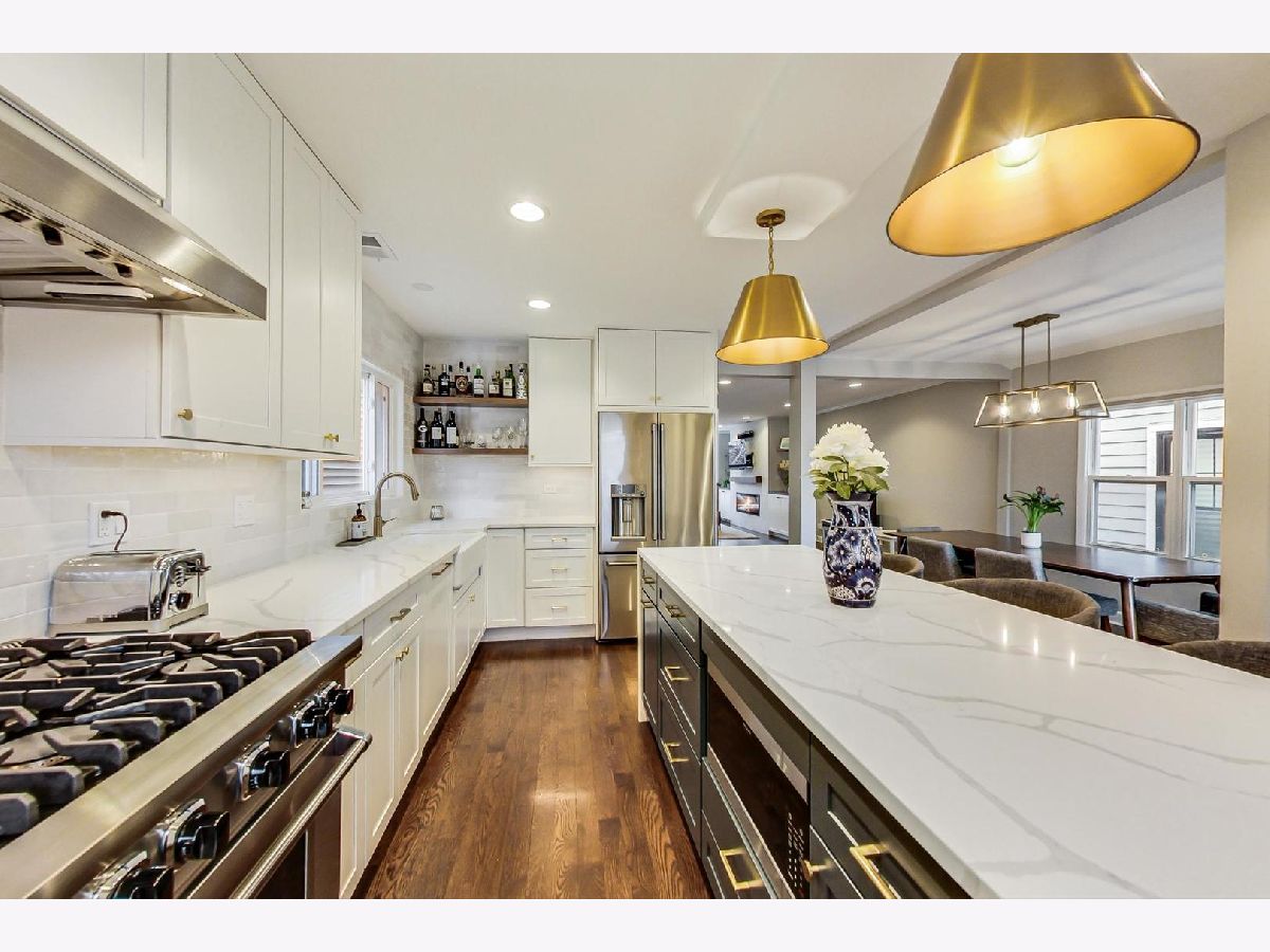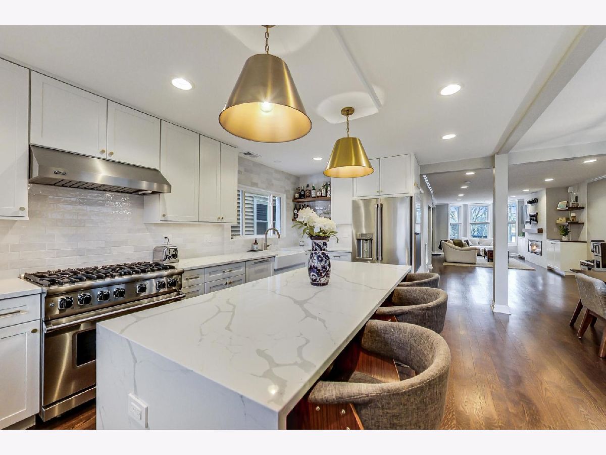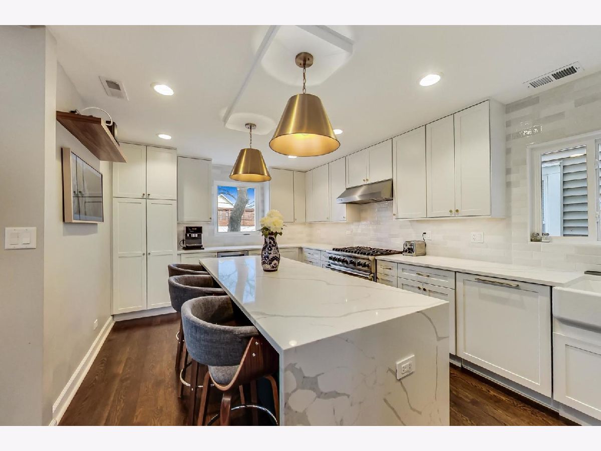 **Accepting Backup Offers***MAJOR RENOVATION IN 2021* Highly upgraded single-family home located in the desirable Coonley School District and vibrant North Center neighborhood! This home features 4 bedrooms plus den and 2.1 baths and was recently renovated with thoughtful design and decor. Meticulously maintained throughout, the open floor plan features new hardwood floors in the main and second level and new light fixtures throughout, including recessed lighting with dimmers on the main floor. The living room offers a new, extra wide fireplace, beautiful custom built-in cabinets, and shelves with shiplap design. The bright, open dining room is adjacent to the expansive kitchen boasting brand new kitchen appliances including Viking 6-burner range and Viking range hood, GE Cafe refrigerator/freezer, GE wine fridge and Bosch dishwasher. Additional features include quartz countertops and ample custom cabinetry. The updated powder room completes the impressive main level. Head up to the second level where you are greeted with an abundance of light from multiple skylights, showcasing the vaulted ceilings. Two large bedrooms including a primary suite featuring Elfa closet shelving and a serene, spa-like bath with skylights, dual vanity with large mirror, separate walk-in shower with frameless glass door, and deep, jetted soaking tub. Lower level features a large den that is perfect for gathering or a home office, as well as 2 additional bedrooms with excellent storage, and a laundry room with sink and side-by-side, brand-new, full-size GE washer/dryer. Additionally, the home features a 2-car detached garage and 3 outdoor spaces; an inviting front deck, a backyard oasis with brick paver patio, custom landscaping and lighting, and a large tree providing shade to the backyard, and a deck off the dining area with a gas line for grilling. Additional upgrades include 7 newly installed windows and 13 new smart window treatments, high efficiency hybrid water heater, Hot Water Recirculating Pump, 2 sets of AC/furnace units (2-zoned in 2020) and a new wooden fence. Freshly painted throughout. Smart security system offers 24/7 monitoring with smartphone access and doors have smart locks. This inviting home sits on a quiet, tree-lined street in a wonderful North Center/ Lincoln Square location. Jewel and Starbucks are both within walking distance and just a short distance to Trader Joes, Lincoln Ave restaurants/shops, North Center Farmers Market, public transit (Brown line el-stop), Metra, Coonley School and Wells Park. This vibrant, yet quiet neighborhood offers Friday gatherings in the summer and loads of neighborhood events and block parties. Must see!