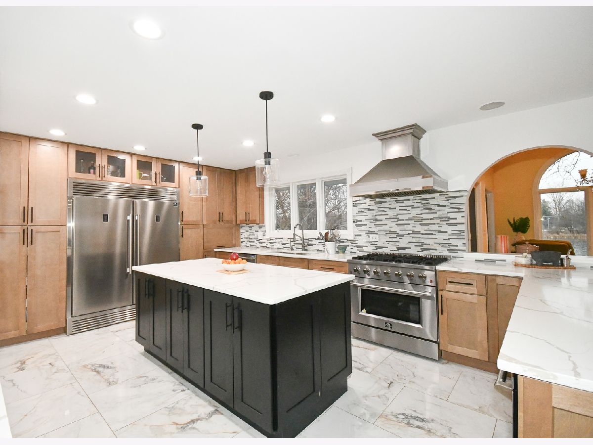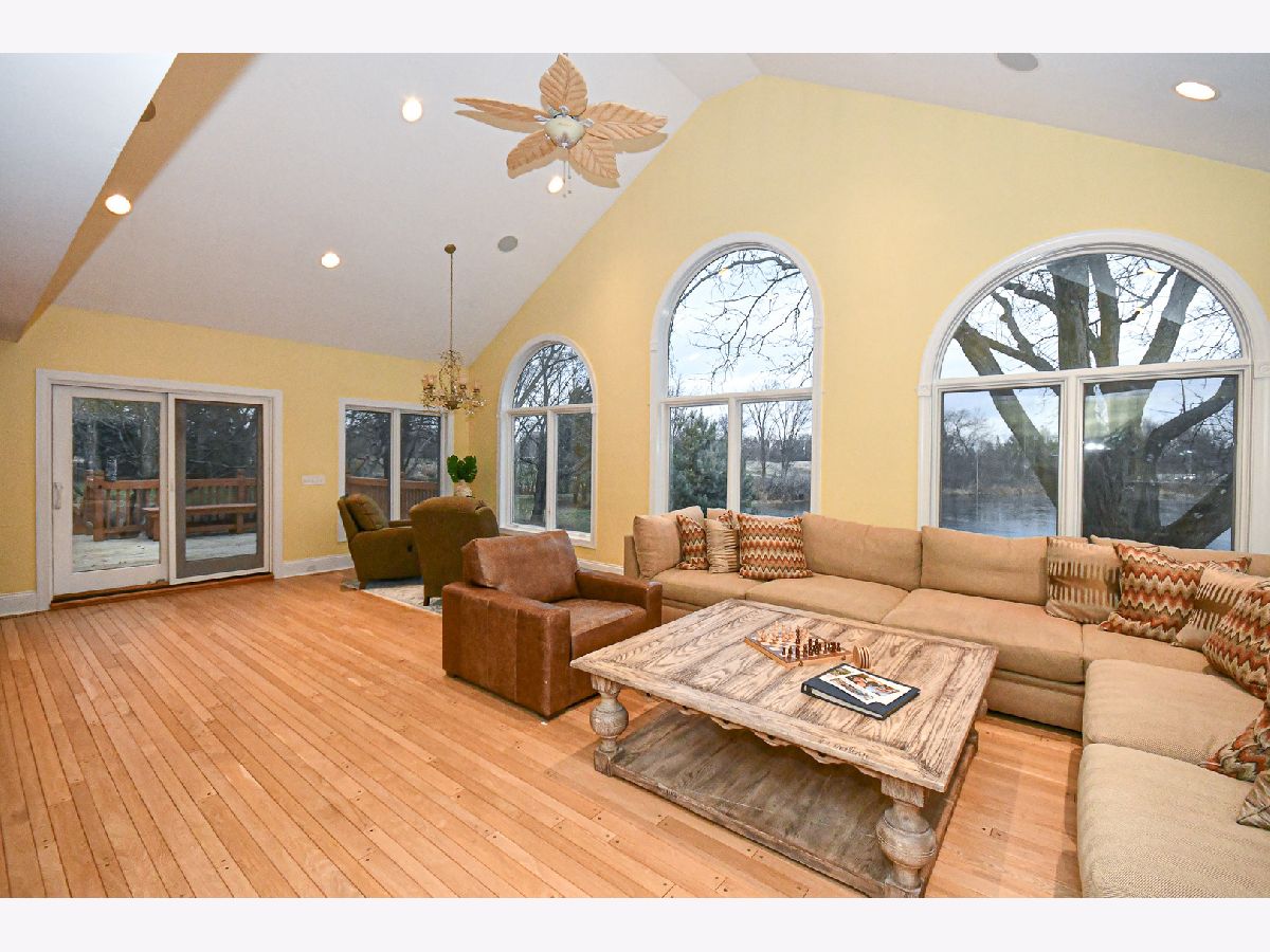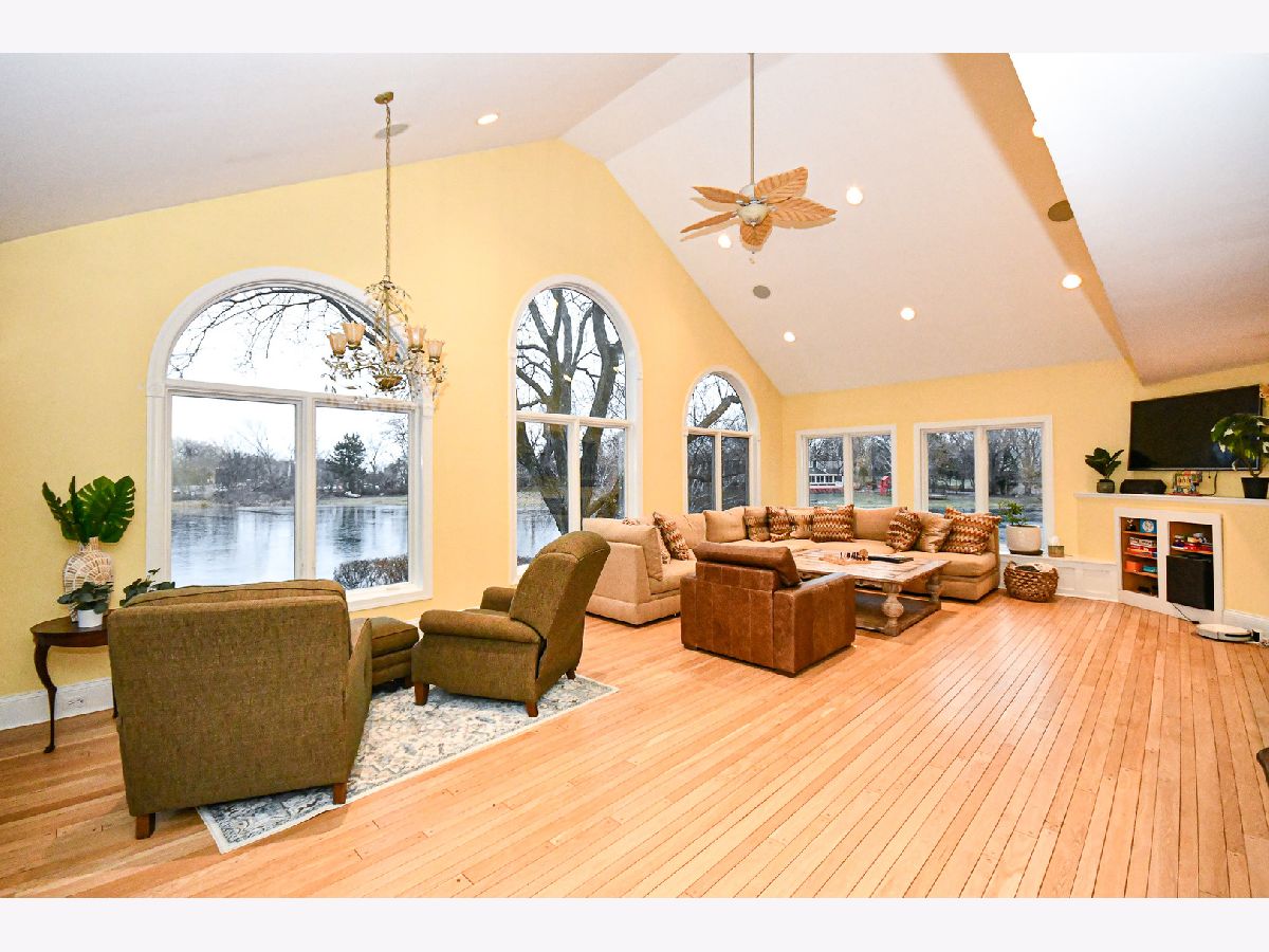 Experience LAKESIDE LIVING at its finest with this stunning 2.6-ACRE LAKEFRONT PROPERTY. Overlooking a serene lake and featuring its own HEATED IN-GROUND POOL & SPA. This home offers breathtaking water views and is just DOWN THE STREET FROM DOWNTOWN LONG GROVE's shops, parks, and restaurants. KEY FEATURES: NEW CHEF'S KITCHEN - cost 80,000 with quality custom cabinetry, quartz countertops, large island, high-end Forno appliance package includes a commercial range/oven, Sub-Zero refrigerator, dishwasher and stylish ceramic tile floors. NEW PAINT in dining room, kitchen, 5th bedroom and bath, added new recessed lights. BRAND NEW ROOF DEC '24 cost 35,000 . NEW ALUMINUM FENCING cost 18,000, EXPANSIVE LIVING SPACE: A 2008 home addition added 1,600 sq. ft. creating a total of 6,200+ sq. ft. over three levels, all with lake views. There are 5 bedrooms, 4 full baths, and an office. Also there is an option on the main floor to turn the study into IN-LAW SUITE with an adjacent full bath and walk-in closet. BRIGHT & OPEN DESIGN: The main level features an open floor plan, a family room with two story high vaulted ceiling nicely connects to kitchen and eating area and with its arched windows overlooking the lake. Living room comes with a two story vaulted ceiling, skylights and a view to the open second floor walkway. HARDWOOD FLOORS THROUGHOUT. Master suite includes a massive walk-in closet, two other closets, private bath and lake views. FINISHED WALKOUT BASEMENT: features recreation areas, a wet bar, 5th bedroom, Office and access to the pool, patio, and lake-ideal for a separate living area. OUTDOOR OASIS: Enjoy the pool, patio, and fully wired sound system throughout the home and outdoor spaces. Fishing and boating is allowed since a large portion of the property does extend into the lake. UPDATED DECK cost 10,000. HOME WARRANTY. PRIME LOCATION: Located a block from downtown Long Grove in a quiet cul-de-sac neighboring Twin Orchard Country Club and close to major roads. Long Grove hosts 10 community festivals/fairs every year. Located within the prestigious Stevenson High School District 125 and just down the street from Elementary/Middle School District 96 and the Grove CC. This luxury property combines modern upgrades, spacious living, and natural beauty. Don't miss your chance to own this lakeside paradise! NOT in flood zone. NO HOA. Quick close possible, move in ready!