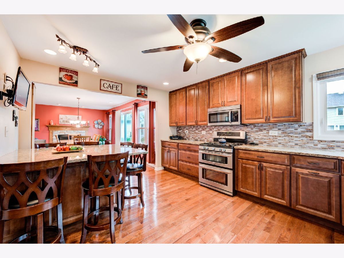 This lovely Mayfair model single family home is a two story with, partially finished full basement, in Bradford Place subdivision in Bolingbrook has much to offer. The main level consists of living room with high ceilings, an office that is the perfect zoom room with a lots of natural light from the large windows facing the yard, a half bath and laundry on the main level. The kitchen with hardwood floors granite counter tops, glass style backsplash, stainless steel appliances, island that offers great work space and eating area. The dining room is just off the kitchen with hardwood floors, fireplace for chilly nights and has sliding glass doors that lead to the patio and yard. The Upstairs has 4 bedrooms and 2 full baths. The primary bedroom has its own bath with raised double bowl vanity, generous closets and the bedroom is large enough to fit a king size bed comfortably. The other bedrooms are perfect for queen size beds and there is a common bath and linen closet. The basement is partially finished with a large family room, utility room, storage area and a secure storage space. The yard is great for large gatherings, growing a vegetable garden, for catching some sun or building a snowman. Come see this lovely home and all it has to offer.