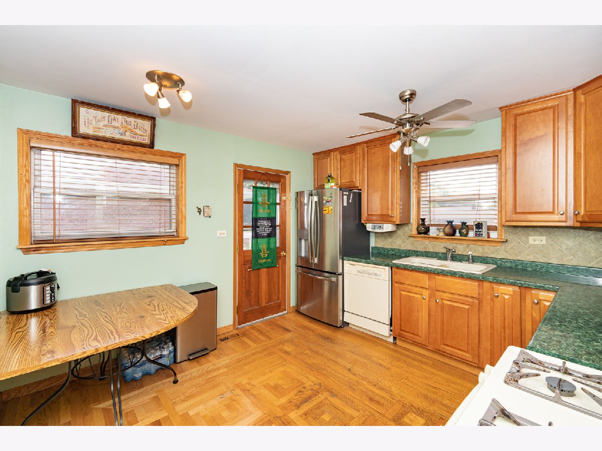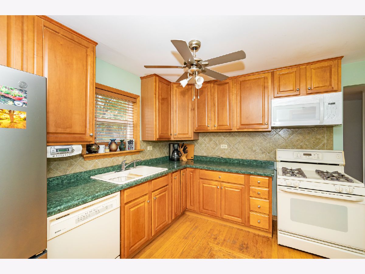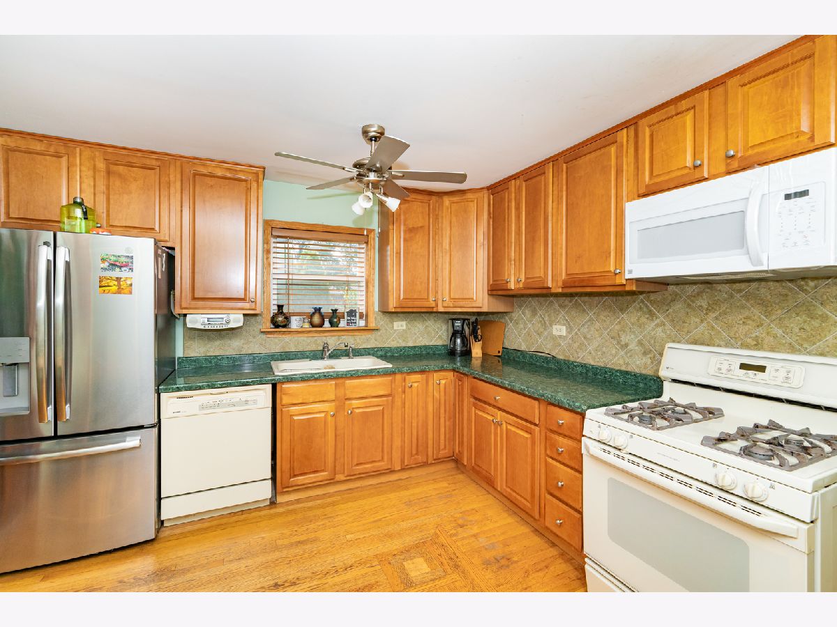 Great Place To Raise Your Family or Entertain Your Friends and a wonderful opportunity to own this solid all brick 3 bedroom, 2 bath raised ranch in move in condition in a prime Wheeling residential location with a surprisingly extra large rear yard, (double the width of the front yard). It's a gardener's dream, the spacious yard is equipped with rose beds and vegetable garden areas. Lot also has a large storage shed, and an extended 2.5 Car Garage with extra storage/workshop room in back. The home has Harwood Floors throughout. Main level has living/dining area, large eat-in kitchen, two bedrooms and a full bath with luxurious whirlpool and walk-in shower. Lower level has 1 additional bedroom and another full bath with a shower, plus Laundry/Utility Room with ample extra storage space, along with a large Family Room with direct access to the back yard via the rear stair which leads to the large rear concrete patio and an additional brick patio equipped with a fire pit, great for outdoor entertaining of family and friends. New Roof - Home and Garage (2020), New Ceramic Title - Lower Level (2020), Newer Furnace (2019), Newer Privacy Fence (2018), New Microwave (2021), Newer Refrigerator (2019). Along the side of the home is a long driveway leading to the detached garage. (This driveway can fit an additional 6 cars, when you're entertaining). This beautiful home with spacious outdoor entertainment and gardening area is surrounded be a new vinyl privacy fence and is located on a quiet residential street. It is an Excellent location: Walk to the 100 Acre Wheeling Park District's Heritage Park, Close to Schools, Metra station, Chicago Executive Airport, Highways, Shopping, Great Restaurants, Coffee Shops and all the amenities downtown Wheeling has to offer. On top of that this property has Low Real Estate Taxes!!! Walking distance to Heritage Park, Walt Whitman Elementary School, and Oliver W. Holmes Junior High Schools. Part of Wheeling District 214 High School District.
