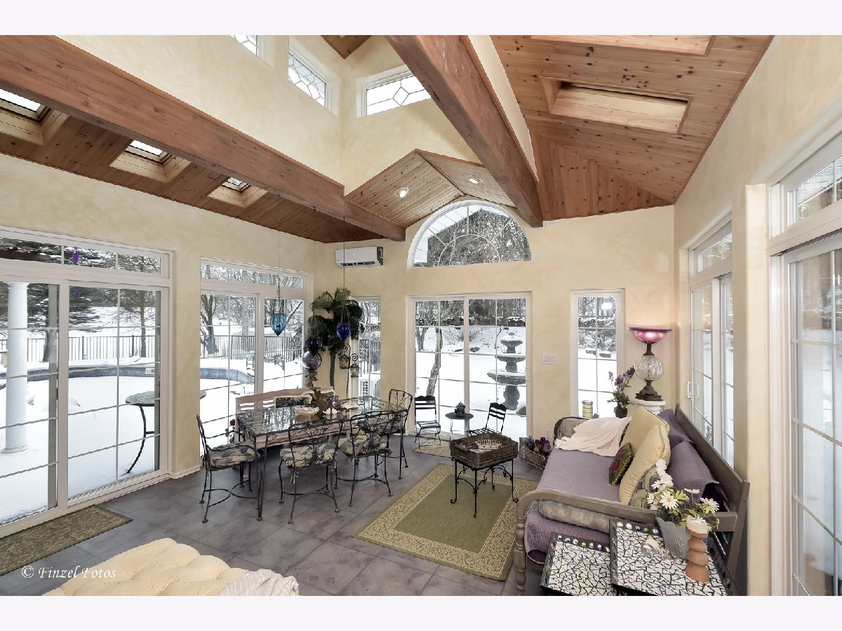 Original owner, custom built, 1st time on market!! Spacious and meticulously maintained home offers 4 bedrooms, 3 full bathrooms, and a fantastic heated sunroom with access to in-ground pool with large patio. Open concept great room consists of living room, dining room and kitchen, all with beautiful hardwood flooring. Living room and foyer have 2-story ceilings separated by a wide hallway above that leads from the loft area with built-in cabinets and skylight. Living room features a 2-sided wood-burning fireplace with other side open to the sunroom, Palladian window topped French doors and one-of-a-kind chandelier. Kitchen features high-end custom maple cabinetry, solid granite farmhouse sink, granite countertops, large island with room for breakfast bar, 48" professional range with custom built hood, wine fridge, drawer microwave, & large walk-in pantry. Additional bar-height countertop on living room side offers more seating. Great for entertaining! Custom cabinets continue into dining area surrounding a charming built-in window seat. Spacious vaulted first floor master suite offers hardwood floors and a vanity area in separate toilet and spa tub/shower area. Master suite also includes a sitting area separated by French doors, with large skylight, Palladian windows, and a patio door leading to the swimming pool. Spa-like master bath includes marble countertops with under-mount sinks and dual vanities. Great oversized tub/shower with tile surround. Large walk-in closet/dressing room. Updated bathrooms with granite countertops and under-mount sinks. Sunroom includes stained concrete flooring, 2-sided fireplace, skylights, and 5 sliding doors to the patio. New split HVAC unit heats and cools the sunroom. Partially finished basement with rec room, dry bar, and tons of built-in storage. In-ground pool includes new pool liner in 2019 and large fenced bluestone patio and pergola. Pool is surrounded by beautiful perennial flowers and a small water lily pond with bridge. Additional bluestone patio off of the dining room. Solid oak panel doors throughout. Dual-zone HVAC. Energy efficient windows. Recessed lighting. 3 car garage. Exterior features a professionally landscaped one acre homesite, smart-siding, architectural shingles, and a large storage shed.