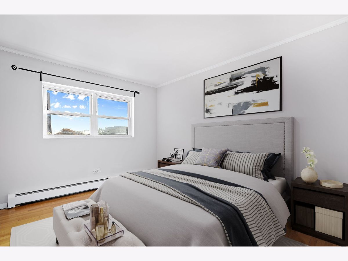 Third Floor unit features updated eat-in-kitchen with stainless steel appliances, subway tile backsplash, and contemporary countertops. Two generous bedrooms and hardwood throughout. Large storage space located on same as unit. Assigned parking included (#14). Upgrades to the building include new hot water heaters and boiler (2021) and newer roof. Coin laundry included. Close to expressway, public transportation, downtown Oak Park, shopping and restaurants.