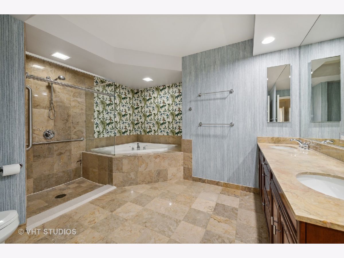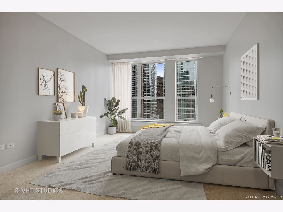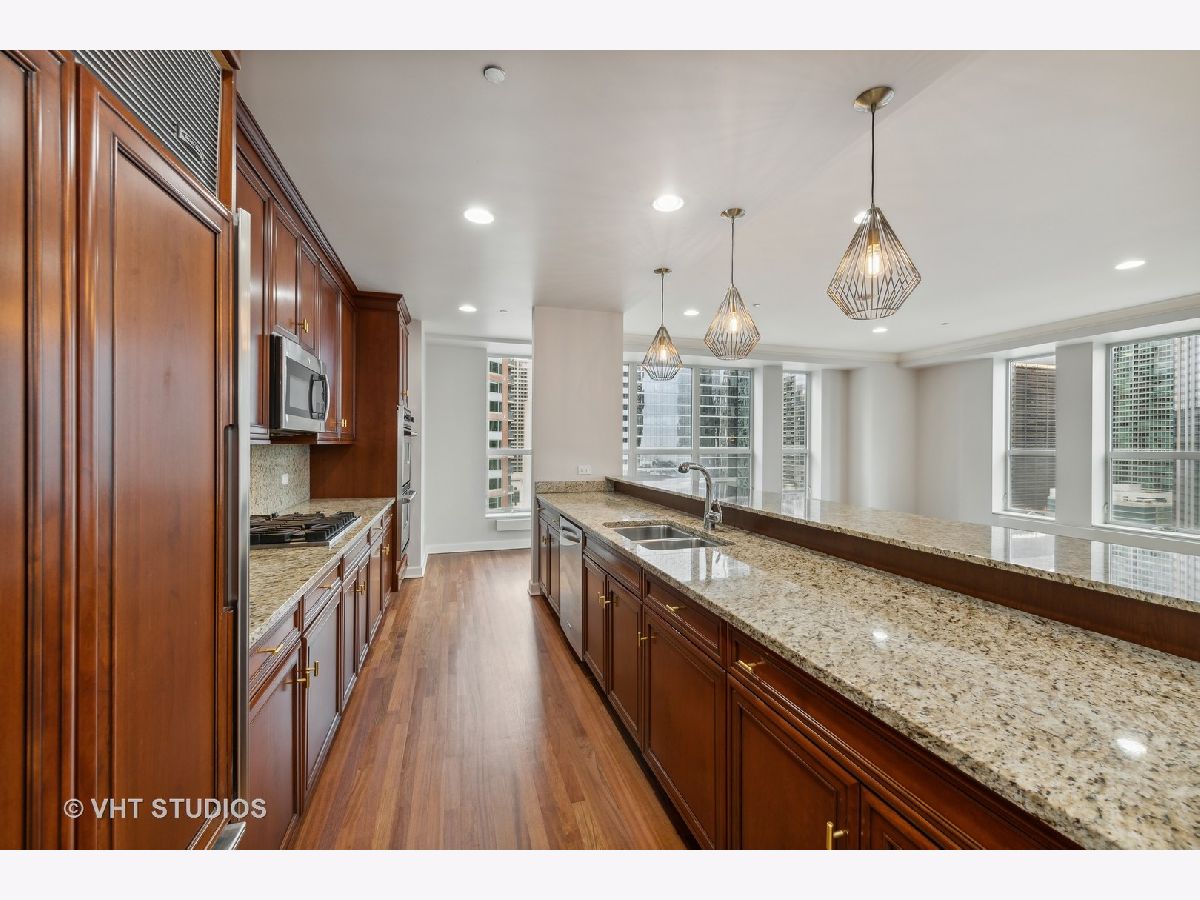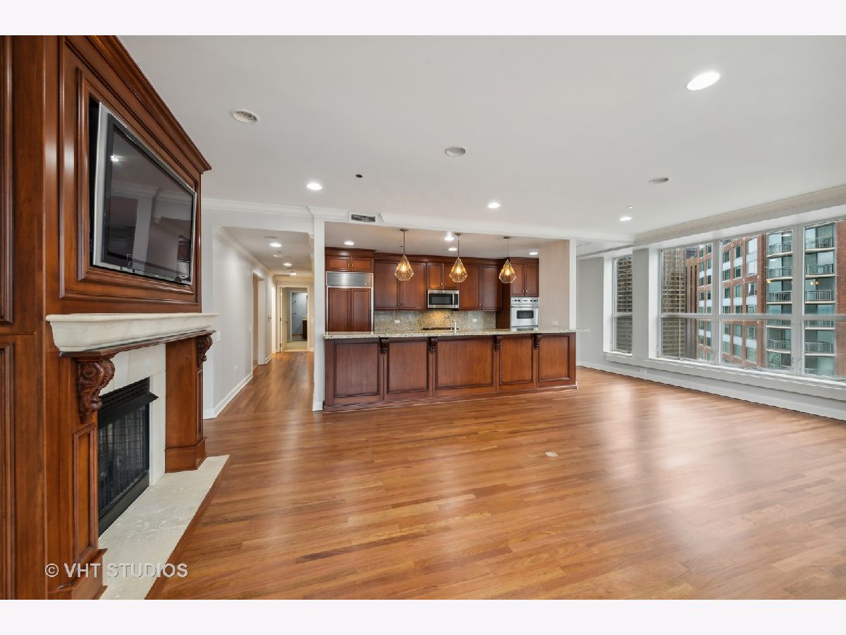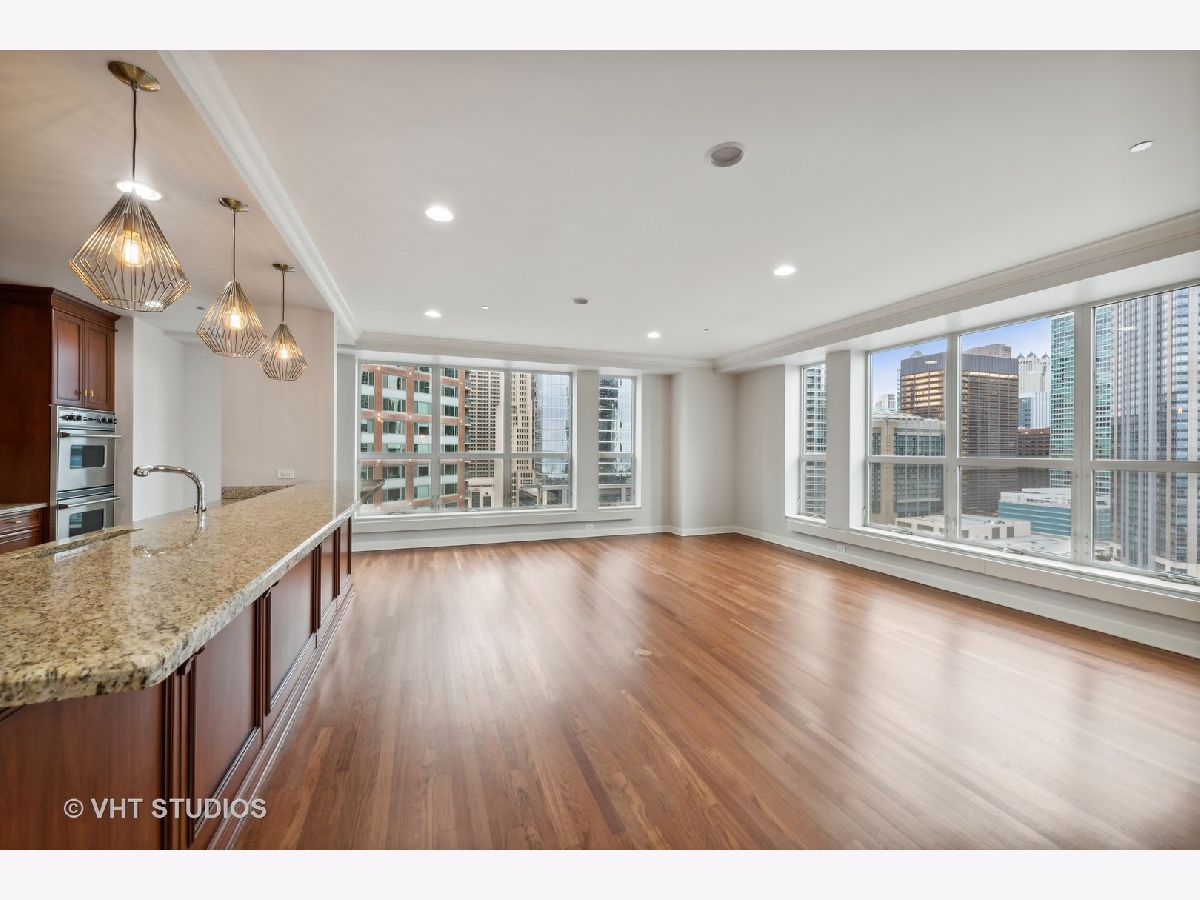 Refreshed and ready for you! Stunning home located in Streeterville's premier Riverview with direct access to the Riverwalk in downtown Chicago. Those seeking an extra large home will be delighted at this opportunity to live in comfort in this corner residence with walls of oversized windows flooding the home with natural light. Offering approx. 3,500 square feet of living space in a split floor plan layout with spectacular north city views, partial east lake and south river views plus 2 private balconies. This newly refreshed home has gorgeous refinished wood flooring in living areas, new lighting, neutral paint, and is customized with designer touches thruout. The welcoming entrance foyer leads you to a large living/family room with an enclosed two-sided fireplace that separates it from the formal dining room. The open concept kitchen is perfect for entertaining and features Subzero, Viking, KitchenAid appliances, granite, counter seating for 5 and a breakfast nook. The dining room can accommodate large- scale seating, has a butler's pantry and direct access to the north balcony to relax and take in the stunning city views. The primary suite is enormous with a wall of windows and separate from the other bedrooms. This suite offers a private sanctuary with its large full bath featuring a whirlpool tub, separate step in shower, double vanity and bidet. Who needs dressers with a wall of custom finished built-ins affording incredible storage plus a walk in closet! And there's plenty of room for a sitting area to take in the city and river views. The very large second bedroom has a huge walk in closet and it's own en-suite full bath, the third bedroom is generously sized with easy access to the hall full bath. The fourth bedroom is perfect and cozy for your guests and features amazing custom finishes and builtins with access to the west balcony that offers views of the river life and the stunning skyline. This condo lives like a single family home with it's split floor plan and generously sized rooms. Riverview is a professionally managed, full service, amenity filled building with healthy reserves-approx. $2.7M, high owner occupancy, and 24 hr. service oriented staff. First class amenities include event room with access to the sun deck, indoor pool, jacuzzi, yoga room, professionally outfitted fitness center w/high end equipment, men's and women's locker rooms with saunas, fantastic sun deck facing the river, dog run, dry cleaners and a car wash station in the garage. Exceptionally located and within steps to the lakefront activities, Riverwalk, Michigan Ave shopping, the city's best culinary experiences, Whole Foods, coffee shops, AMC Theater, Northwestern Hospital Campus, Target and easy access to Lake Shore Drive. Two garage parking spaces included in price! Welcome home!