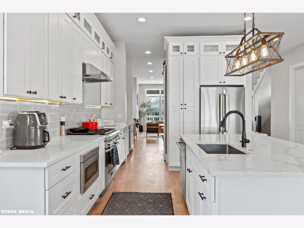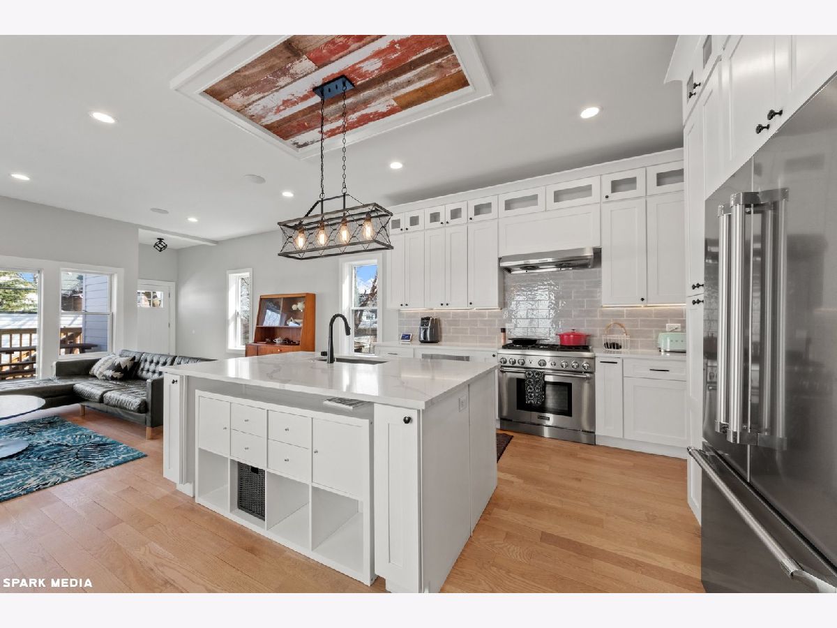 2019 new build (with many updates since!) and nearly 4000 sq feet on an extra wide 37-ft lot. Design features modern and farmhouse elements elegantly blended for very comfortable living just 15 minutes from downtown and 20 minutes to ORD. Open concept first floor features both casual and formal living and dining areas, chef's kitchen with butler pantry, 2 fireplaces, half bathroom and a mud room and a large deck right off the living room. HUGE luxury master with vaulted ceilings, his and her closets, ensuite with heated floors, spa shower and bath, Toto washlet, skylights. Two more bedrooms with Jack and Jill bathroom and laundry room are all on the second floor. Light-filled lower level has nine foot ceilings, 2 additional bedrooms, luxury bath with walk in shower, large and bright rec-room with a wet bar, storage, additional laundry hook-ups, and separate exit to backyard. Large deck for entertainment, barrel sauna, beautiful back and side yard with herringbone pavers, raised garden in front, and 3 car garage (with room to build roofdeck) complete this dream home. Centrally located between beautiful Independence and Horner Parks, Blue and Brown lines, and easy access to expressway and makes living and commuting a breeze (assuming you ever want to leave!). Two blocks from Montrose and Irving entertainment/dining and just minutes from Logan/Avondale/North Center entertainment districts. Quiet tree-lined street with excellent neighbors and new homes going up every day! No need to move to the suburbs to get the big beautiful home you are looking for!