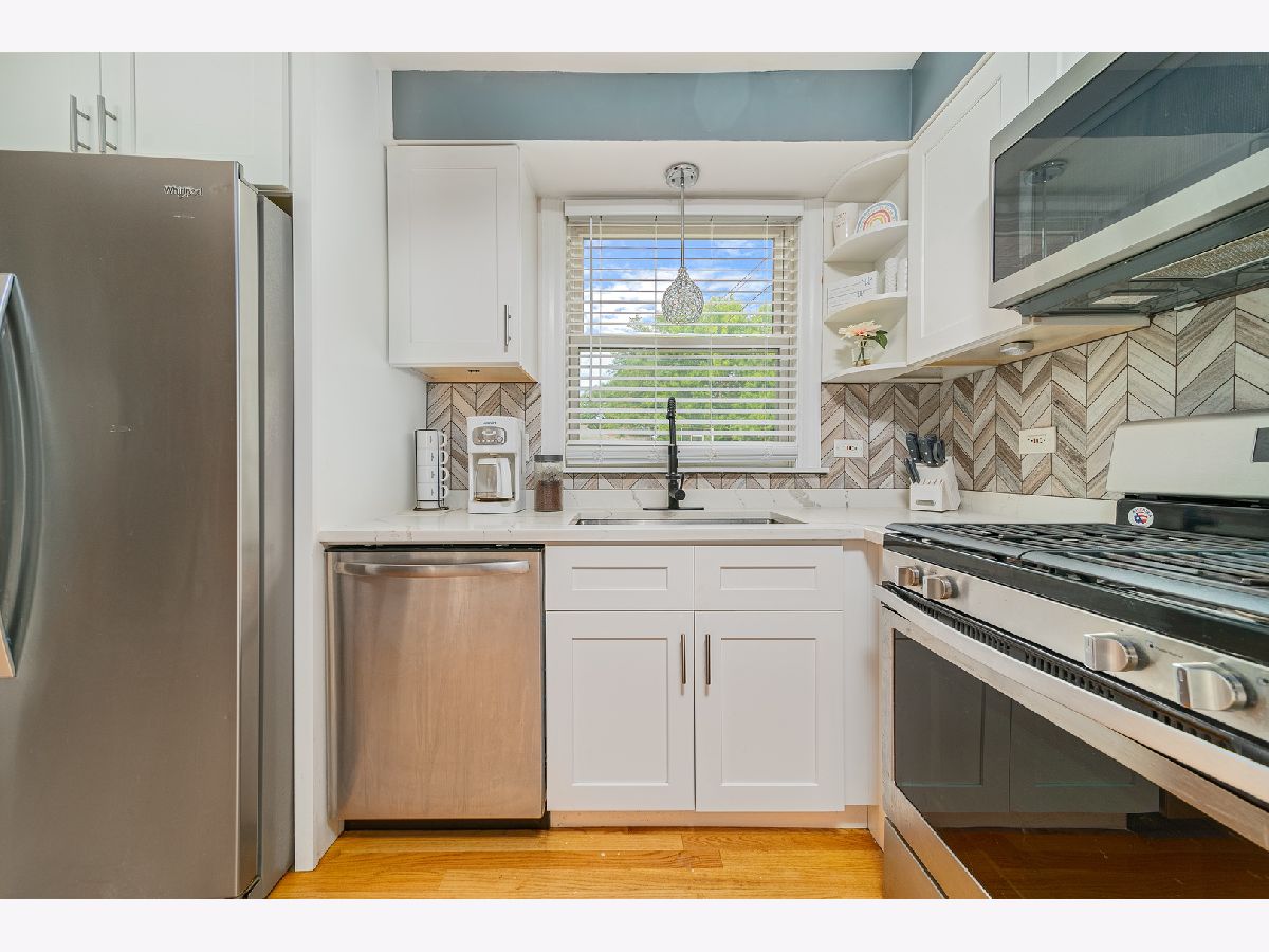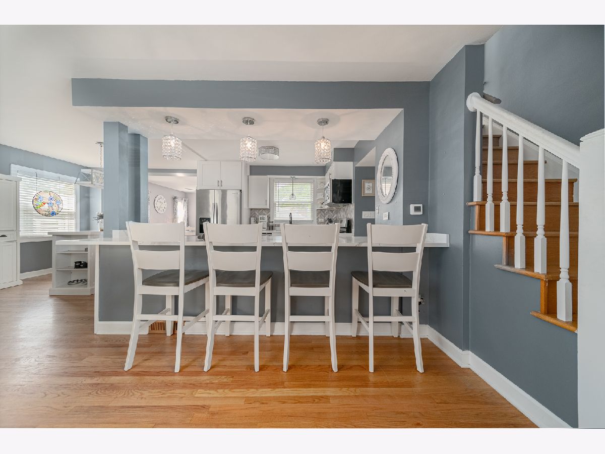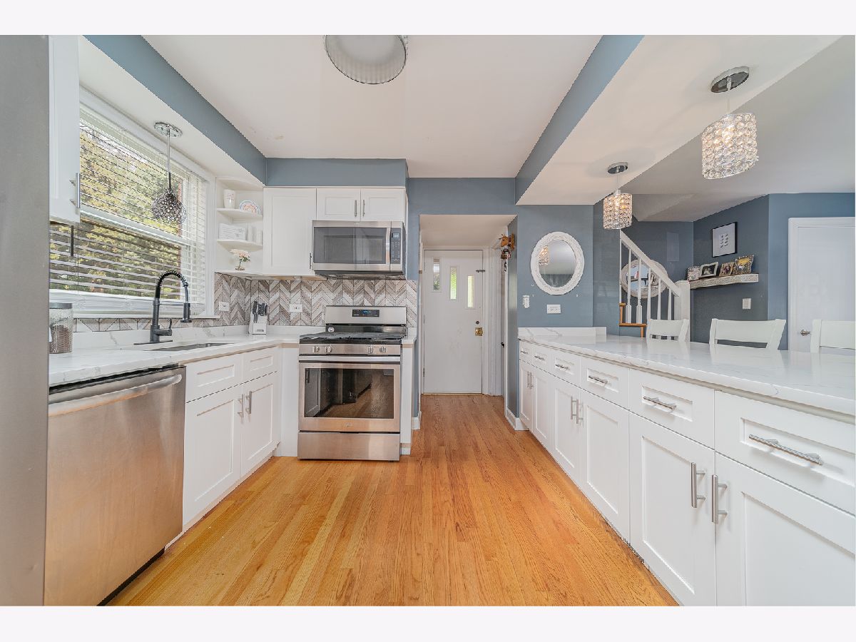 This is the home you have been waiting for! Beautiful, renovated Georgian with family room addition next to Schiller Park Woods. This home has been designed for relaxing and entertaining. Home boasts an open floor plan with hardwood floors throughout. You will be amazed by the gorgeous, remodeled kitchen with custom white shaker style cabinets, recessed lighting and gleaming pendant lights, quartz countertops, beautiful mosaic backsplash, and newer stainless steel appliances accentuated by an expanded peninsula with room to seat four people! Next to the kitchen is room for an official dining room that allows ample space for everyone to gather. Relax in the spacious and light-filled living room with a bay window or the cozy family room on the main level. Upstairs features four bedrooms, one of them is currently used as an office. Newly remodeled bathrooms! Fully finished basement has a spacious recreation room with a nook perfect for a kitchenette or wet bar. There is also a utility room with ample storage space. Newer Lenox furnace and hot water heater. New dishwasher, and light fixtures. Enjoy expanded corner lot 39 x 125 with privacy fencing, 2 car brick garage with extra parking in front of it. Top-rated Canty elementary school. This quiet neighborhood is nestled between forest preserves to the north and west but is also close to public transportation, I 90/94, and shopping centers. Come and see your dream home today!
