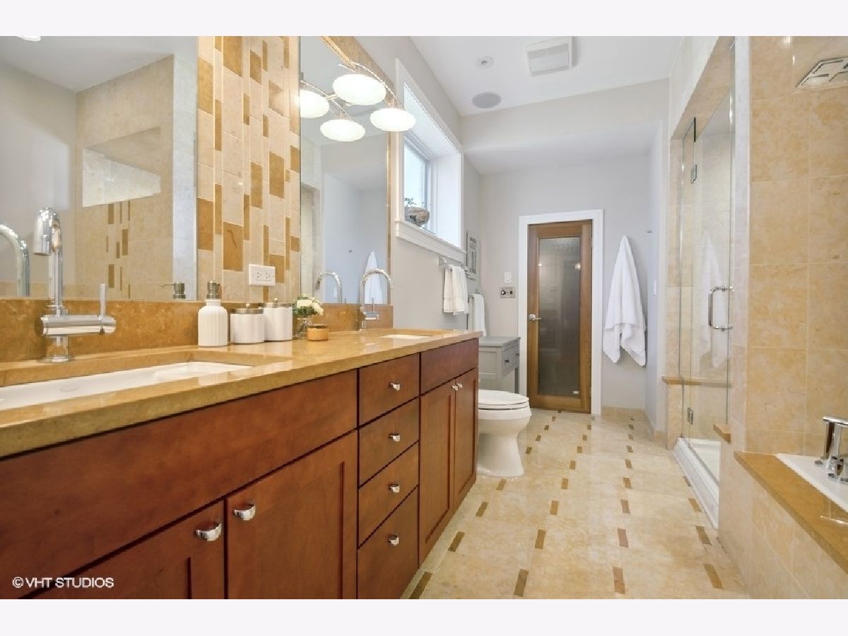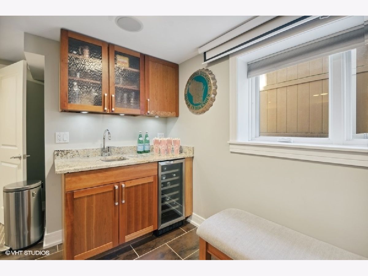 Oversized brick bungalow in Portage Park! This ninety-nine year old house has been beautifully maintained, rehabbed in 2009. It has 4 +1 bedrooms, 4.5 bathrooms, split between three beautiful levels of living space atop two floors of extremely durable Brazilian wood, radiant heat throughout, plenty of light and bright windows and skylights, and extra large closets. The main floor entrance opens into a bright living room that flows back into the dining room, and a large kitchen with stainless steel JennAir appliances, brand new glass cooktop, gorgeous granite countertops and custom made cabinets with an island and built-in table making weeknight dinners easy. Access to the quaint backyard is right off the kitchen, through the sliding doors, you will find a deck and cement patio and two car detached garage. The first floor also features a spa-like primary suite, walk-in closet, and an en-suite bathroom with a double vanity, jacuzzi tub, wall-mount rainfall shower system with six body jets, and a sauna. Upstairs are 3 spacious bedrooms with large closets, 2 bathrooms, and an open sitting area. The basement opens up to a large recreation area that could be used for just about anything! The owners are leaving their ceiling mounted projector and movie screen for all of your movie nights to enjoy with the wet bar and a wine refrigerator, another bedroom with office area, full bath, laundry room outfitted with Speed Queen brand washer and dryer, and storage. Flood control drain tiles, sump pump, ejector pump, 2 zoned HVAC. There is plenty of street parking and just steps away from Dickinson Playlot Park. Close to Metra, CTA Blue Line, 90/94 Expressways, and a quick walk to restaurants and shops at Six Corners.