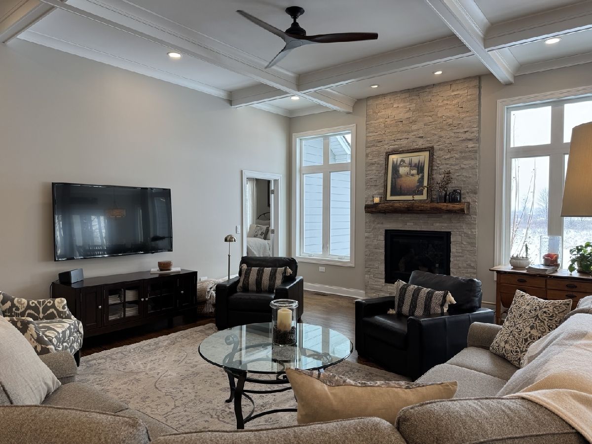 Welcome to this stunning custom-built ranch, completed in 2021 and now "Coming Soon!" This exceptional home boasts an impeccable design and craftsmanship inside and out. The exterior features James Hardie siding and a striking stone facade, all set on a trophy lot that offers privacy with no rear neighbors and serene views of a picturesque wetland area from the covered porch and patio. Step inside to experience a bright and open design featuring soaring 11-foot ceilings and a detailed coffered 11-foot ceiling in the great room, anchored by a sleek stone fireplace. The spacious casual dining area offers convenient access to the porch, while the chef-inspired kitchen boasts an upgraded stainless steel appliance package, thick quartz countertops, a large center island with seating and prep space, and beautifully crafted custom cabinetry, back splash, under cabinet lighting. Hardwood flooring flows throughout the home and a White trim package enhances Heatherwood's timeless elegance. The luxurious primary suite features a spa-like bath and a spacious, well-appointed closet. Below, the enormous fully excavated deep-pour basement, complete with rough-in plumbing, is ready for custom finishes. Lovingly maintained and barely lived in, this quality home feels like new. Well located minutes from Orchard Rd., Interstate 88, Shopping and Dining. Serviced by award winning Yorkville School district 115.