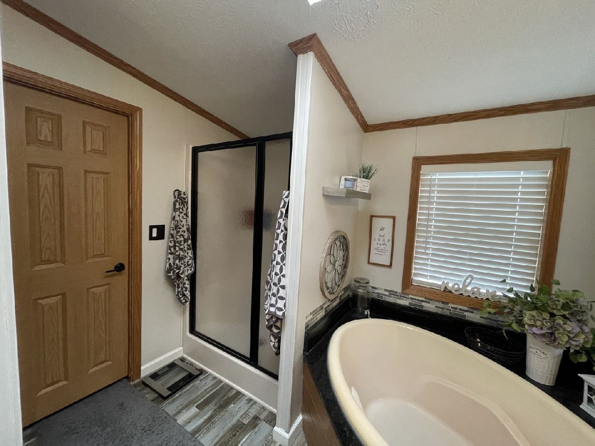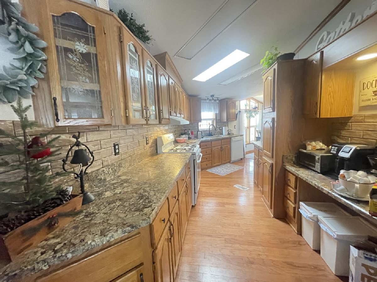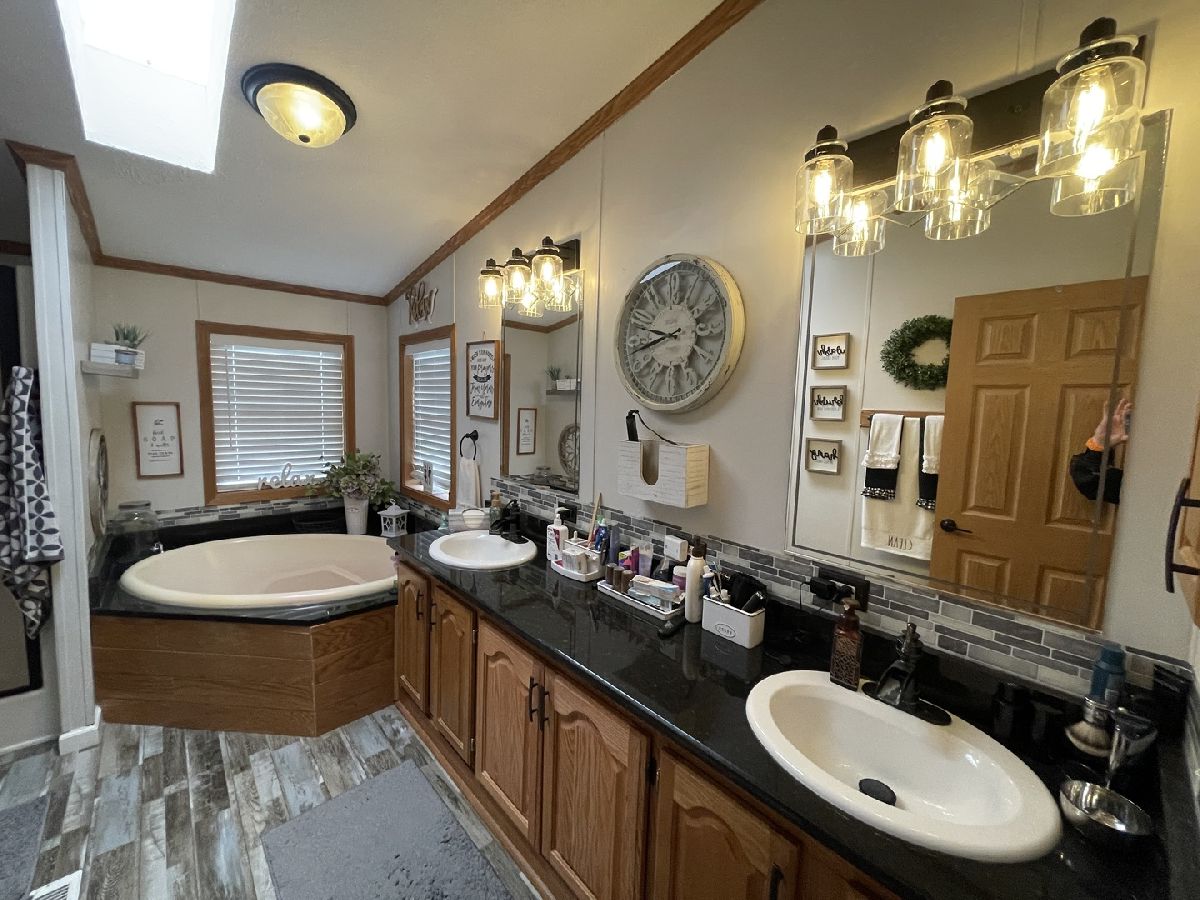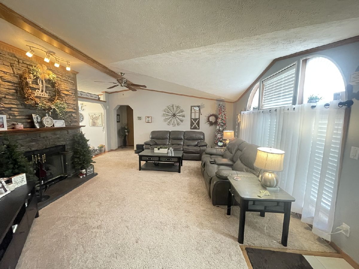 Beautifully updated and upgraded manufactured home in a 24/7 manned gated community for adults 55 years & older. This means one of the primary residents has to be 55 or older and no one 18 or younger may reside in the community. Big gas log and stone fireplace in the great room. Huge panoramic window in the great room with oragami ceiling. 2 box bays in the front of home plus a prismatic dormer with trapezoid top window in the morning room. Big utility room with a laundry tub. Skylights and stereo in the home. 2 car garage with an expanded width cement drive. Roof 3 years old on the home/garage plus newer skylights. Water heater 2016. LG washer 1 year old. New Blinds T/O. Newer carpet in the living room. Newer floor in bath 1 plus granite around tub and on the counter. Newer faucets and drain in Master bath with newer backsplash and newer shower door plus a new floor. Expensive Provia storm door and door at utility room entrance and newer storm door at Front door. Newer hardware, newer light fixtures, and newer paint t/o. Kitchen has textured and beveled top with a backsplash. The home has passed the Matteson inspection.