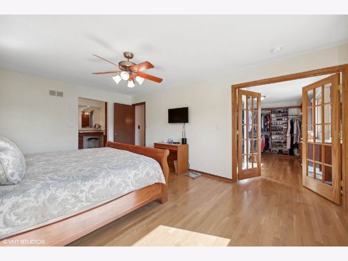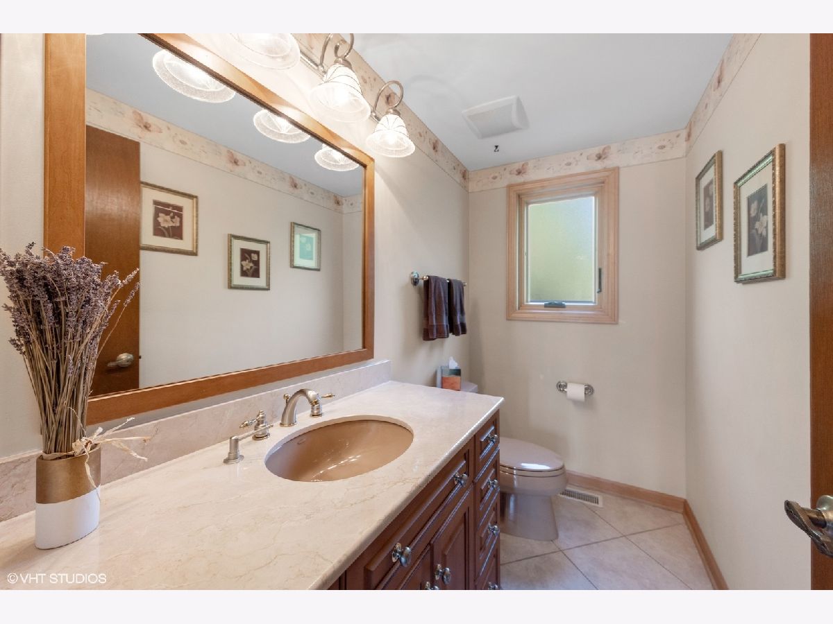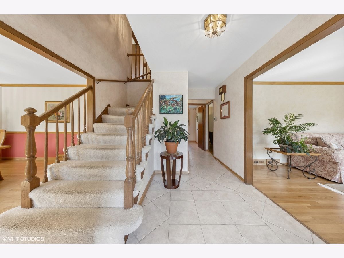 Welcome to your dream home! This lovingly maintained and recently upgraded gem sits on a prime corner lot in a coveted location, just one block from both Carefree Park and Prairie Park. The timeless brick facade invites you in, with a charming covered patio extending on both sides of the front entrance. Step inside the bright foyer, which flows effortlessly into the formal dining room and spacious living room, all boasting gleaming hardwood floors that stretch throughout the first and second floors. The stunning eat-in kitchen is a chef's delight, featuring newer cabinets, granite counters, brand-new stainless steel appliances, and a large window overlooking the gorgeous patio and tranquil water feature. The private side yard, surrounded by lush, professionally designed landscaping with lighting and irrigation system is the perfect spot for outdoor entertaining. Next to the kitchen, you'll find the cozy family room with a gas fireplace, as well as a convenient first-floor bedroom/office. The updated laundry room, complete with newer elevated side-by-side washer and dryer, provides access to the attached 2-car garage. Upstairs, the massive primary suite is your private retreat, complete with a custom closet and a luxurious primary bath featuring a large jacuzzi tub, separate shower room, heated floors and a total of three sinks. The two additional bedrooms on this floor are grand in size, with spacious closets and beautiful hardwood floors. 2nd full bathroom upstairs includes large vanity with 2 sinks. The lower level is an entertainer's paradise, offering a small kitchenette with an extra refrigerator, oven, and cabinets. The large recreation room, complete with a corner bar, is perfect for movie nights, ping pong, or any gathering! New Anderson replacement windows throughout add an extra touch of quality and care. Newer appliances including refrigerator 2024, dishwasher 2023, range/oven 2021, washer/dryer 2019. This home is perfectly located less than a half-mile from Forest View Elementary, multiple parks, highway access, shopping, Arlington Lakes Golf Club, and more. Don't miss your chance to call this exquisite property yours!