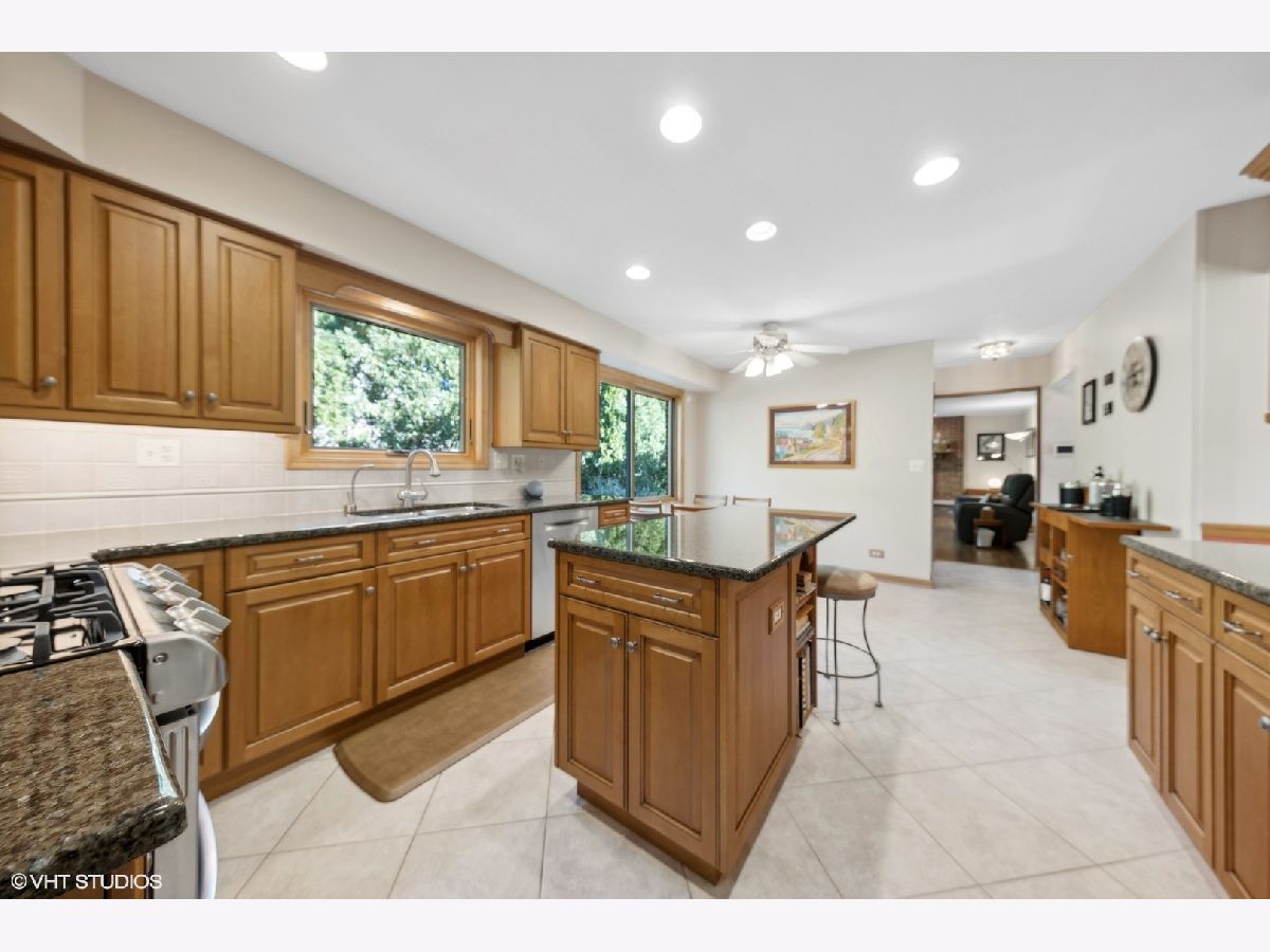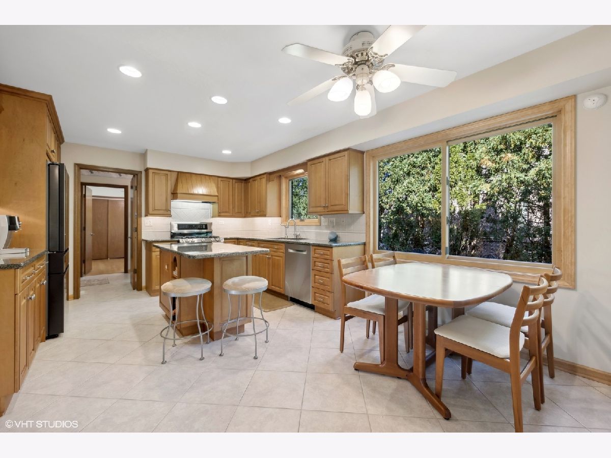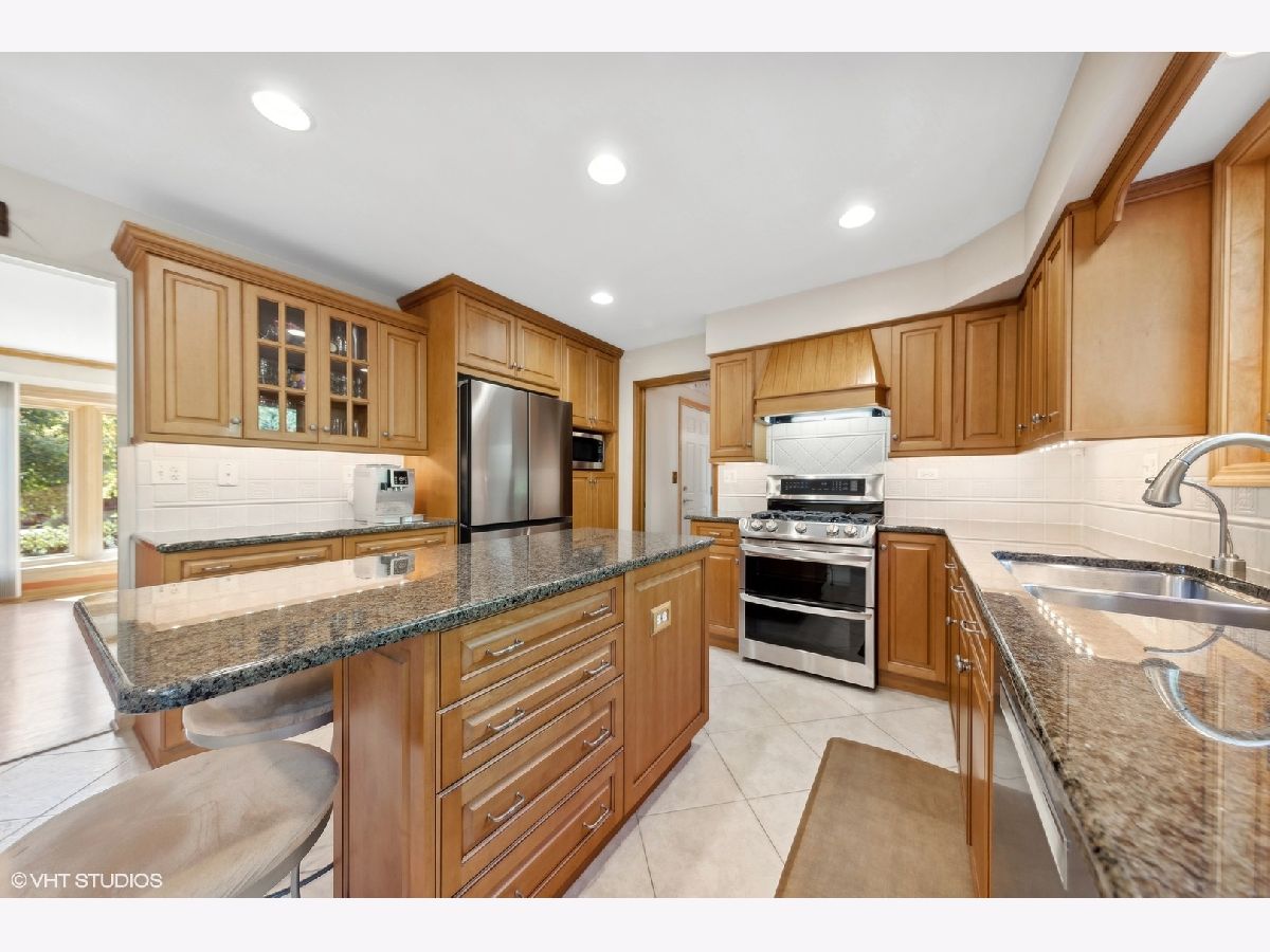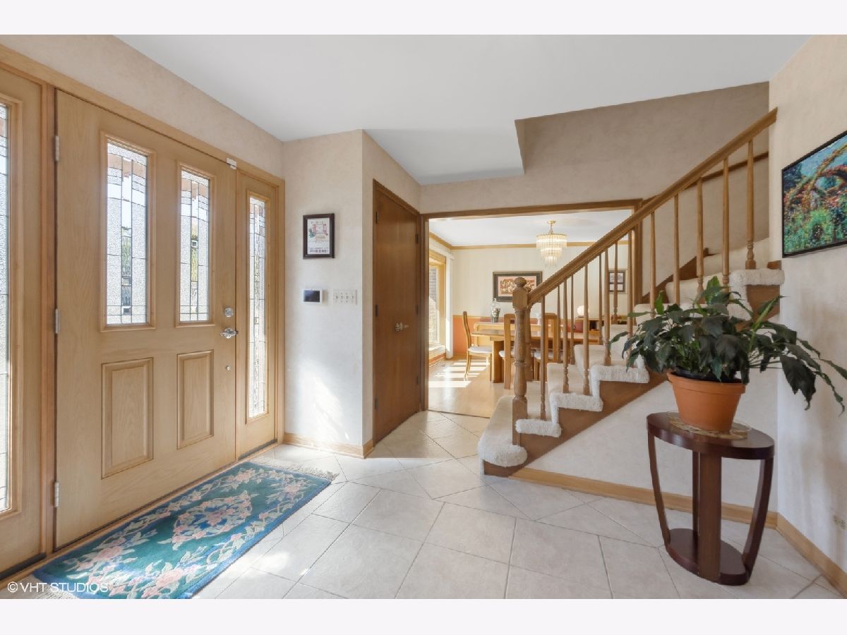 Welcome to your dream home! This lovingly maintained and recently upgraded gem sits on a prime corner lot in a coveted location, just one block from both Carefree Park and Prairie Park. The timeless brick facade invites you in, with a charming covered patio extending on both sides of the front entrance. Step inside the bright foyer, which flows effortlessly into the formal dining room and spacious living room, all boasting gleaming hardwood floors that stretch throughout the first and second floors. The stunning eat-in kitchen is a chef's delight, featuring newer cabinets, granite counters, brand-new stainless steel appliances, and a large window overlooking the gorgeous patio and tranquil water feature. The private side yard, surrounded by lush, professionally designed landscaping with lighting and irrigation system is the perfect spot for outdoor entertaining. Next to the kitchen, you'll find the cozy family room with a gas fireplace, as well as a convenient first-floor bedroom/office. The updated laundry room, complete with newer elevated side-by-side washer and dryer, provides access to the attached 2-car garage. Upstairs, the massive primary suite is your private retreat, complete with a custom closet and a luxurious primary bath featuring a large jacuzzi tub, separate shower room, heated floors and a total of three sinks. The two additional bedrooms on this floor are grand in size, with spacious closets and beautiful hardwood floors. 2nd full bathroom upstairs includes large vanity with 2 sinks. The lower level is an entertainer's paradise, offering a small kitchenette with an extra refrigerator, oven, and cabinets. The large recreation room, complete with a corner bar, is perfect for movie nights, ping pong, or any gathering! New Anderson replacement windows throughout add an extra touch of quality and care. Newer appliances including refrigerator 2024, dishwasher 2023, range/oven 2021, washer/dryer 2019. This home is perfectly located less than a half-mile from Forest View Elementary, multiple parks, highway access, shopping, Arlington Lakes Golf Club, and more. Don't miss your chance to call this exquisite property yours!