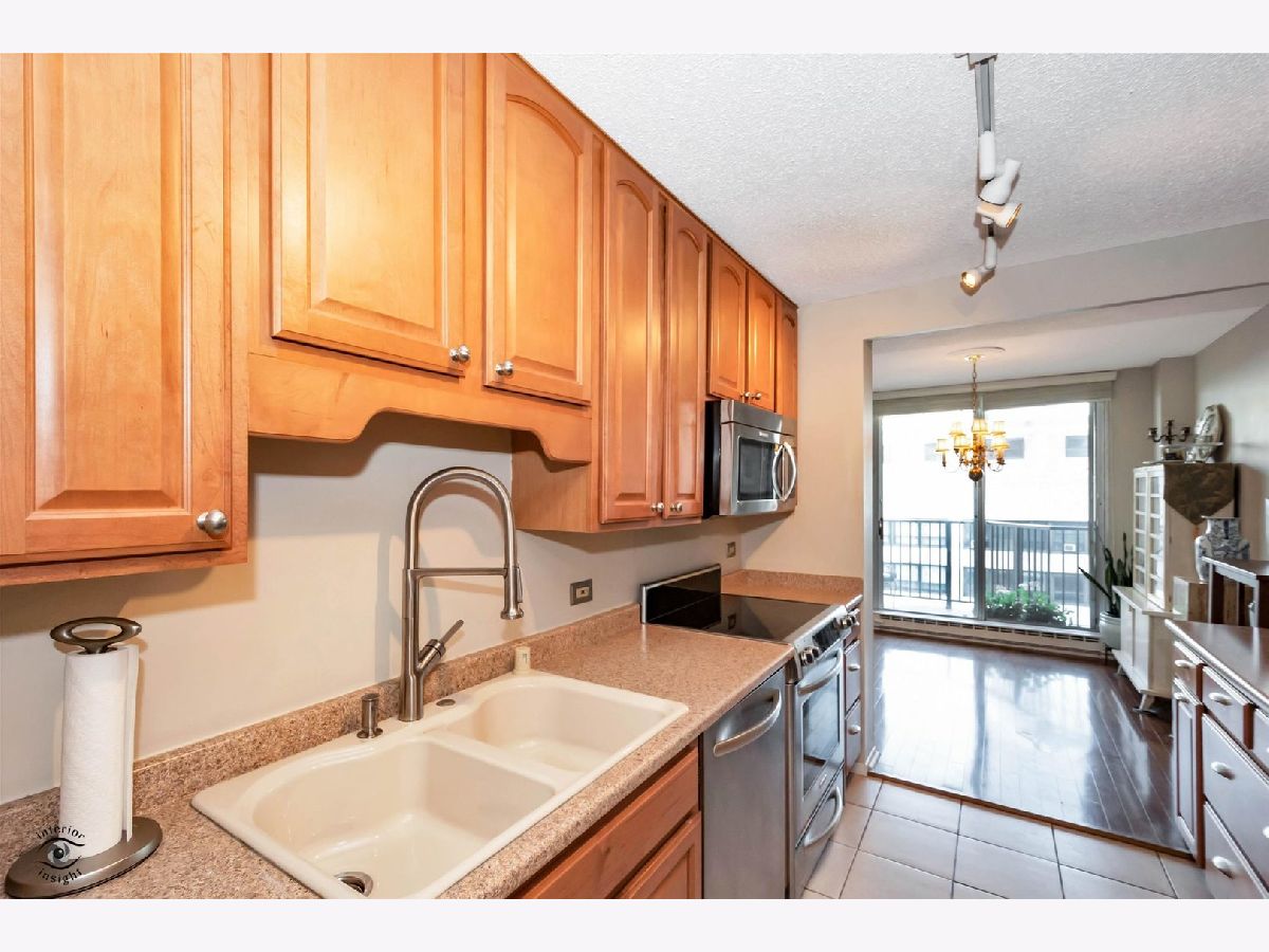 Desirable 1 bedroom unit in "The Waterford" with great North, East & West exposures; views of Montrose Harbor, Lake Michigan and the city from the balcony! Hardwood floors & carpet in bedroom. Maple kitchen with ceramic tile flooring & newer KitchenAid SS appliances. Maple vanity in bath. Renovated balcony. In-unit laundry. Year-round heated rooftop pool, deck & exercise room. Full amenity building includes dry cleaner, 24/7 doorstaff, on-site management/maintenance staff & hospitality room with kitchen. Heated valet parking available immediately for $220/month, (wait list for self-parking). Pet-friendly, no rentals. Perfect location close to lake, walking/bike paths, bus & Red Line CTA! Estate sale. Property offered in "as-is" condition.