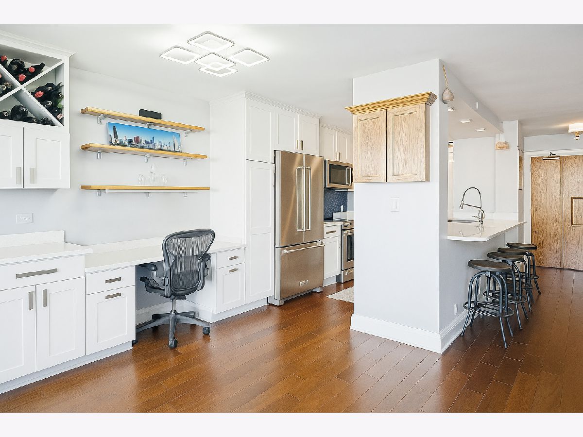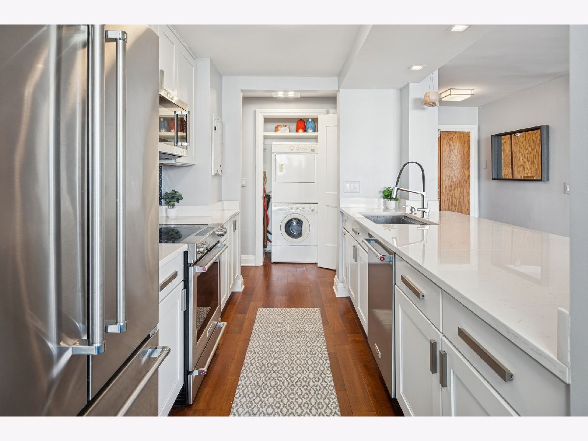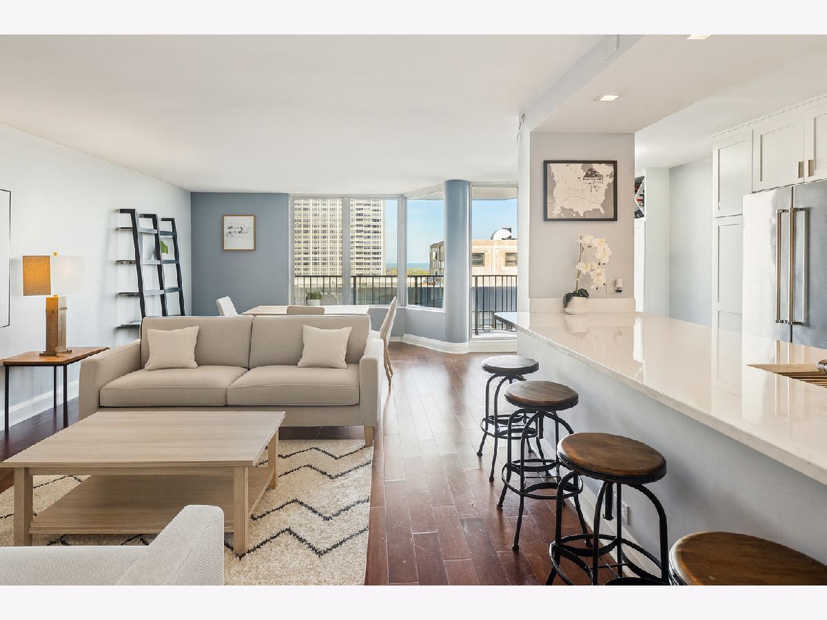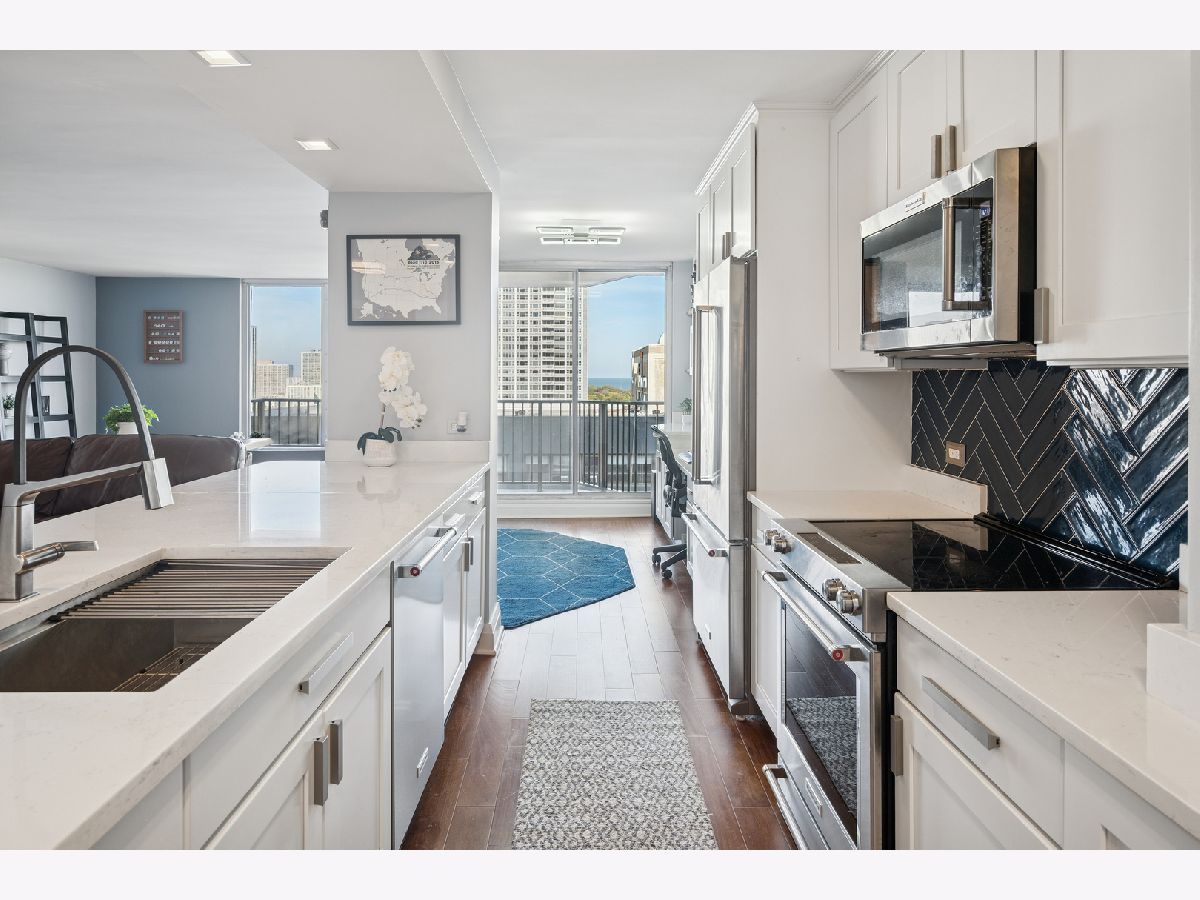 **RISER PROJECT DONE, HALLWAY PROJECT ALMOST FINISHED** Welcome to your high-floor retreat at The Waterford, where modern design meets sweeping Lake Michigan views in the ONLY unit available in the building! Perched on the 18th floor, this spacious 2-bedroom, 1.5-bath condo offers a wraparound balcony with great lake views. Completely renovated in 2020, this home was reimagined with today's lifestyle in mind. The open-concept kitchen features sleek custom cabinetry, 8-foot quartz countertops, a breakfast bar, built-in desk/dry bar, and stainless steel appliances. Hardwood floors run throughout, adding warmth and continuity to the bright layout. Both bathrooms were part of the 2020 remodel. The primary suite offers a spa-inspired bath with a premium shower, LCD-lit custom vanity, and updated tile. The second bath features the same elevated finishes and attention to detail. The primary bedroom also includes a generous walk-in closet. Built as condos-not conversions-this unit offers exceptional square footage and thoughtful design, including in-unit laundry. The Waterford delivers full-service living with door staff, on-site management and maintenance, indoor pool, fitness center, sundeck, and valet parking. Express buses stop right out front, and you're minutes from Montrose Harbor, the lakefront trail, Sydney Marovitz Golf Course, and local favorites along Broadway and Montrose. Turnkey, updated, and perfectly positioned-this is lakefront living done right.