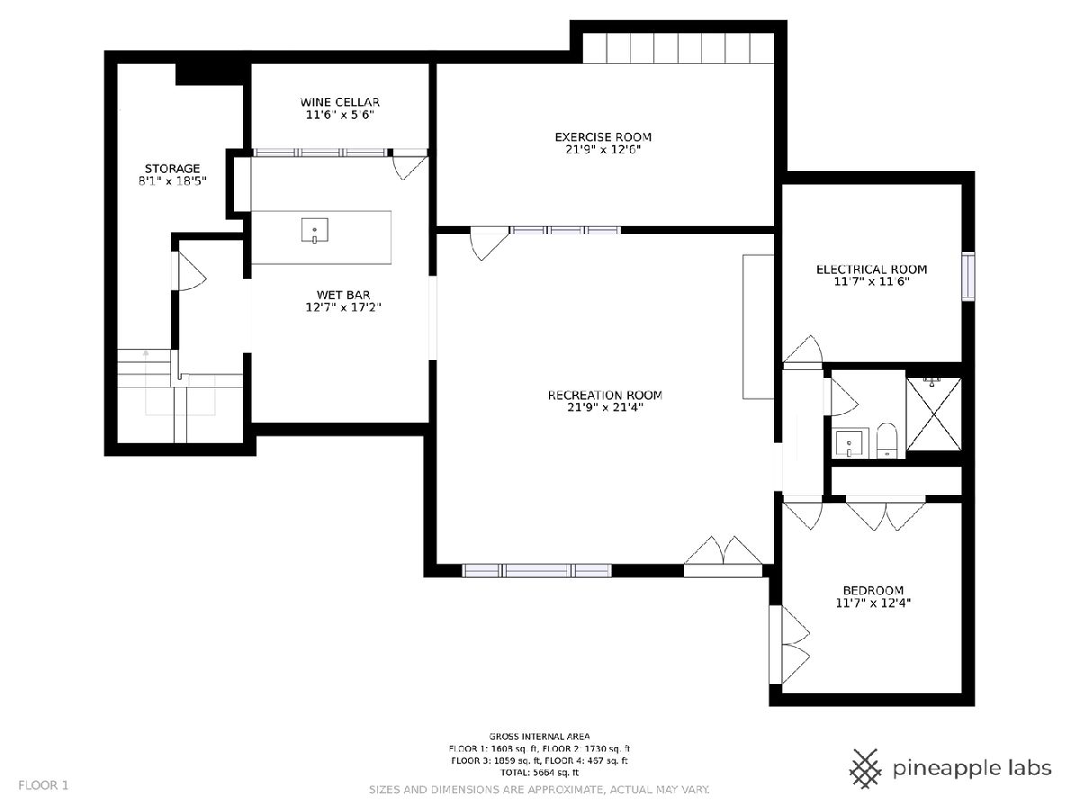 Bathroom in Basement: 1