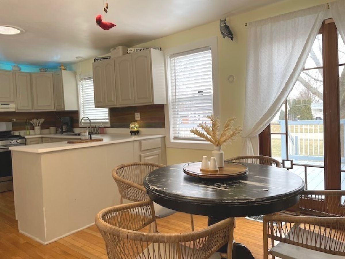 Awesome start to 2025 when you fall in love with this move in ready ranch...and act quickly to make it yours! Open floor plan highlighted with hardwood flooring~spacious living room~country style kitchen with welcoming dining area that has sliding doors to wooden deck~master bedroom~2nd bedroom or den, as you choose to use it~remodeled bathroom~1st floor laundry/storage/closet~furnace and central air less than 5 years old~100 amp circuit breaker service~detached 1 car garage presently being used as finished rec room, can easily be reverted back~attractive corner lot~easy walking distance to city park, school, churches, cemetery. Better not hesitate!