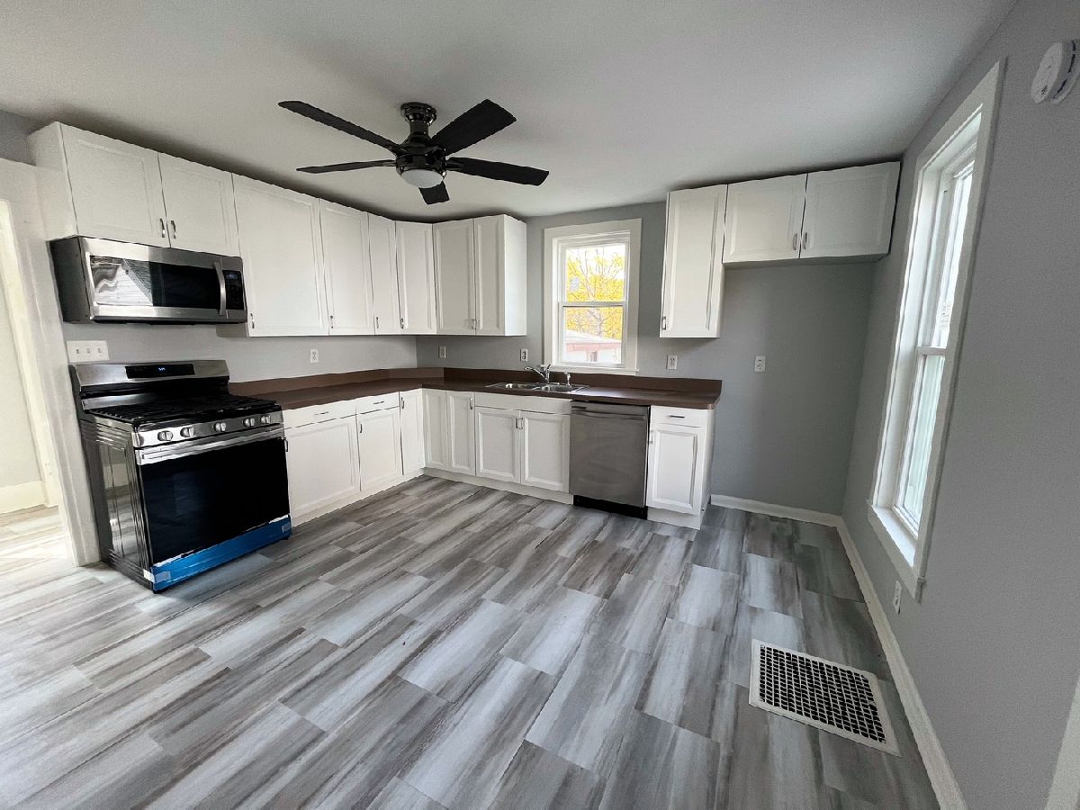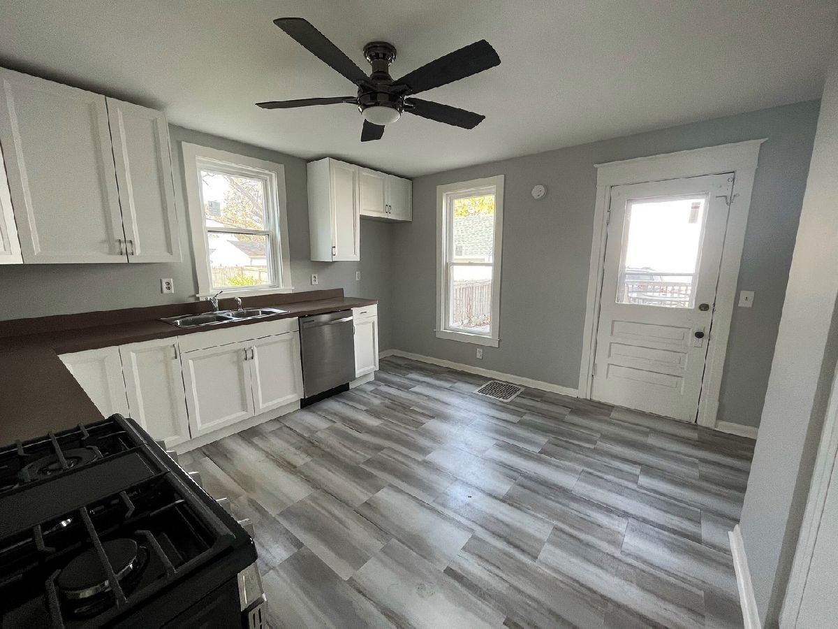 Do not judge a book by its cover! This house is like brand new inside. The kitchen is gorgeous; new white cabinets, and lots of them! New stainless steel appliances. and gorgeous vinyl flooring in the kitchen and bathroom. Beautiful hardwood floors in the living room and kitchen. 1st floor laundry off the main bathroom. Upstairs has brand new carpet and large bedrooms including a walk-in closet in the master bedroom. Mostly new windows on main level. Tall basement; clean and dry