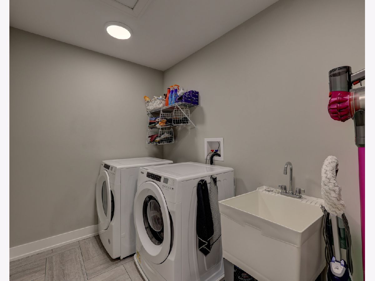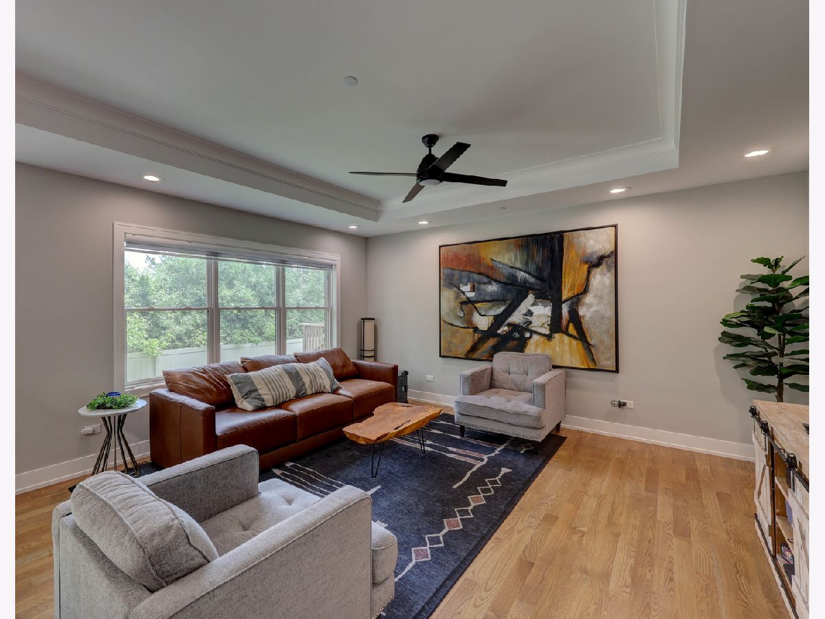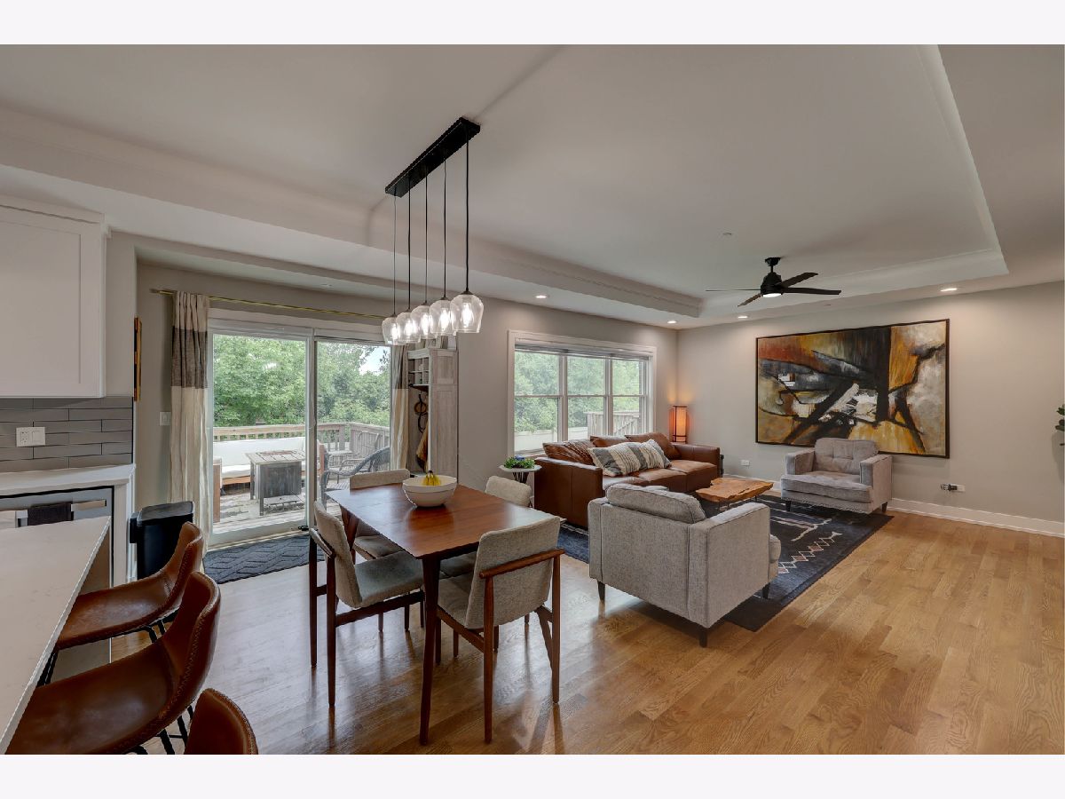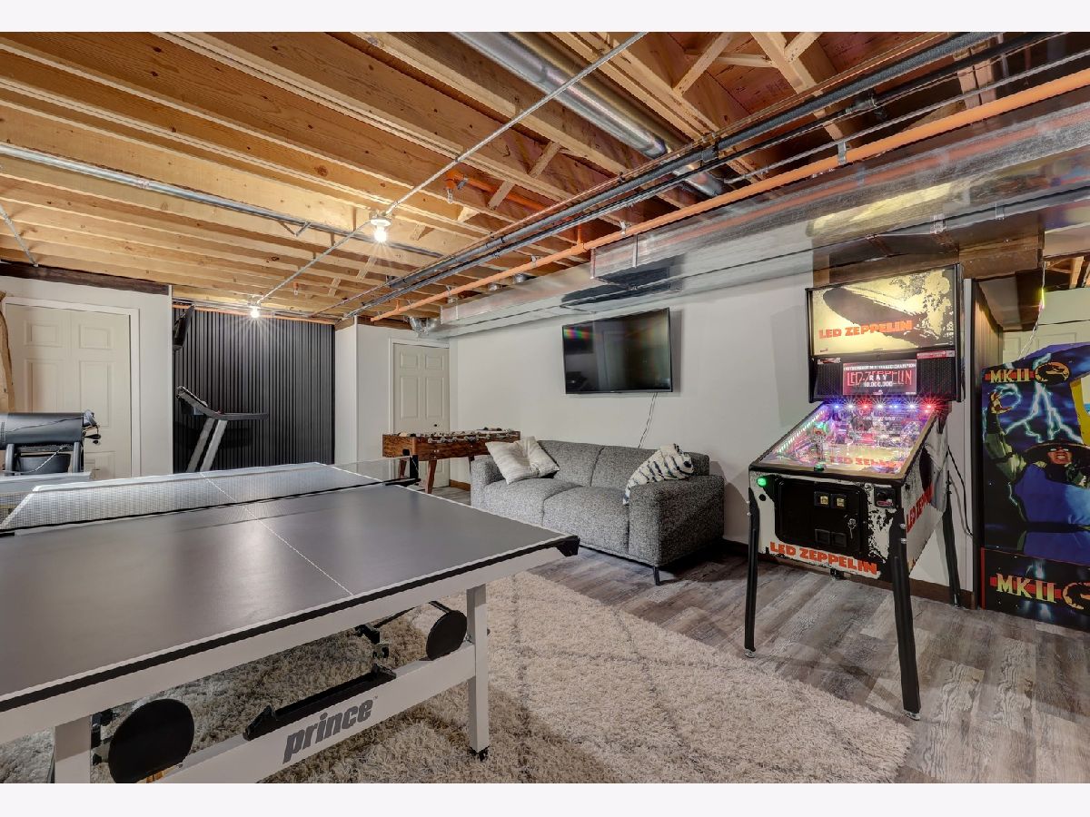 This custom-built townhome, completed in 2021, offers the perfect blend of open-concept design, elegant finishes, and highly functional living spaces. With 9-foot ceilings on both the main and upper levels and stylish recessed lighting throughout, the home feels bright, open, and effortlessly modern. From the moment you step through the front door, the warmth of hardwood flooring and the clean lines of shaker cabinetry set the tone for a sophisticated, move-in-ready experience. The kitchen is a true showpiece, featuring quartz countertops, stainless steel appliances, a spacious center island, and a sleek tile backsplash. It flows seamlessly into a light-filled dinette and a comfortable family room, anchored by a wall of Pella windows overlooking the private backyard. Step out onto the elevated deck-your own outdoor oasis-perfect for morning coffee or quiet evenings, surrounded by mature trees and lush landscaping. Upstairs, you'll find three generous bedrooms, including a luxurious primary suite with vaulted ceilings, a massive 12' x 6' walk-in closet, and a spa-inspired en suite bath. Indulge in the freestanding soaking tub, double quartz vanity, and oversized 6' x 4' walk-in shower finished in designer tile. A second-floor laundry room adds everyday convenience, complete with a utility sink and ample storage space. The finished basement offers additional living space with a flexible layout-ideal for a home theater, gym, playroom, or entertainment zone. A custom-built bar nook under the stairs features stylish cabinetry, a beverage fridge, and warm wood accents, creating a cozy and inviting atmosphere for gatherings or relaxing at the end of the day. Additional highlights include an oversized 20' x 19' garage with 11-foot ceilings, providing excellent vertical storage or space for larger vehicles. Surrounded by open areas, parks, ponds, and walking paths, yet just minutes from Woodfield Mall, Busse Woods, and all major expressways, this townhome offers the perfect balance of comfort, convenience, and community.